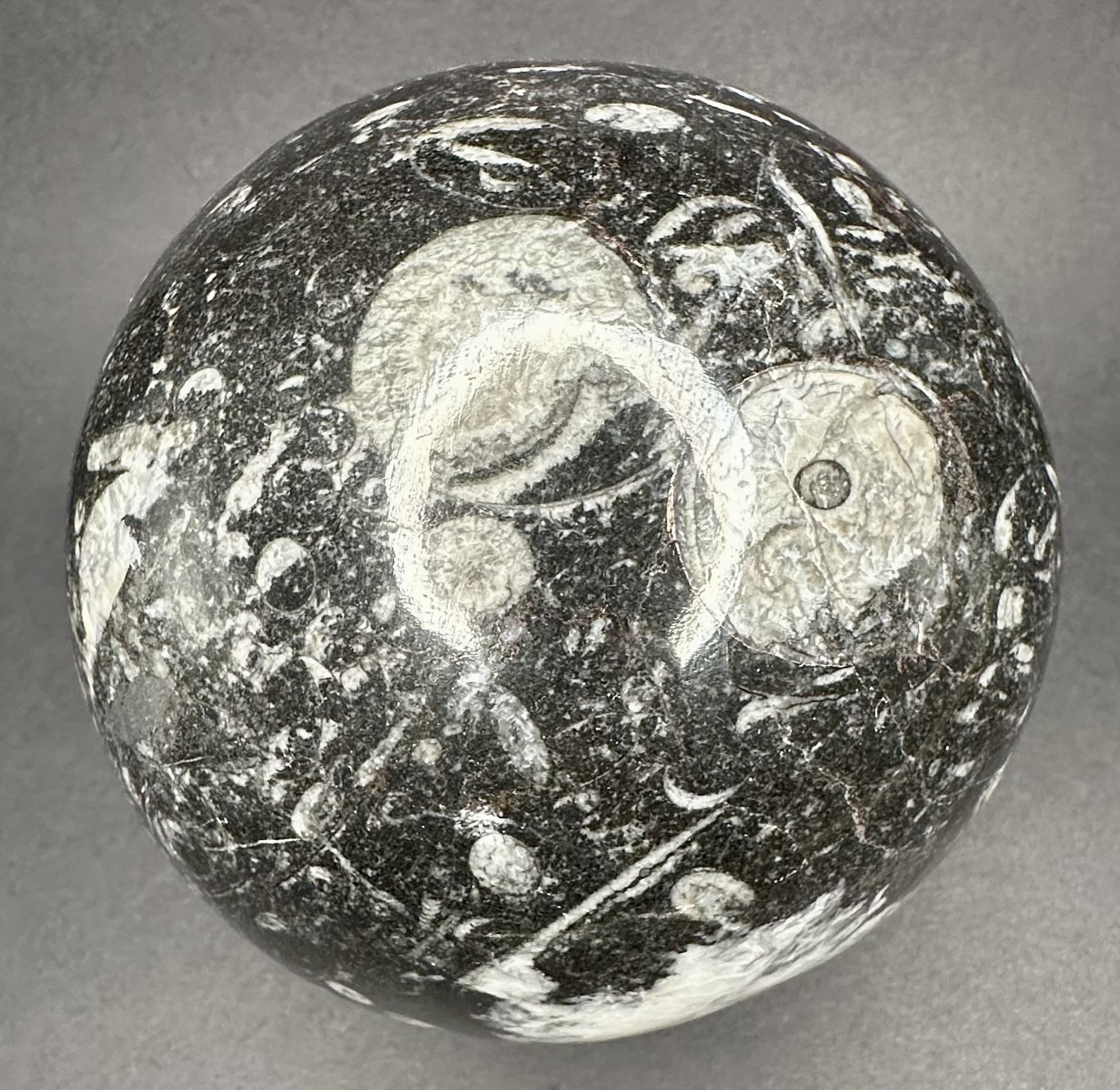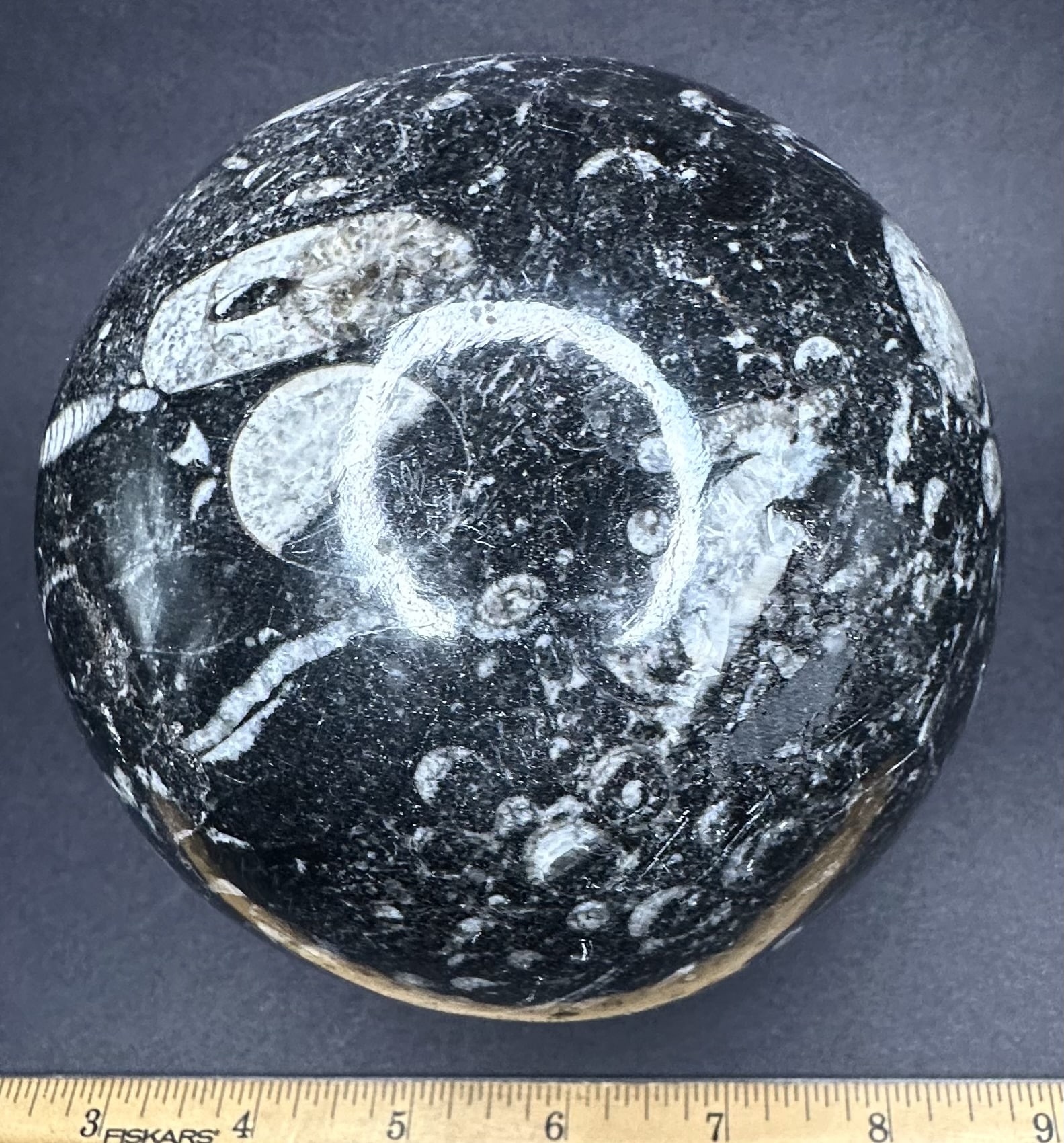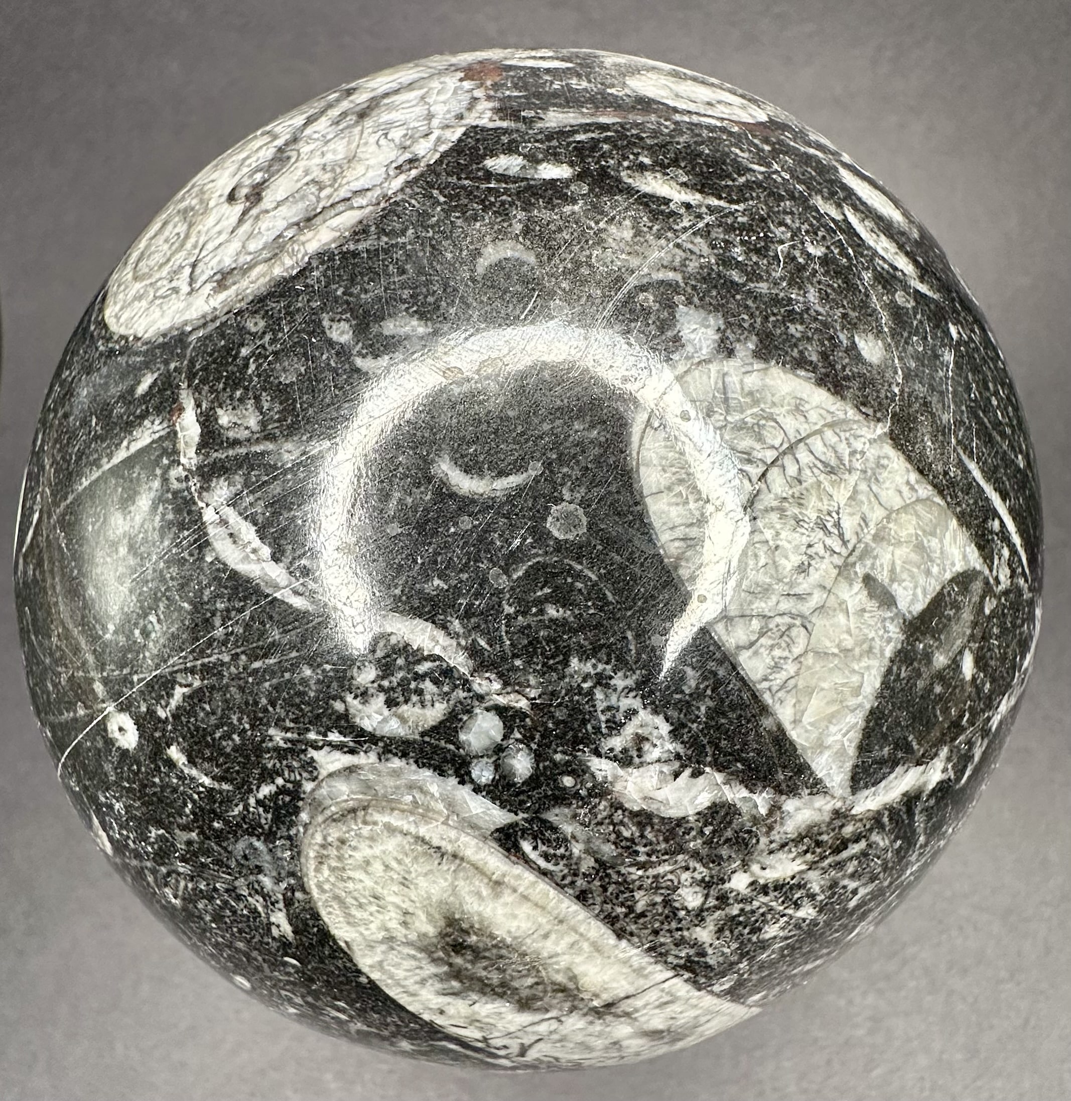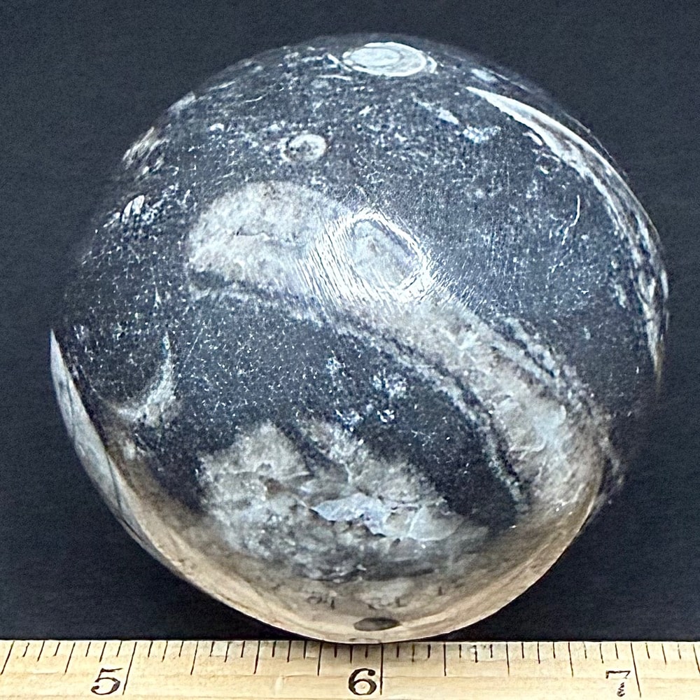 Orthoceras is a genus of extinct Nautiloid Cephalopod. These fossils are common and have a global distribution which occur in any marine rock, especially Limestone. These are slender, elongated shells with the middle of the body chamber transversely constricted and a sub-central orthochoanitic siphuncle. The surface is ornamented by a network of fine lirae or fine lines/ridges.