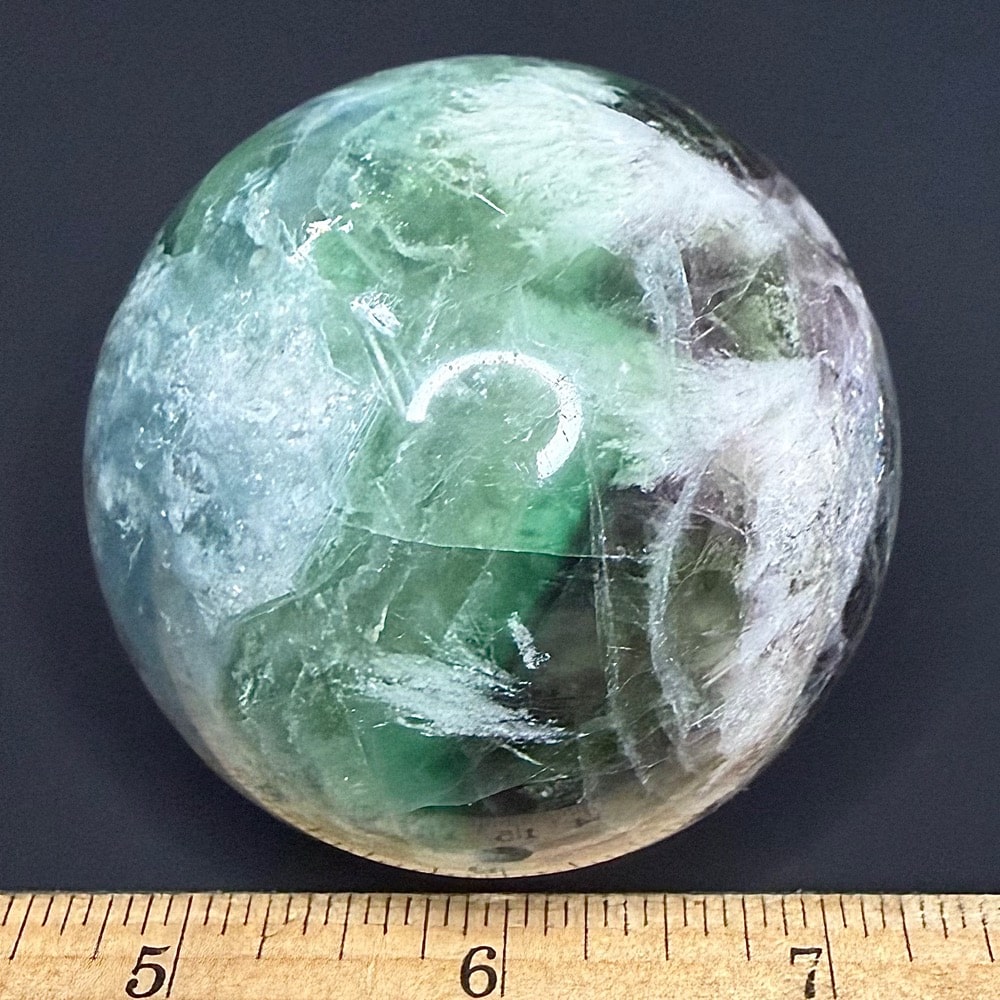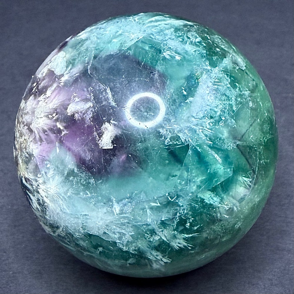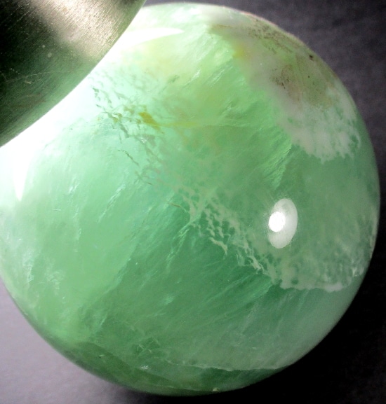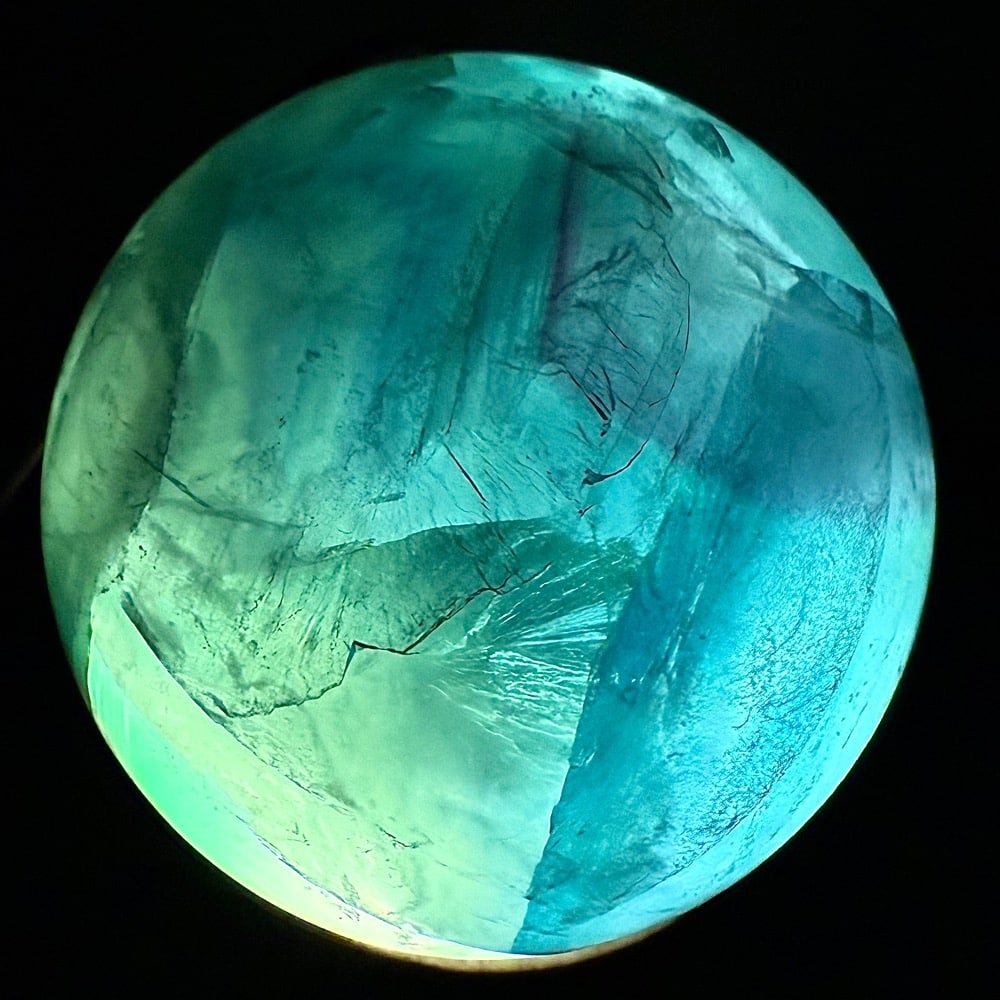 Fluorite, also known as fluor-spar, is a mineral composed of Calcium Fluoride. It is a widely occurring mineral and is often found with metallic minerals such as Galena and Sphalerite, but also with Barite, Quartz and Calcite. It may fluoresce strongly in ultraviolet light. Although green is the most common color, it can also be red, purple, blue, yellow and white.