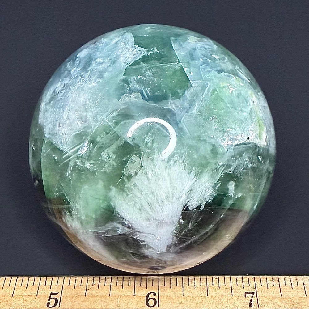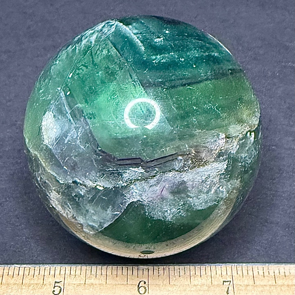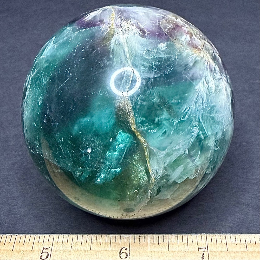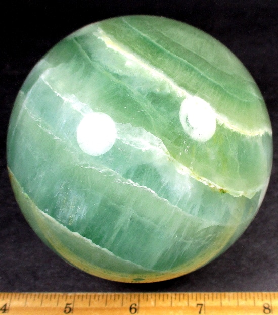 Fluorite, also known as fluor-spar, is a mineral composed of Calcium Fluoride. It is a widely occurring mineral and is often found with metallic minerals such as Galena and Sphalerite, but also with Barite, Quartz and Calcite. It may fluoresce strongly in ultraviolet light. Although green is the most common color, it can also be red, purple, blue, yellow and white.