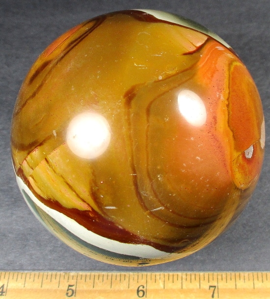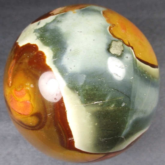 Jasper, or spotted stone, is an opaque, impure variety of Quartz that is usually red, yellow or brown in color. Some Jaspers simultaneously exhibit several variants such as banding, flow patterns, dendrites or color variations. This results in what appears to be scenes or images in a cut section of the Jasper.