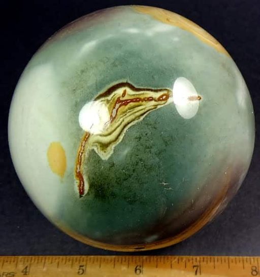 Jasper, or spotted stone, is an opaque, impure variety of Quartz that is usually red, yellow or brown in color. Some Jaspers simultaneously exhibit several variants such as banding, flow patterns, dendrites or color variations. This results in what appears to be scenes or images in a cut section of the Jasper.