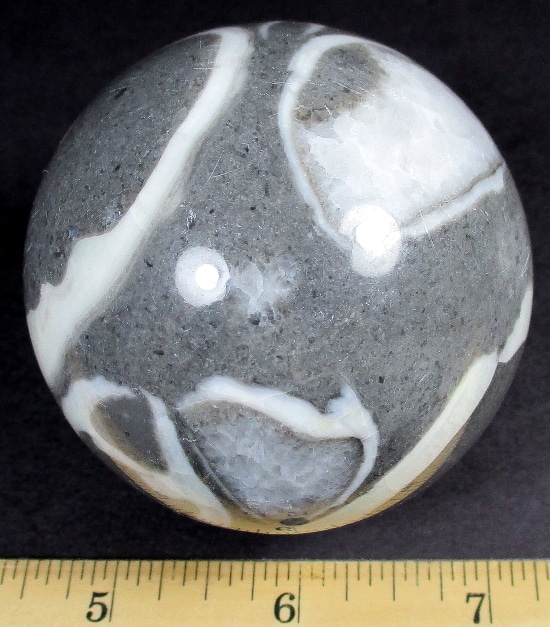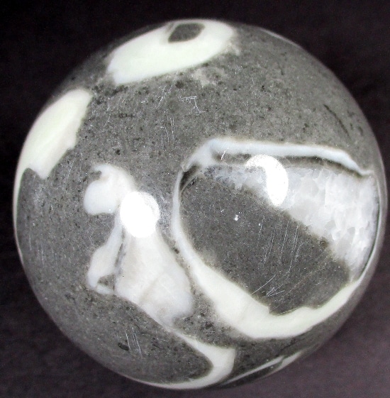 Marble is a metamorphic rock consisting of Limestone but composed mostly of Calcite. It is used extensively for sculpture, building materials and has many decorative uses. The pure white Marble is probably the most common form known, but the characteristic swirls and veins of many-colored Marble varieties are usually due to various mineral impurities such as Clay, Silt, Sand, Iron Oxides or Chert.