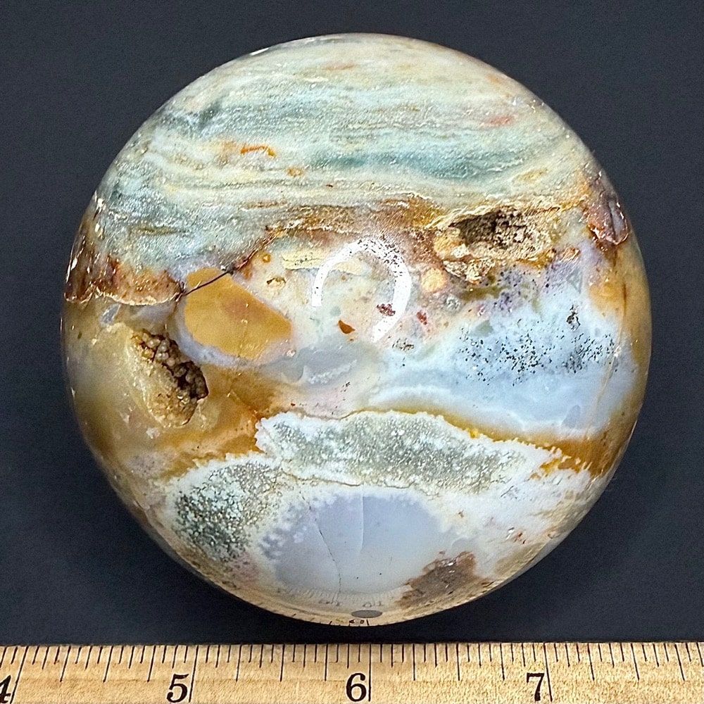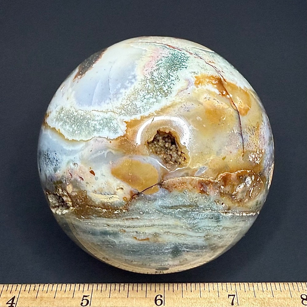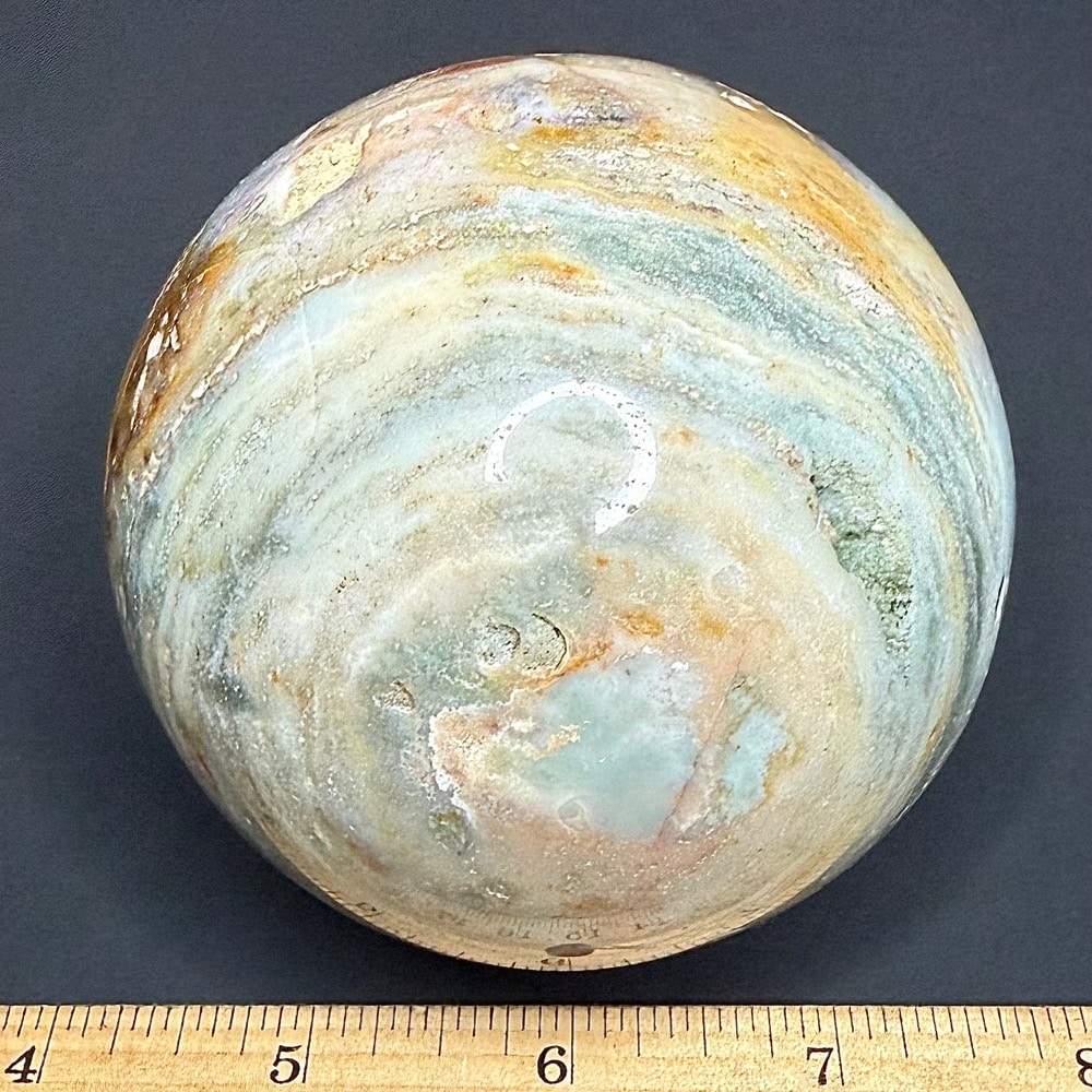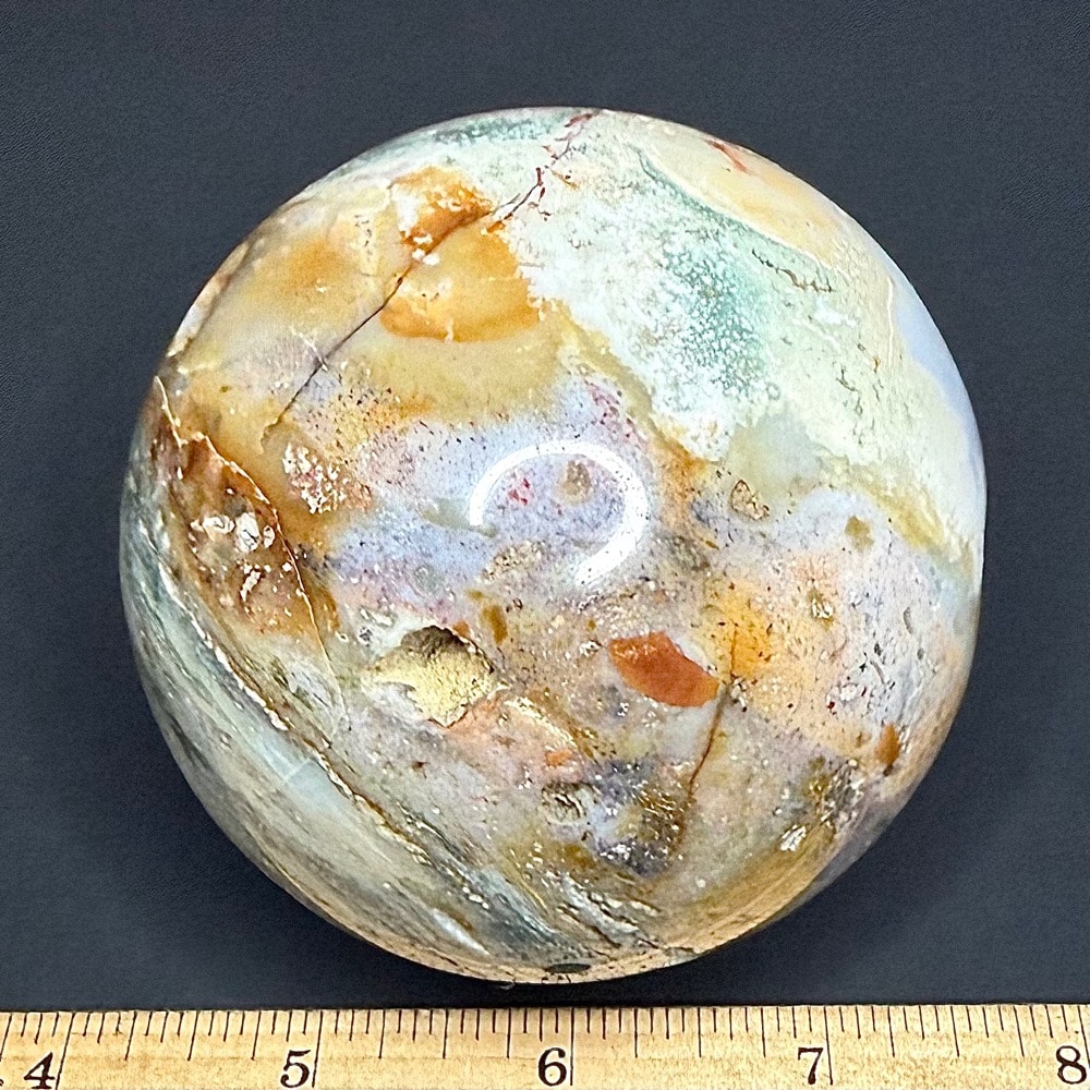 Jasper, or spotted stone, is an opaque, impure variety of Quartz that is usually red, yellow or brown in color.  Some Jaspers simultaneously exhibit several variants such as banding, flow patterns, dendrites or color variations.  This results in what appears to be scenes or images in a cut section of the Jasper.