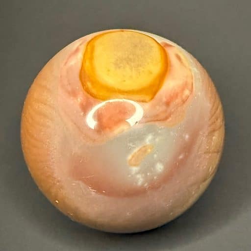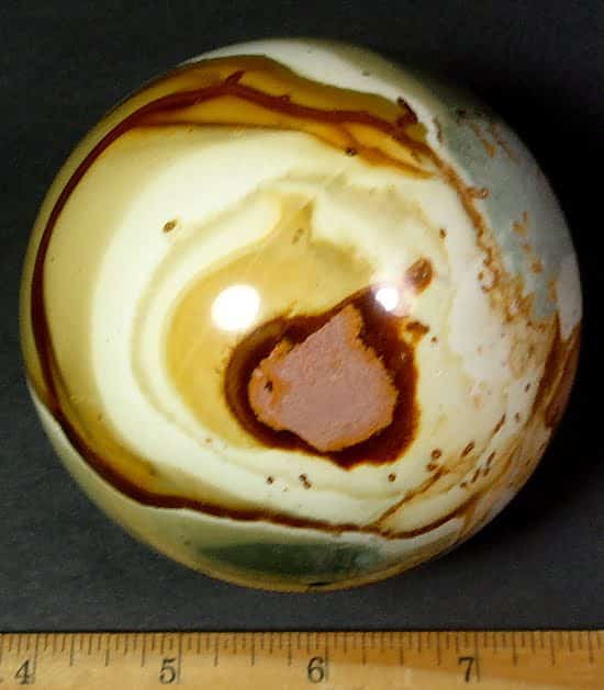 Jasper, also known as spotted stone, is an opaque, impure variety of Quartz that is usually red, yellow or brown in color. The mineral breaks with a smooth surface and is used for ornamentation or as a gemstone. It can be highly polished and is used for vases, seals, and other decorative items.