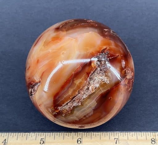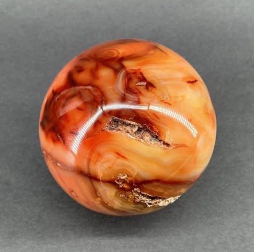 SP204: Carnelian Agate SphereSelection: High polish. Rough exposure sites.