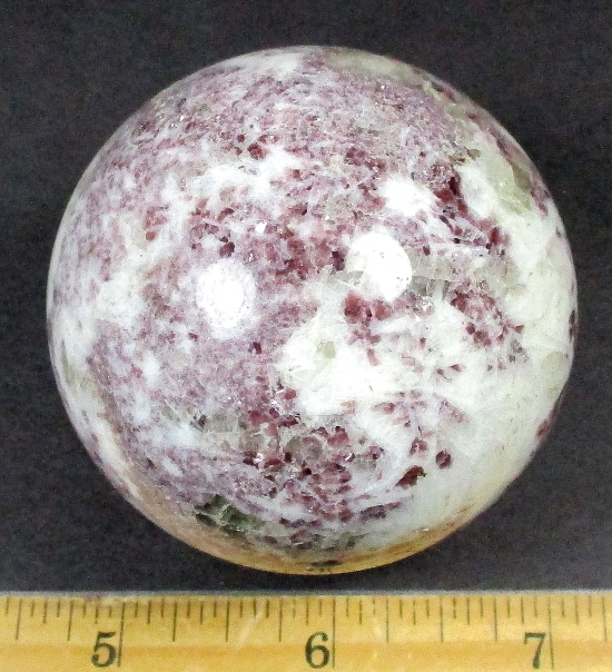 Lepidolite is a lilac-grey or rose-colored member of the Mica group that is a secondary source of Lithium. It is one of the major sources of the rare alkali metals Rubidium and Caesium. Lepidolite occurs in Granite pegmatites, in some high temperature Quartz veins.