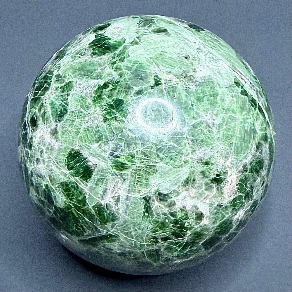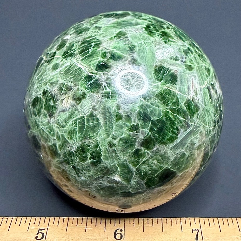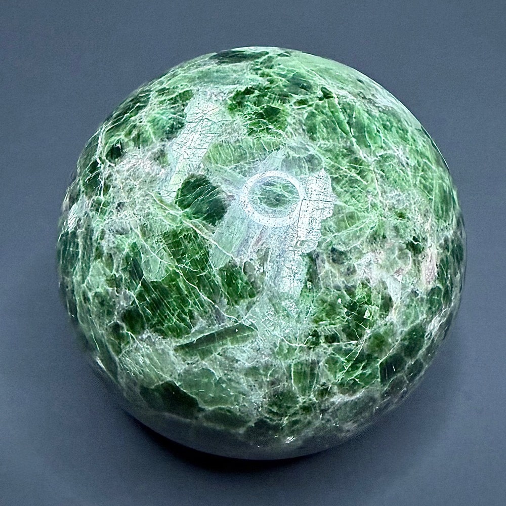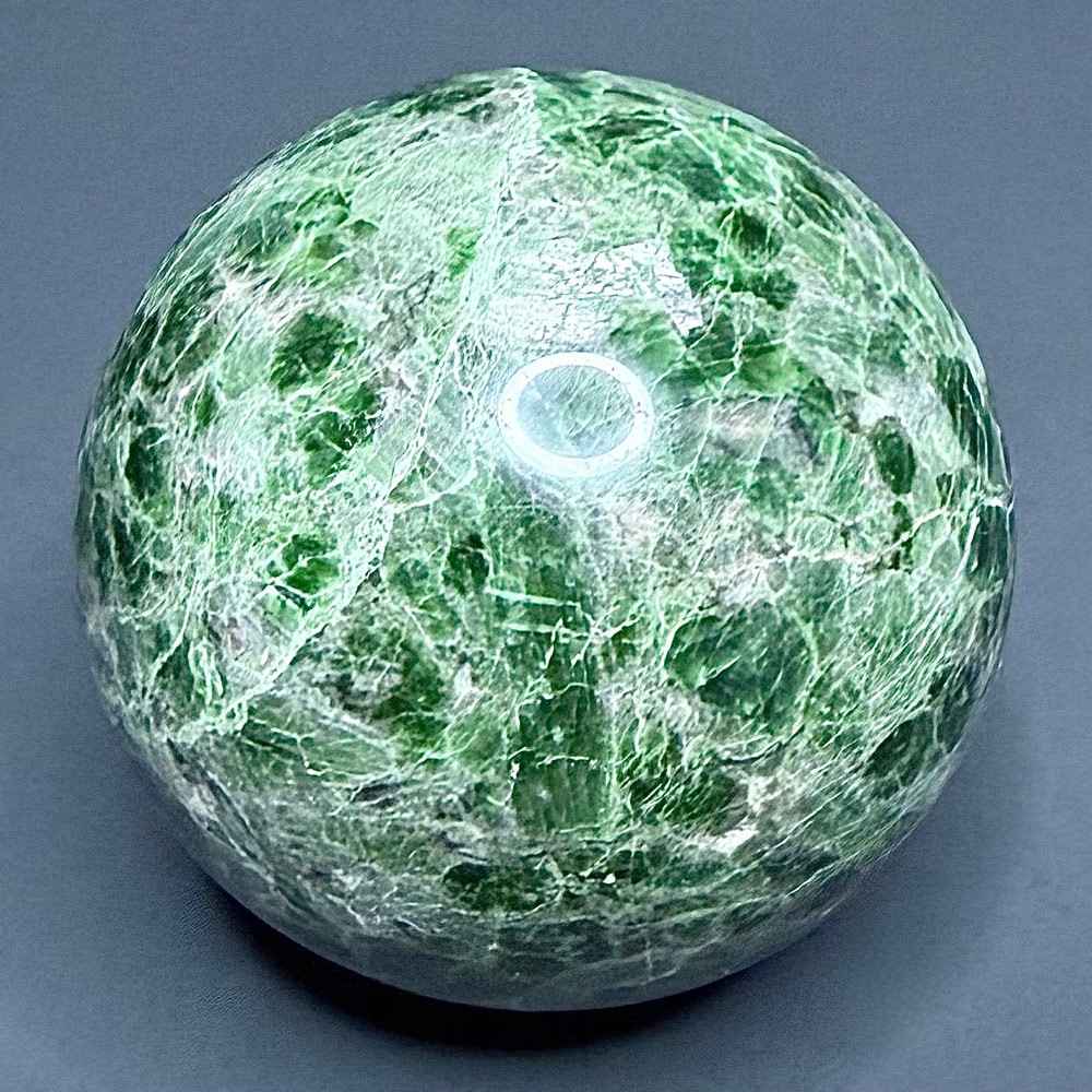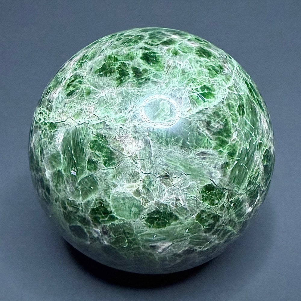 Diopside is a magnesium calcium metamorphic silicate mineral that crystallizes in the form of grainy masses and small prismatic (twinning) shards. It is a member of the Pyroxene group of minerals and was first discovered by Jose Bonifacio de Andrada e Silva in 1806 (he is also credited for finding Andradite, Petalite, and Spodumene). He chose to name it after the Greek word “dis” meaning double, “opse” meaning face. This was chosen in reference to its growing habit which can occasionally form duel prismatic crystal faces. Diopside is primarily found in any variety shades of green, but can also occur as white, brown, yellow, grey or black. The black variety often has a “star” effect when cut at the right angle. This star effect is called Asterism, and is an optical phenomenon created by concentrations of reflected light.