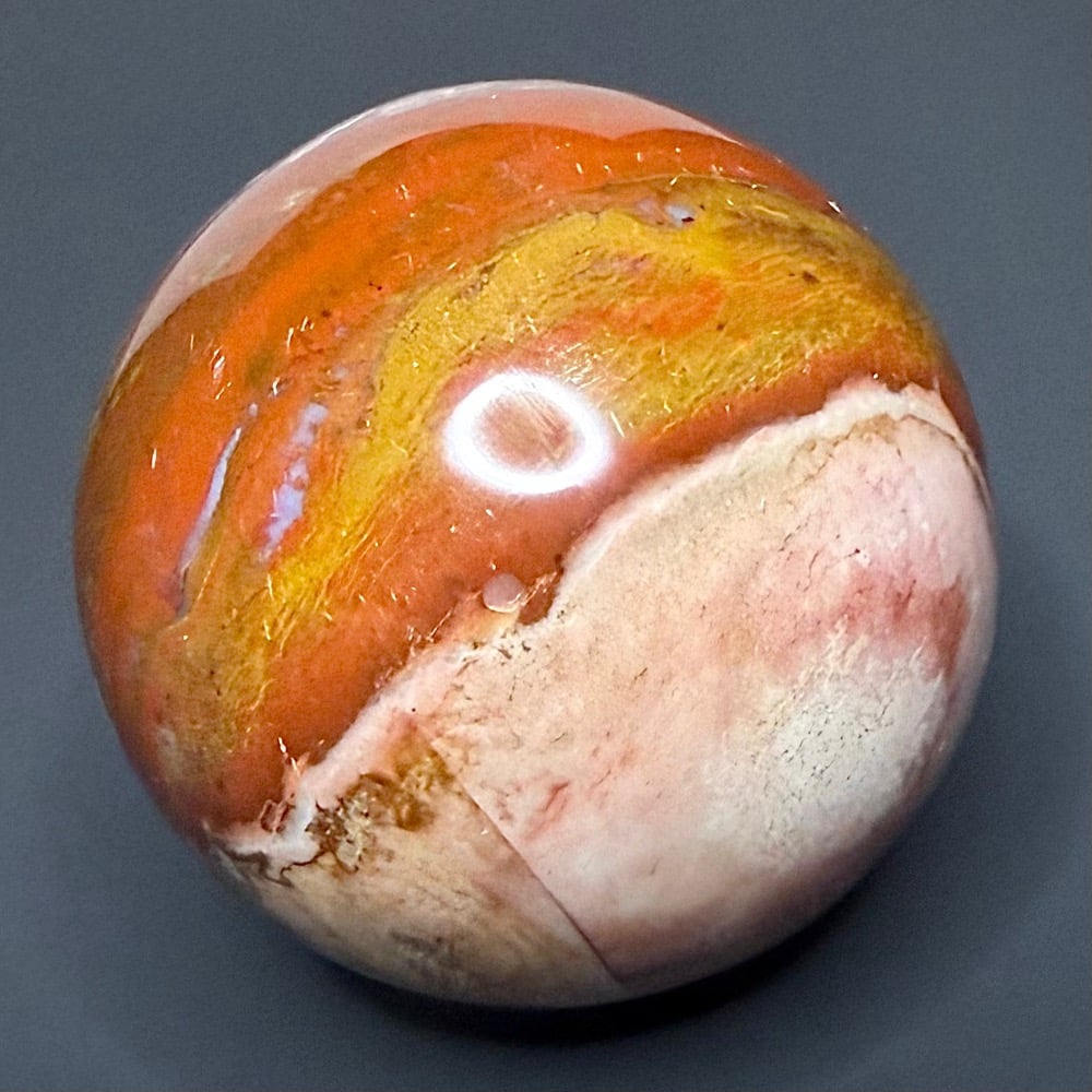 Jasper, or spotted stone, is an opaque, impure variety of Quartz that is usually red, yellow or brown in color.  Some Jaspers simultaneously exhibit several variants such as banding, flow patterns, dendrites or color variations.  This results in what appears to be scenes or images in a cut section of the Jasper.
