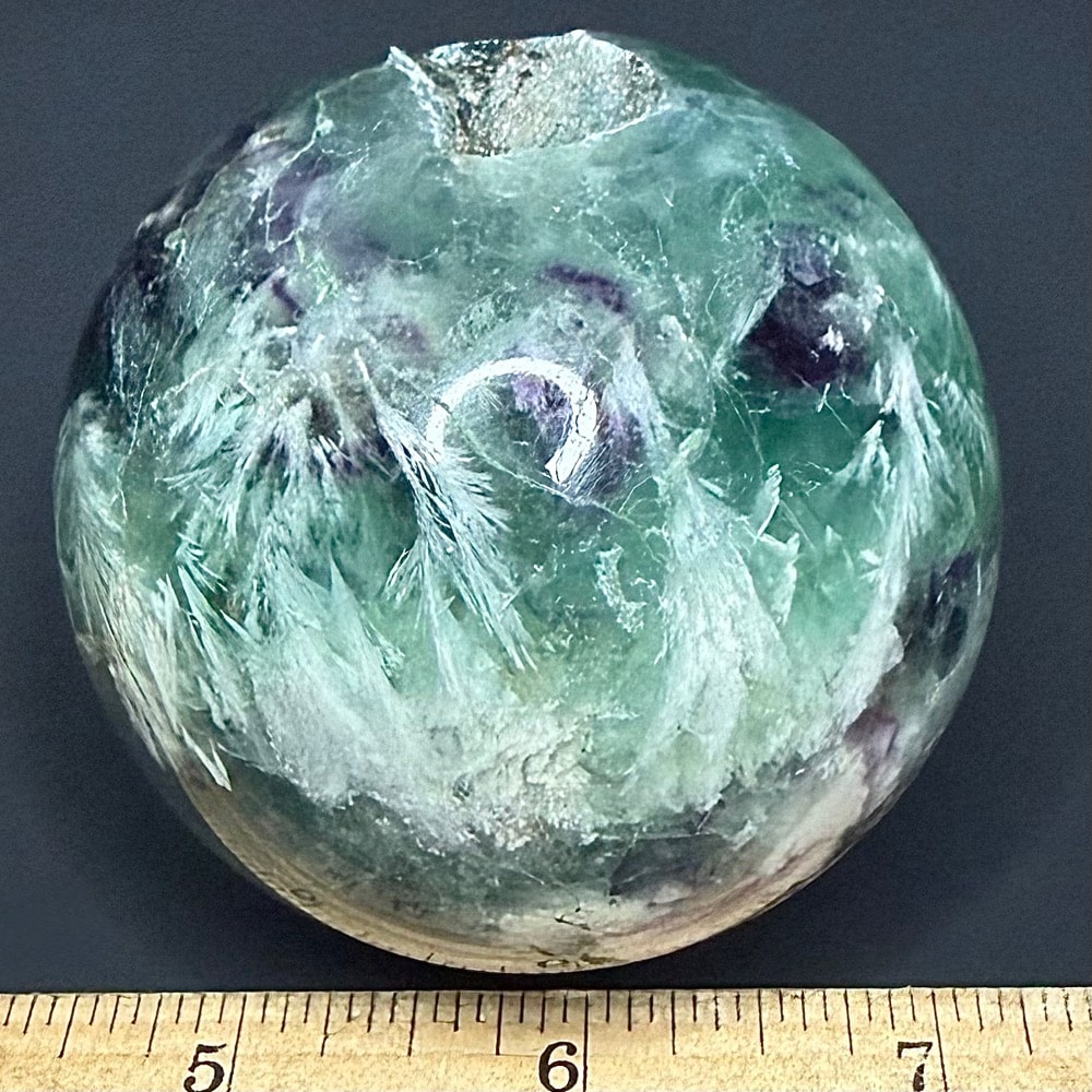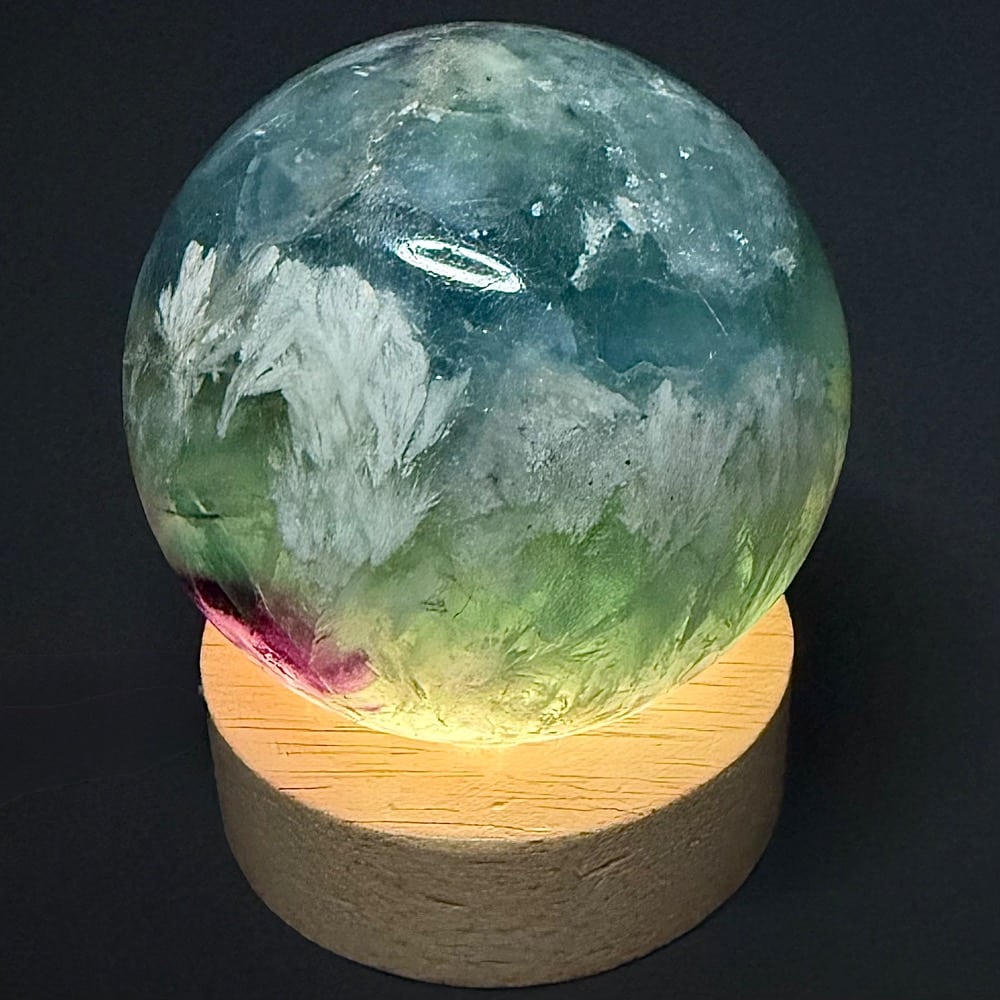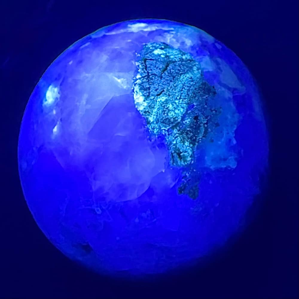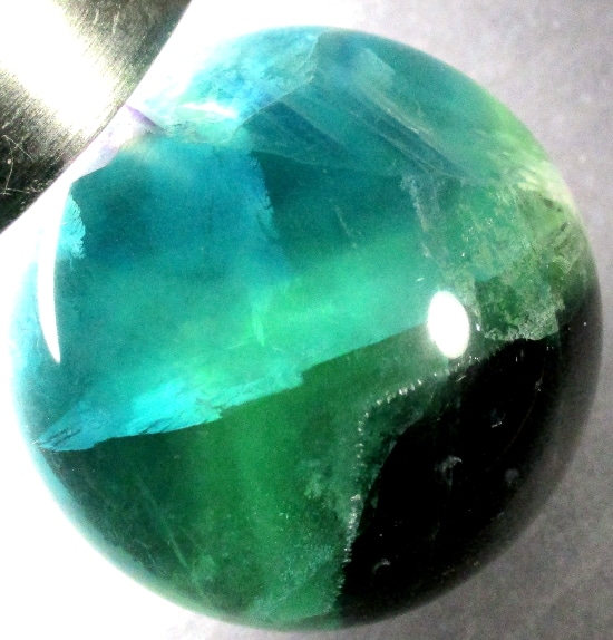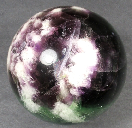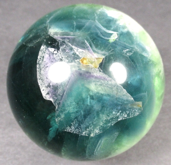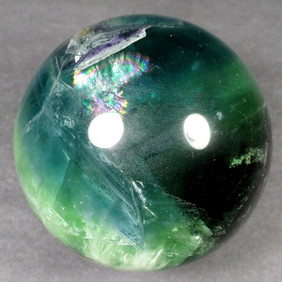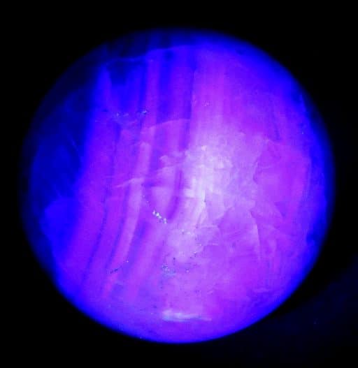 Appearance: It has great colors, exceptional clarity, wonderful inclusions, subtle “rainbow” reflections, unusual cavity and lots of “flowers”. Turns a bluish purple under a UV light.