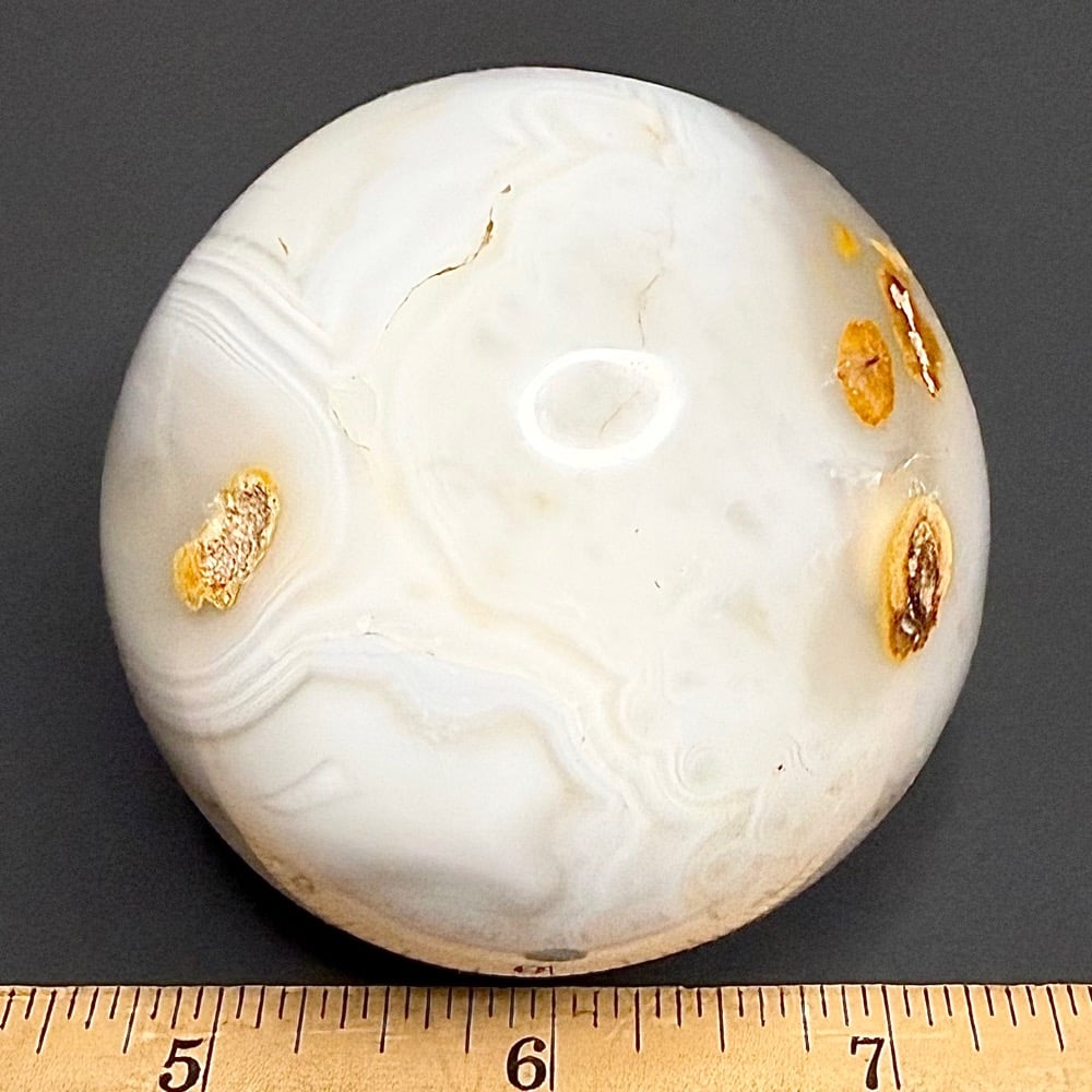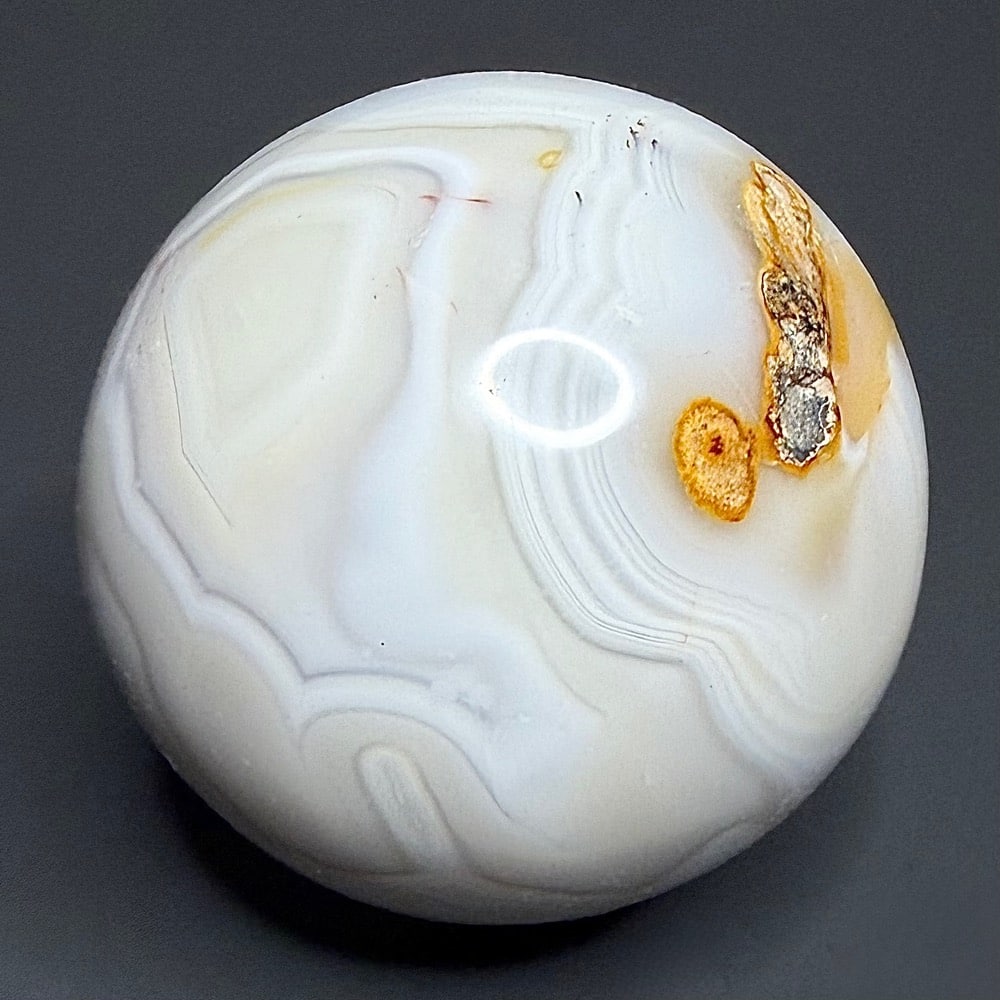 Agates mostly occur as nodules in volcanic rocks or waters containing silica in solution possibly derived from the decomposition of silicates in the lava. The siliceous matter is deposited in regular layers resulting in the banded or striped formation.