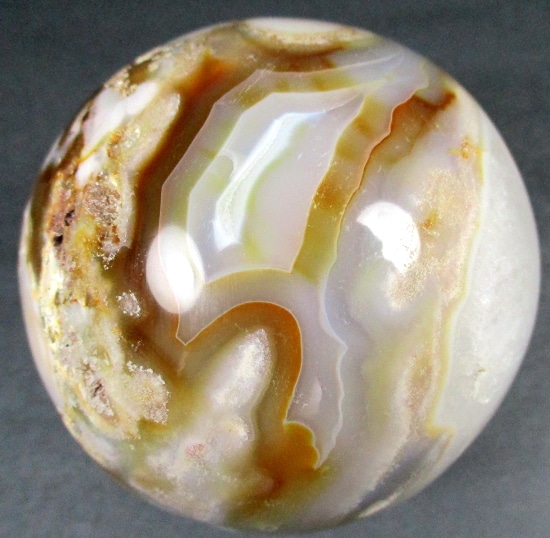 Agates mostly occur as nodules in volcanic rocks or waters containing silica in solution possibly derived from the decomposition of silicates in the lava.  The siliceous matter is deposited in regular layers resulting in the banded or striped formation.