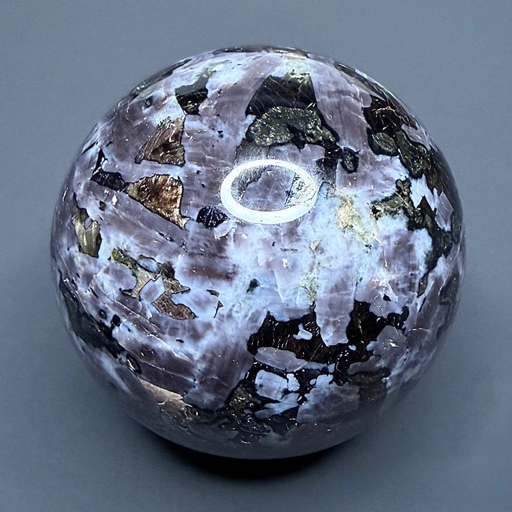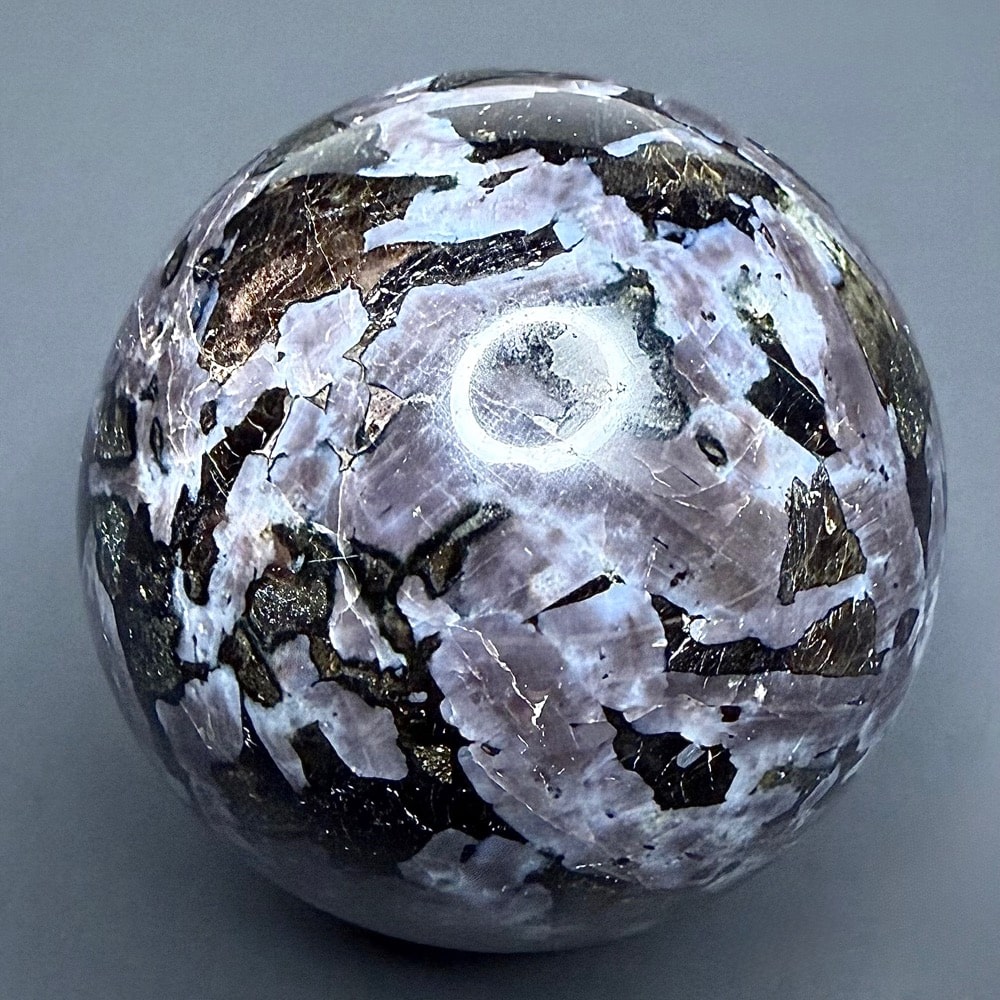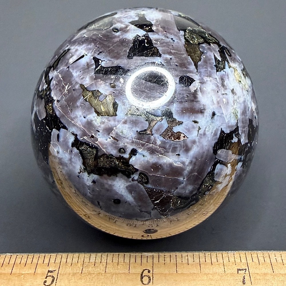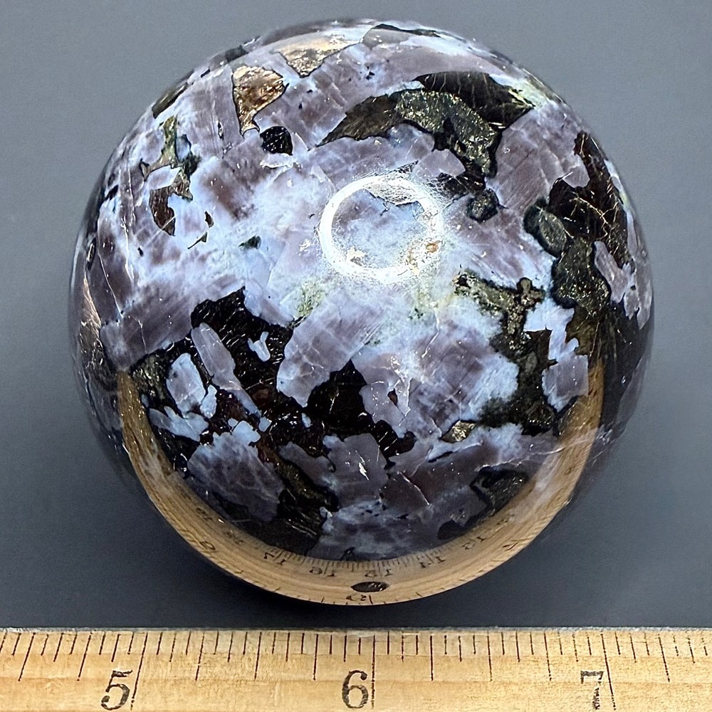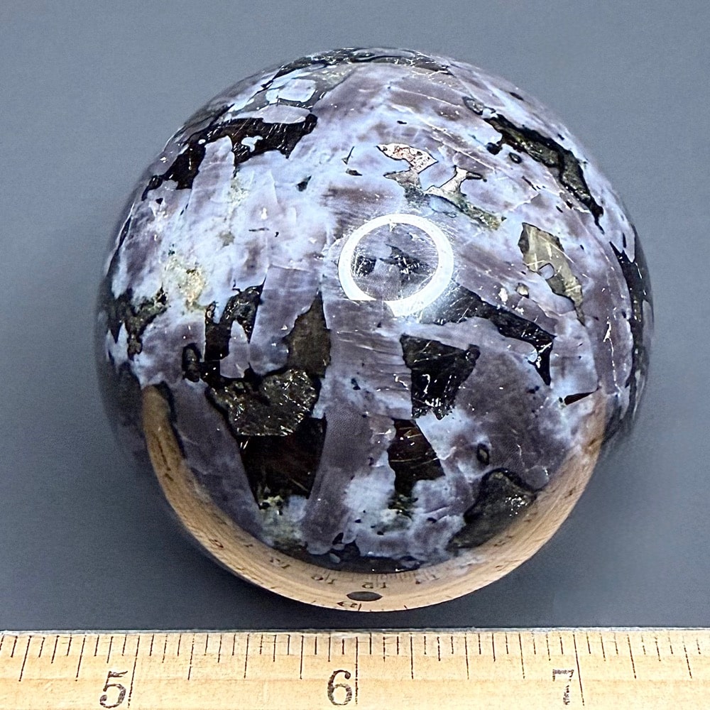 Indigo Gabbro or Mystic Merlinite is a newly mined crystal from Madagascar. It has amazing colors from light indigo purple to black. Gabbro refers to a large group of dark, coarse-grained, intrusive mafic igneous rock chemically equivalent to Basalt. The vast majority of the Earth’s surface is underlain by Gabbro within the oceanic crust, produced by Basalt magmatism at mid-ocean ridges. Gabbro often contains valuable amounts of Chromium, Nickel, Cobalt, Gold, Silver, Platinum and Copper Sulfides. The name given to Merlinite is by no means a random act. It’s source in Cornwall, England has long been associated with the legend of King Arthur and his sorcerer Merlin.