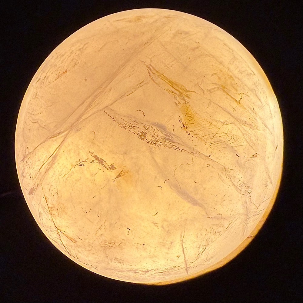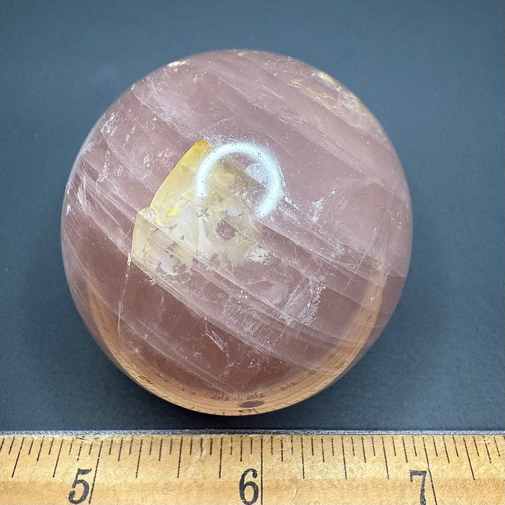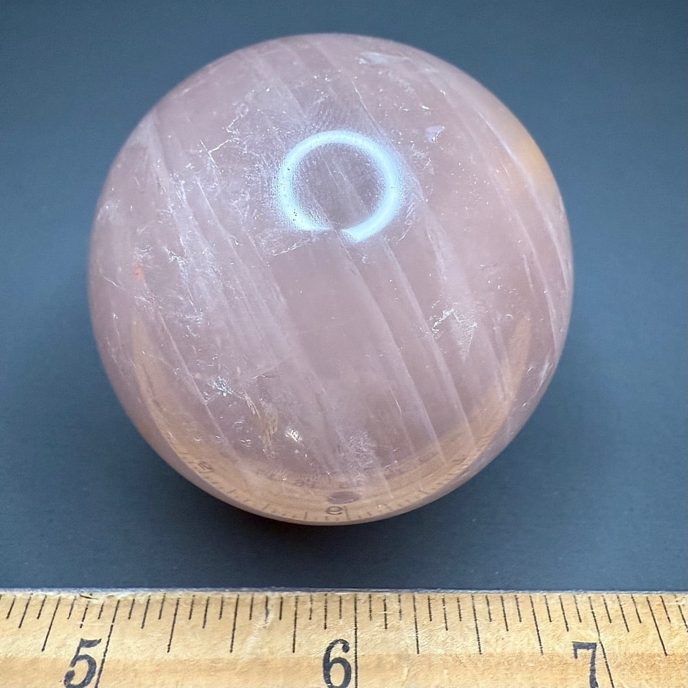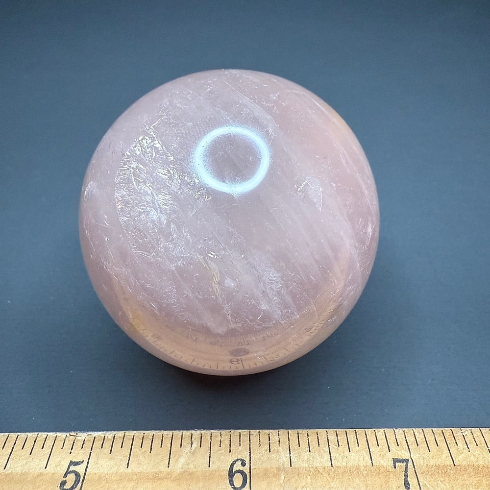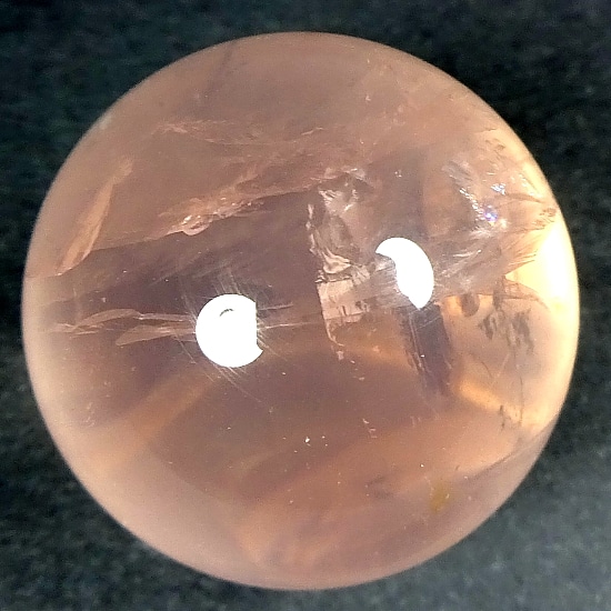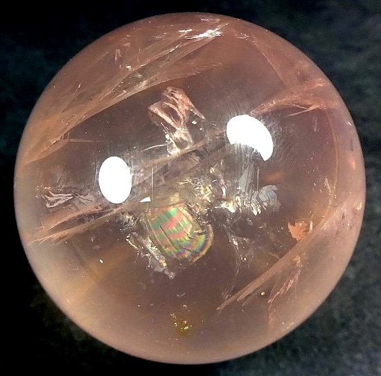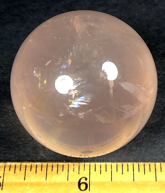 Appearance: It has exceptional clarity, amazing sparkly highlights and subtle “rainbow” reflections. It also has two beautiful 3-D “stars” (when rotated in bright light). The last photo below shows the “star” on this sphere which was very difficult to capture.