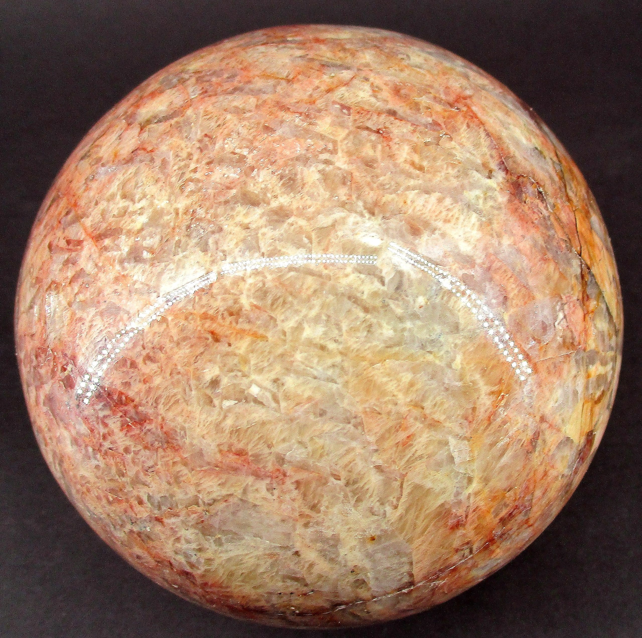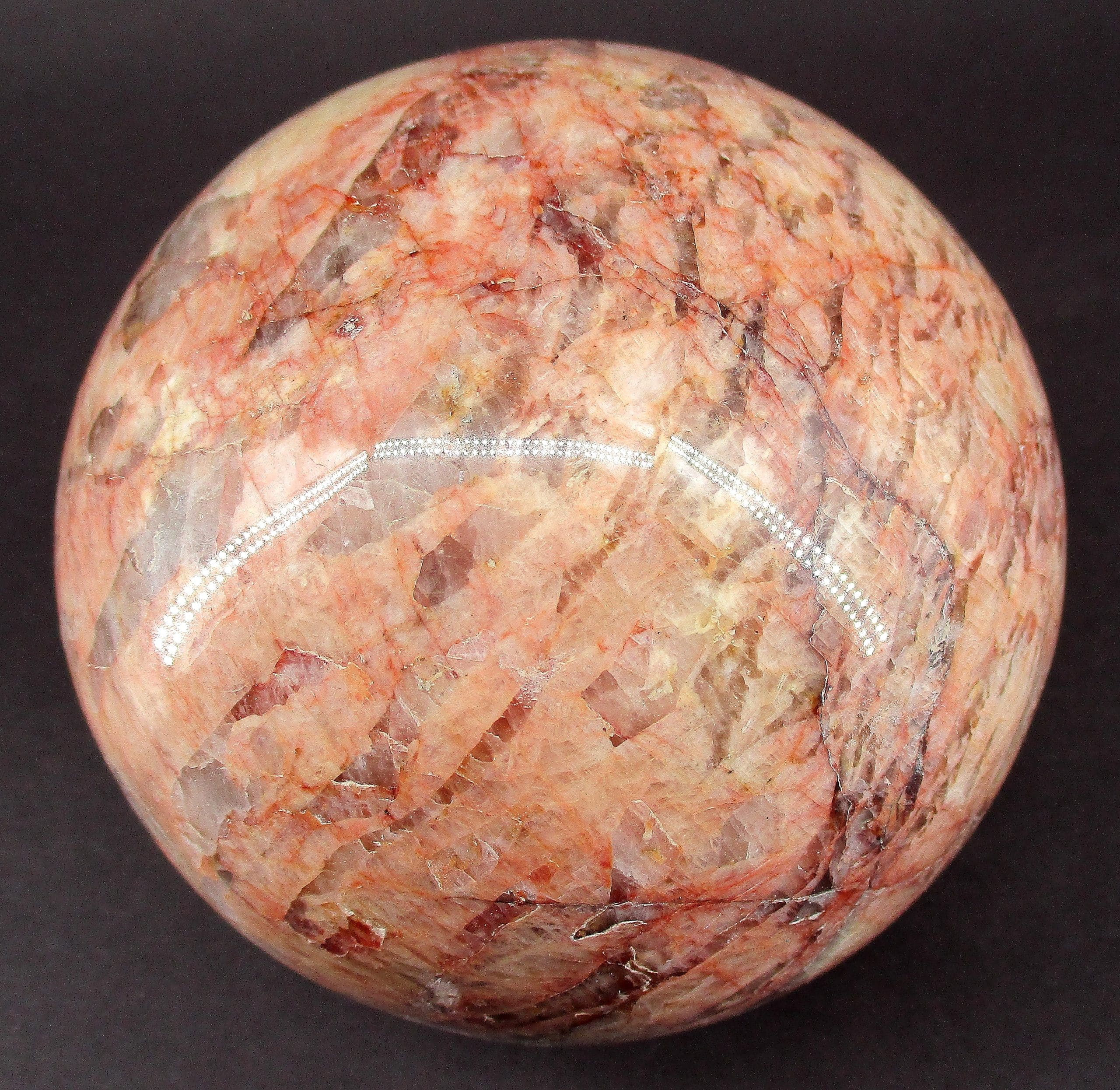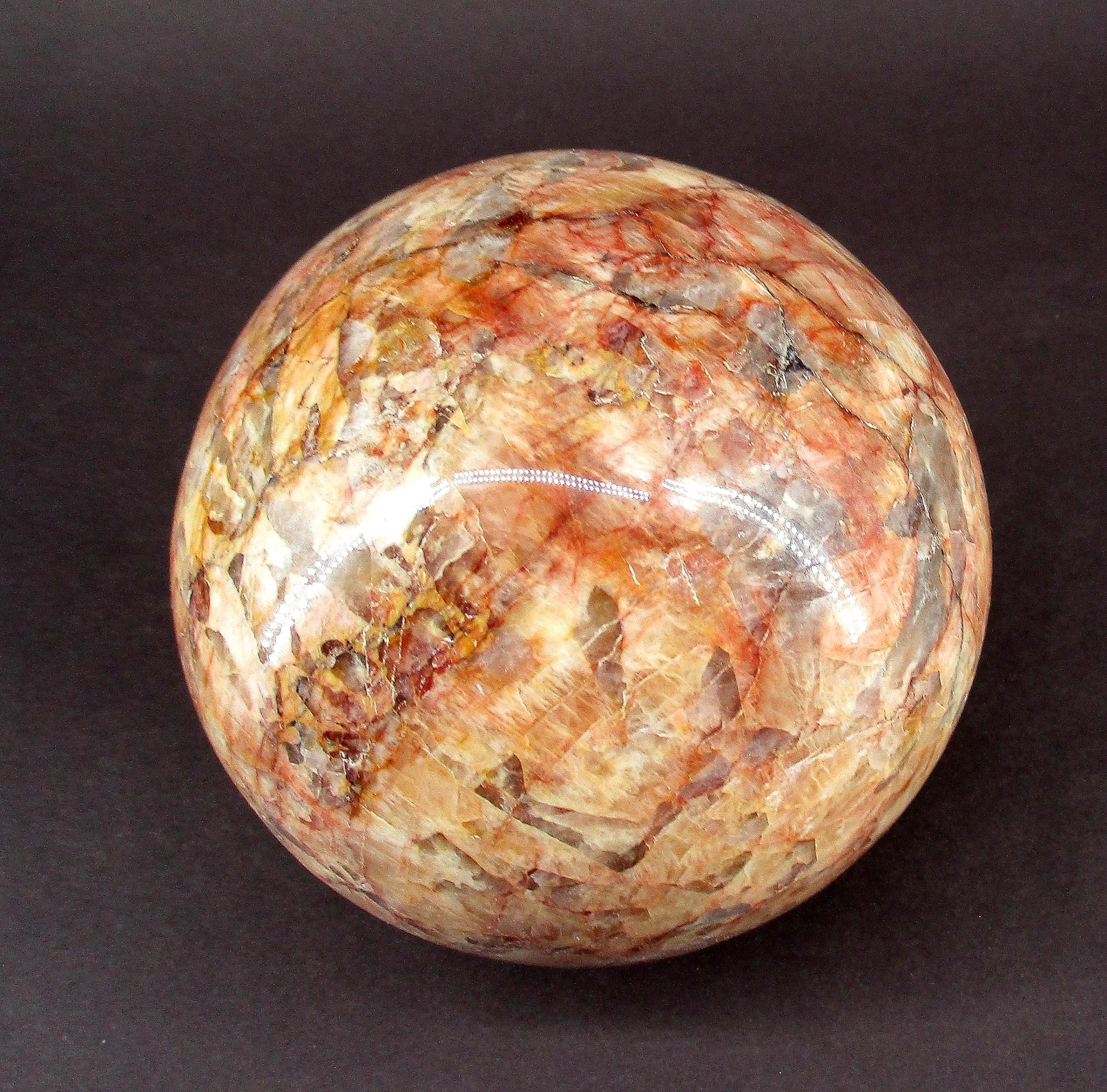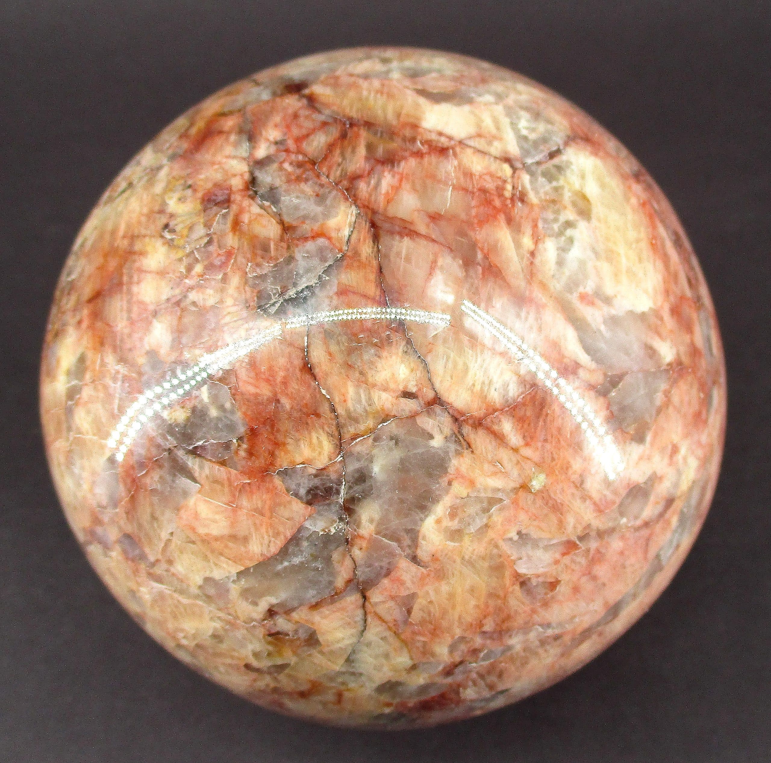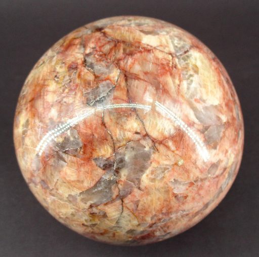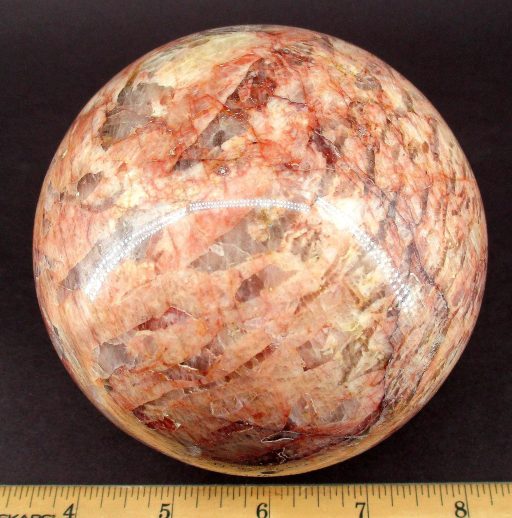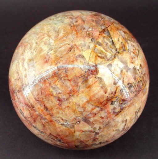 Here’s a new one, a gorgeous Graphic Granite sphere. It measures 3 7/8″ and has a great polish. It has a fabulous blend of the great design of the Graphic Granite enhancing the neat shimmer, color and pattern of the sphere. A great new addition to our sphere section!
