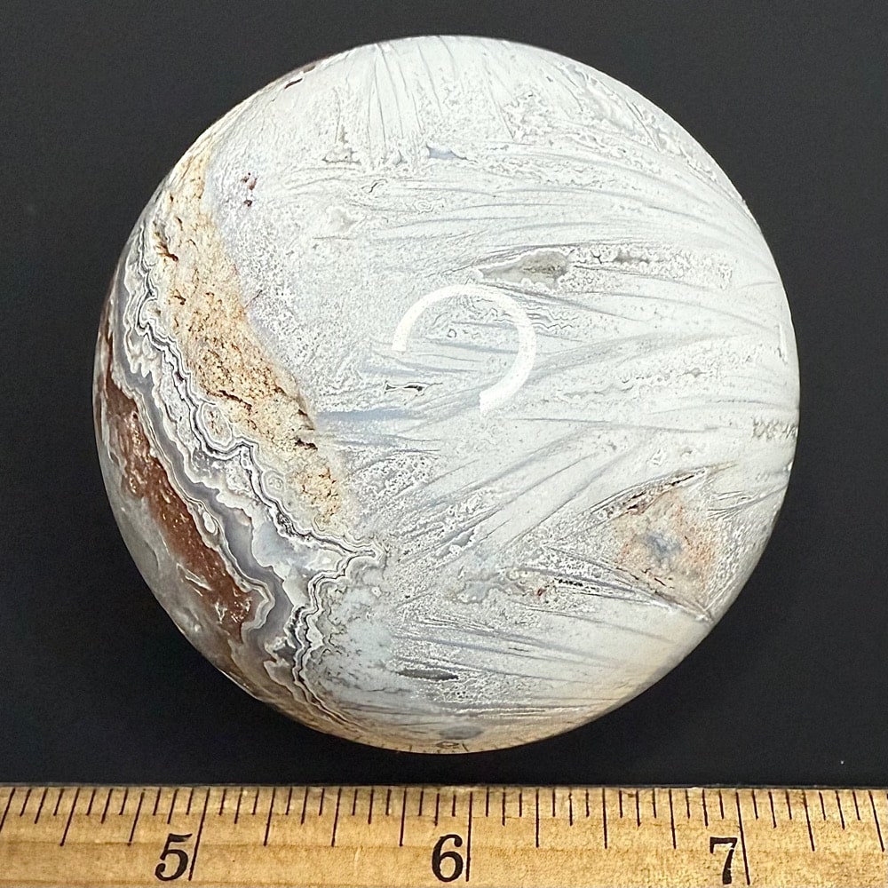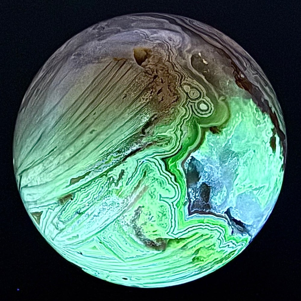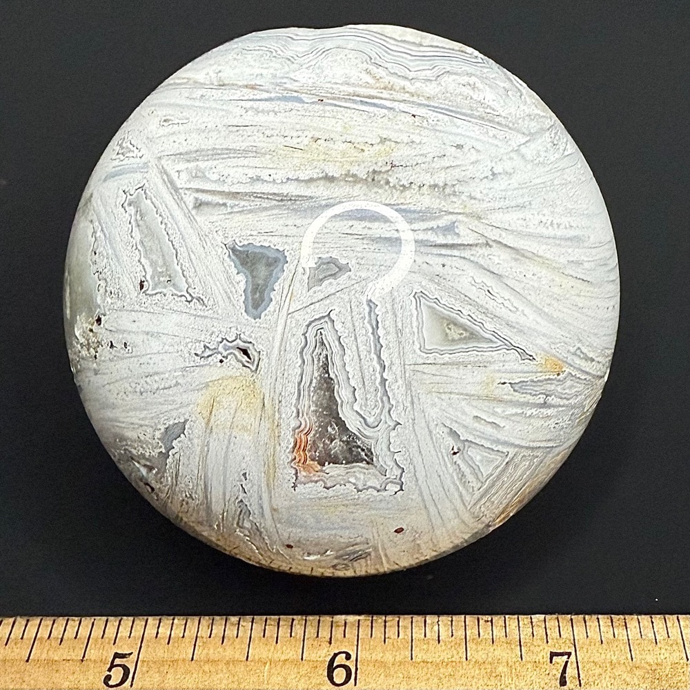 Mexican Agates are found as both smoother nodules and in a botryoidal form. This latter form is comprised of small, intersecting spheres. These generally give you a good idea of where the orbicular portions of the stone are, making the rough easier to identify and work with. These agates are thought to be between 65 and 95 million years old. They’re found in various limestone formations in Northern Mexico.