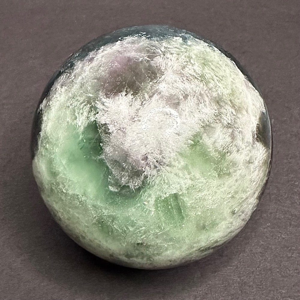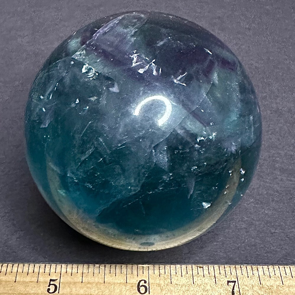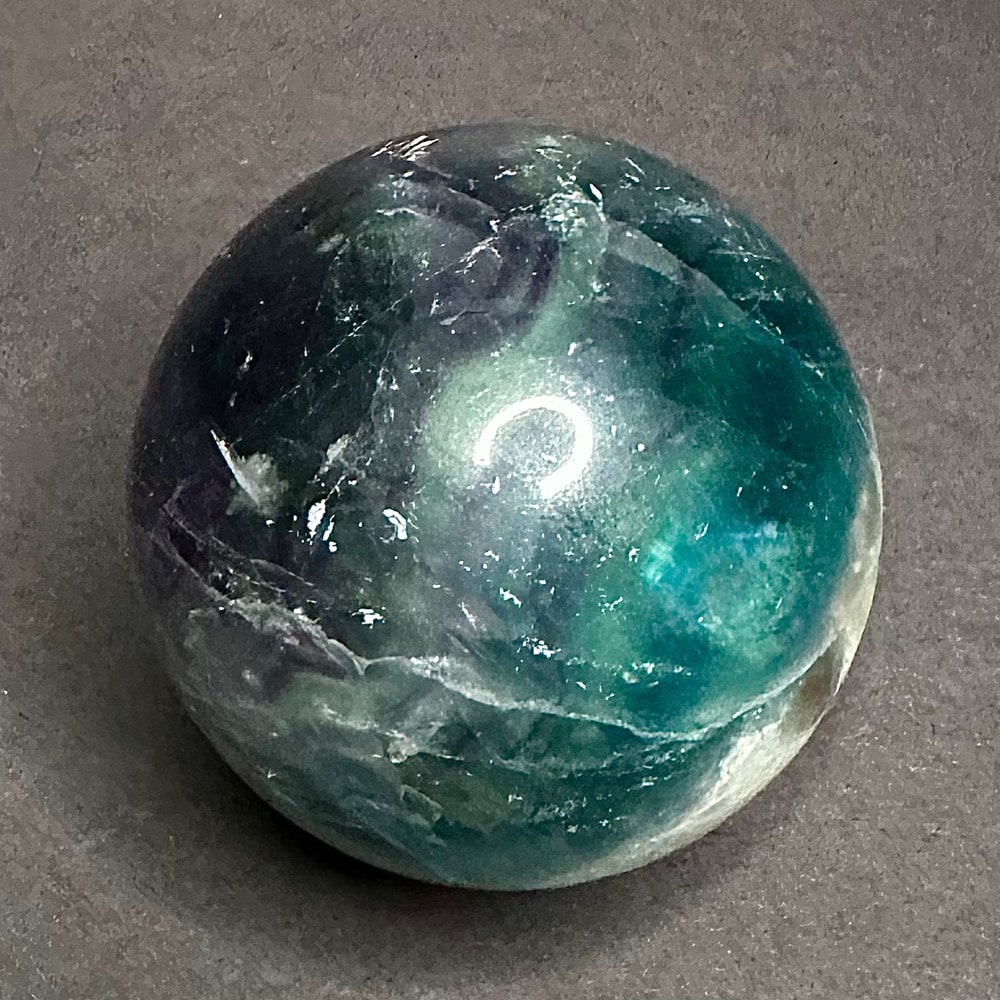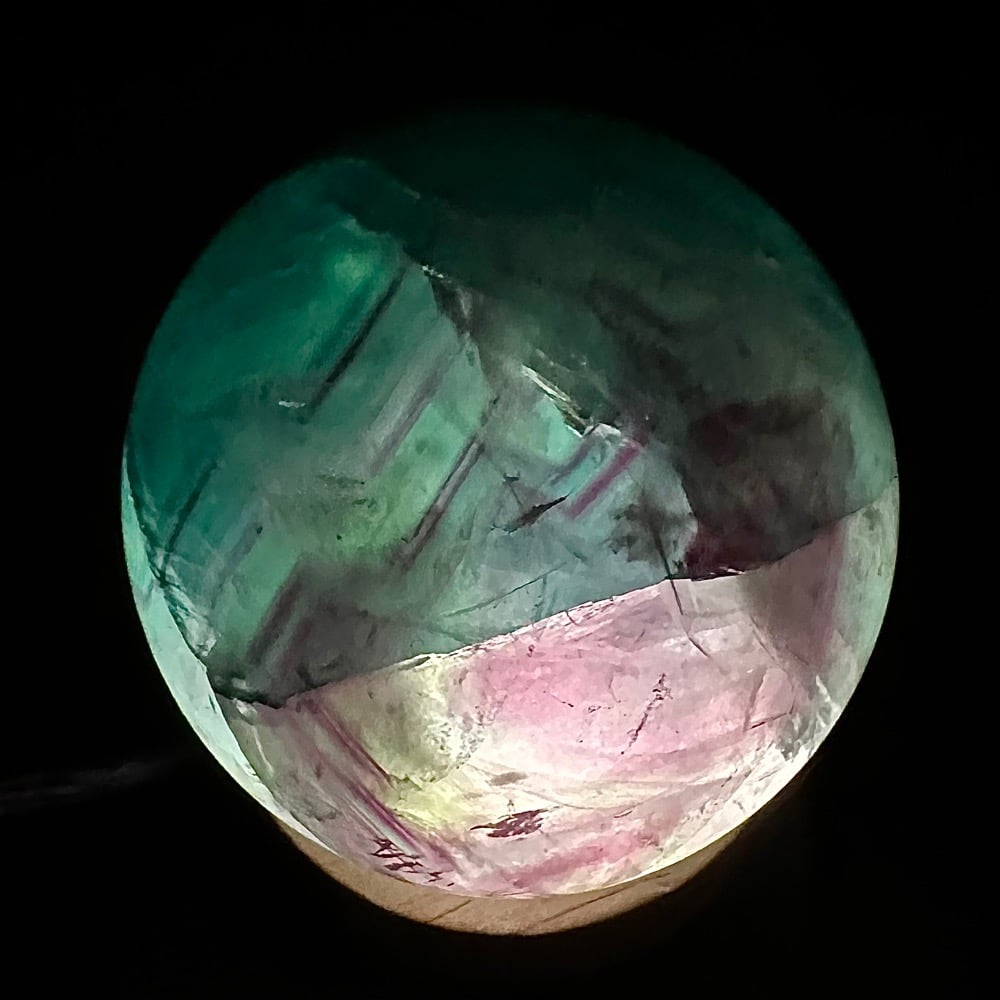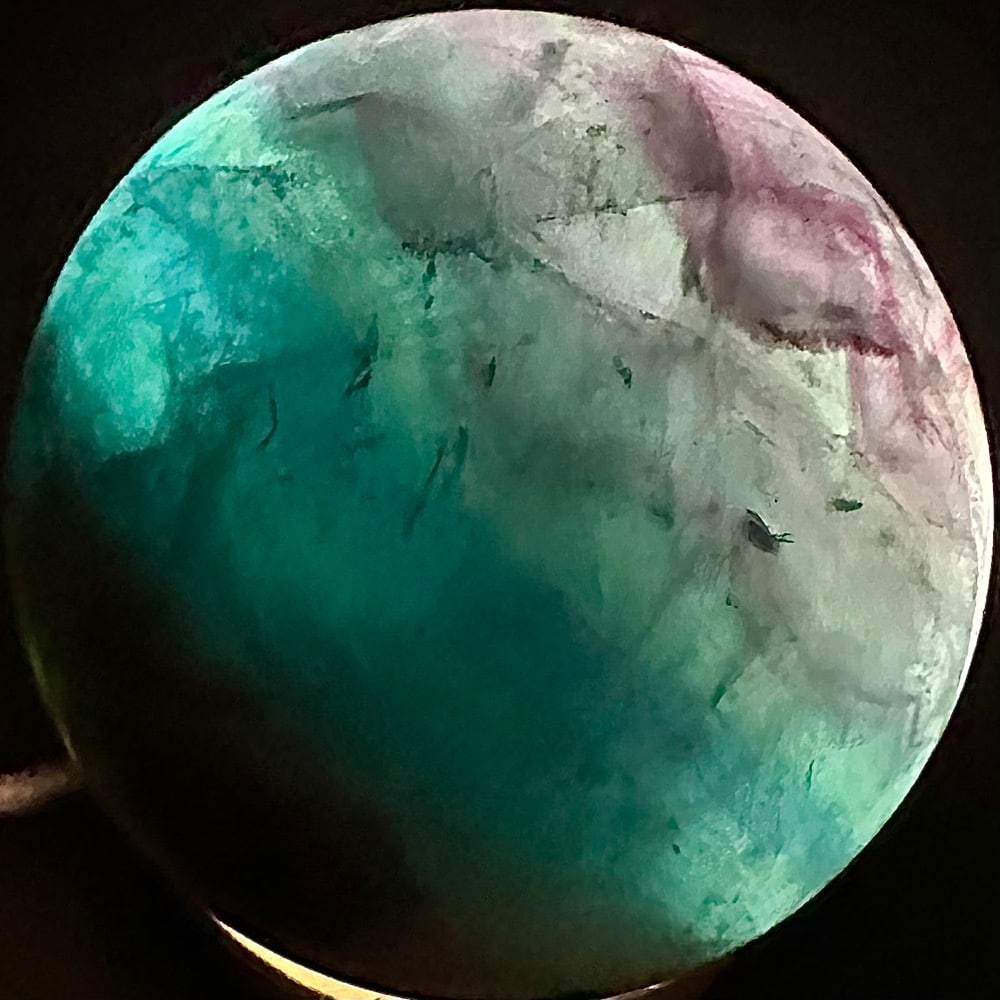 Appearance: It has aqua, green and purple colors with neat accents, amazing inclusions, subtle “rainbow” reflections, exceptional clarity creating a lovely design. It will fluoresce a bluish purple under a LW/UV light.