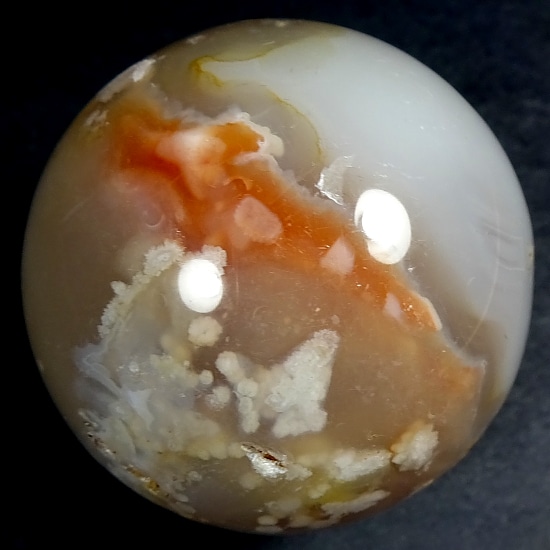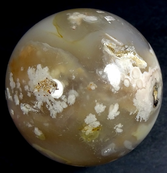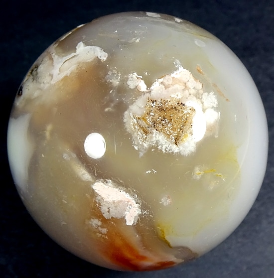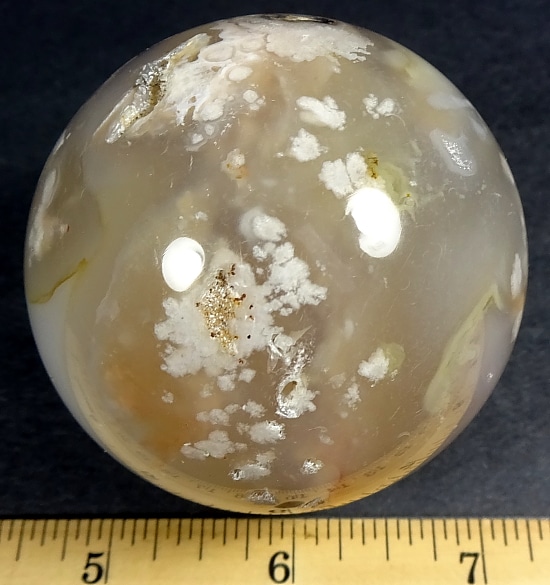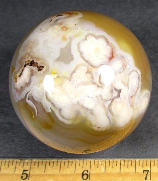 Here’s a new item, a fabulous Flower Agate Sphere from Madagascar. This exceptional sphere measures 2 1/8″ in diameter with a nice polish. This sphere has just an amazing appearance with its soft pastel colors with lots of accents, Agate windows and the “flowers” bursting throughout! Grab this rare beauty quick!
