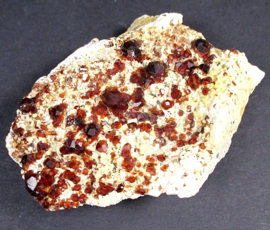 Spessartine or spessartite is manganese aluminium garnet. Its name is derived from Spessart in Bavaria. It occurs most often in skarns, granite pegmatite and allied rock types, and in certain low grade metamorphic phyllites. Spessartine of an orange -yellow is found in Madagascar.