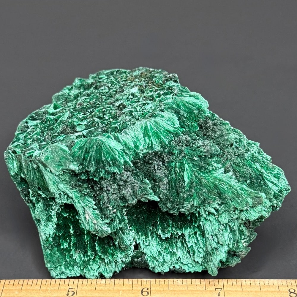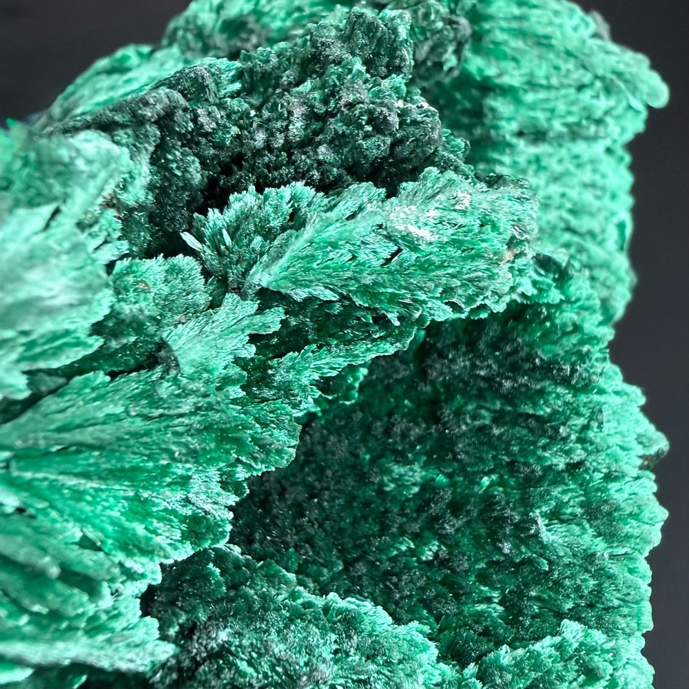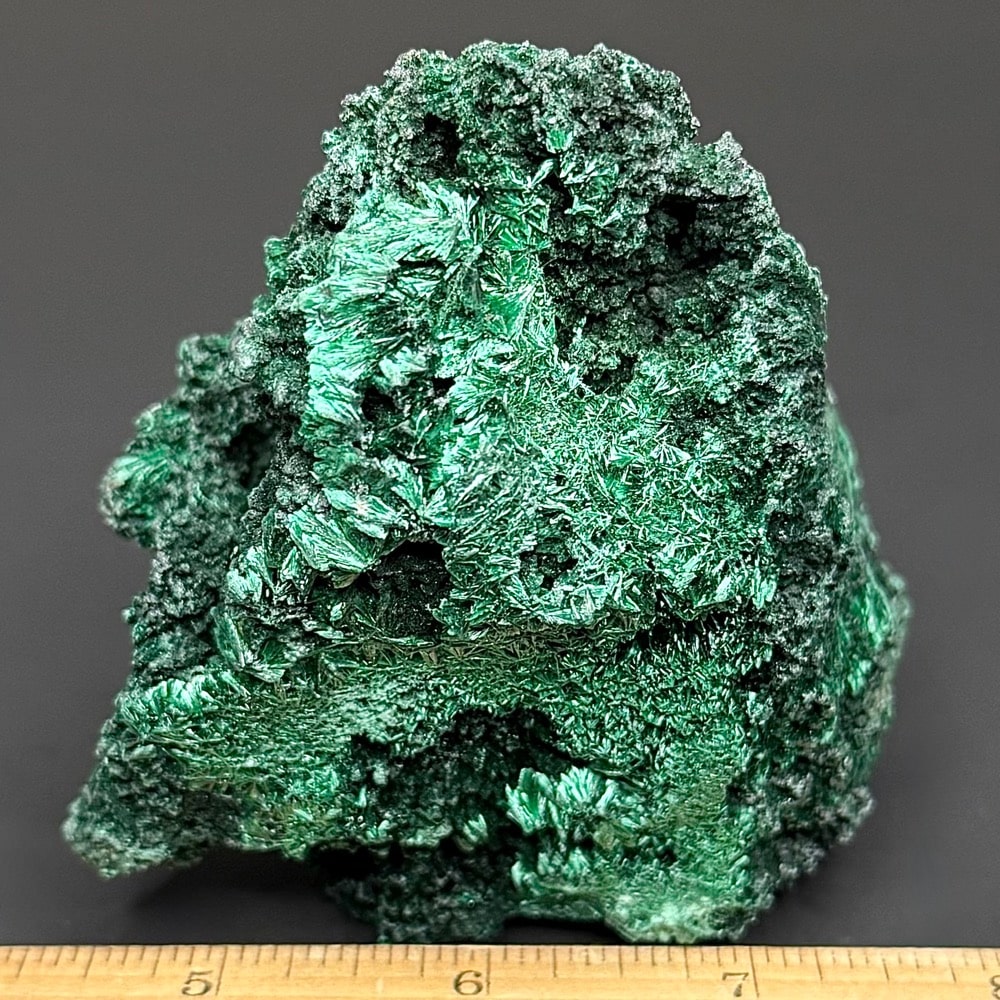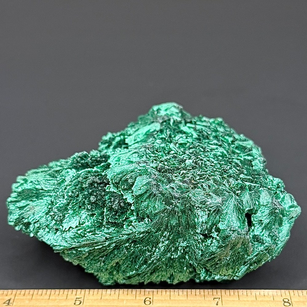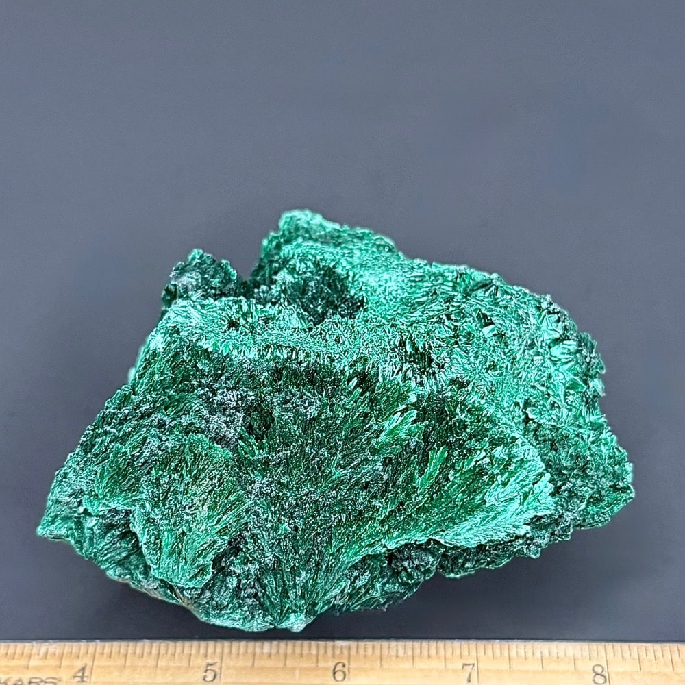 Malachite is a Copper Carbonate mineral that often forms botryoidal, fibrous or stalagmitic masses.  It is often the result of the weathering of Copper Ores and is commonly found with Azurite, Goethite and Calcite.  It is typically associated with Copper deposits including Limestone which is the source of the Carbonate.  Malachite is found in many regions worldwide and is usually shaded green in color.