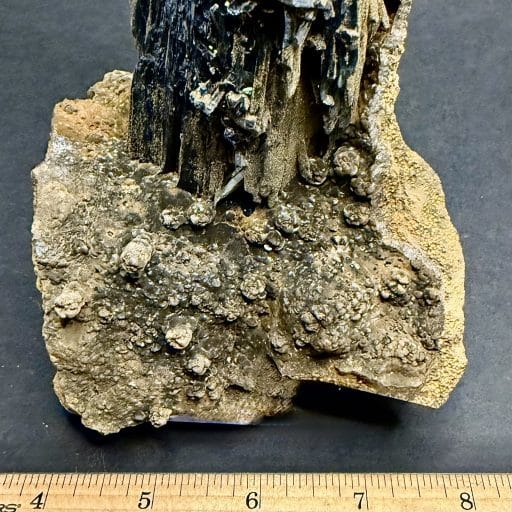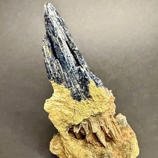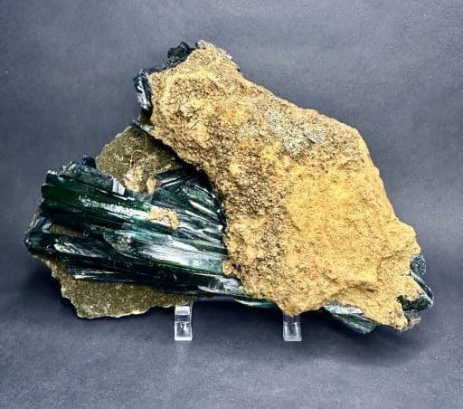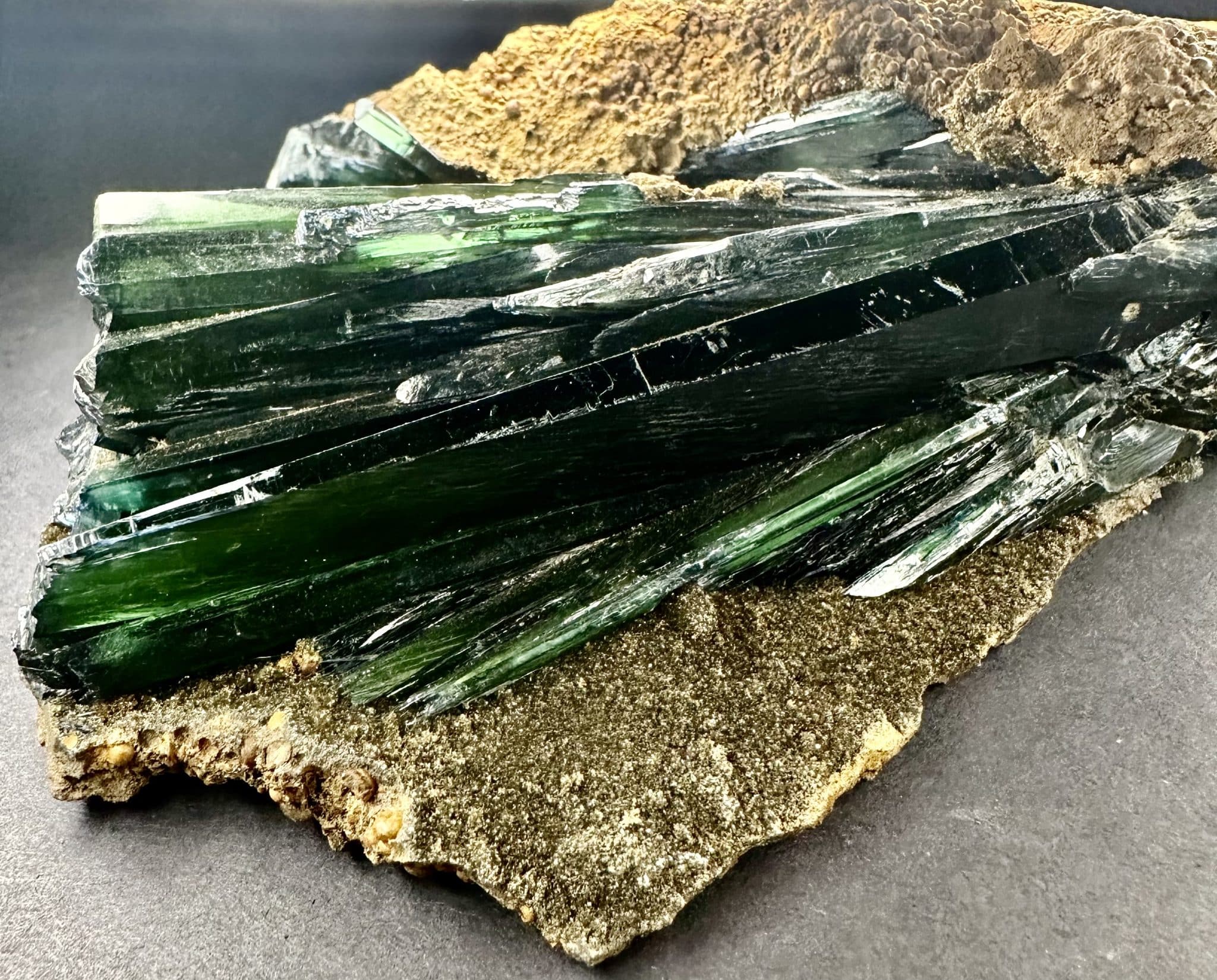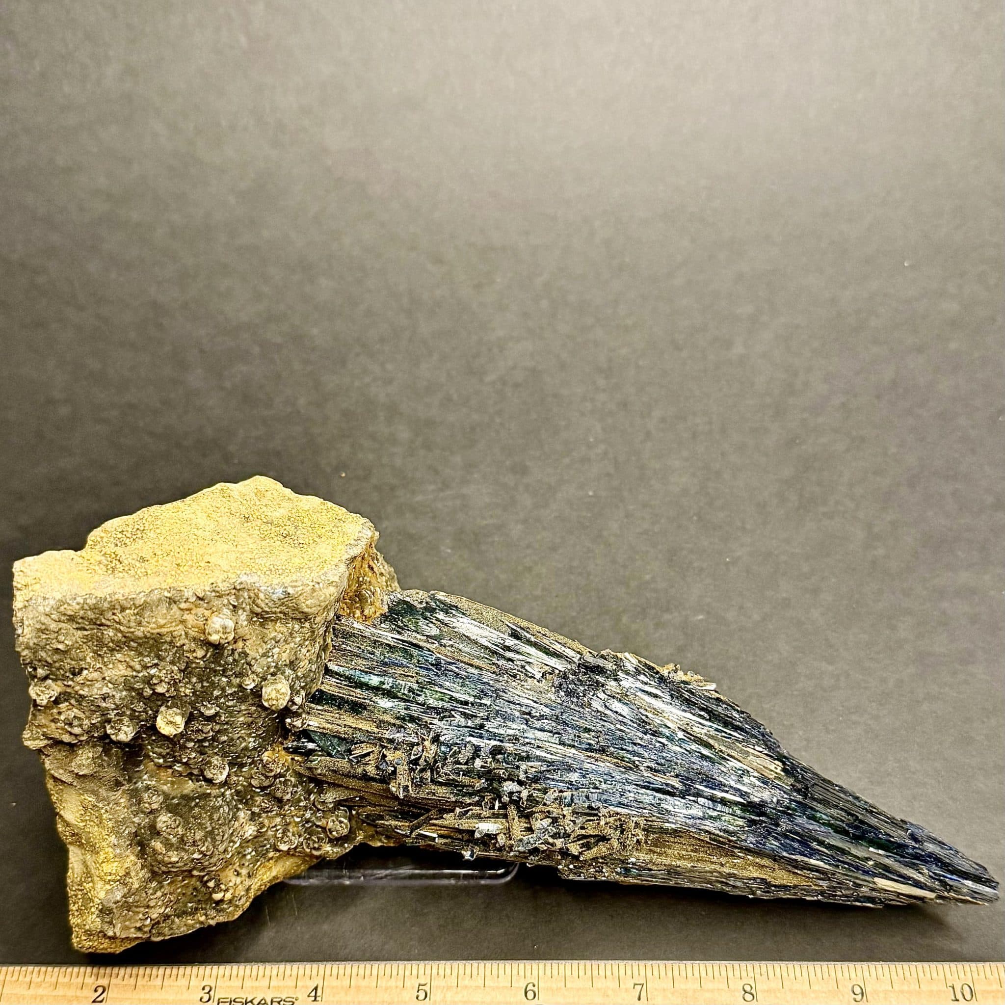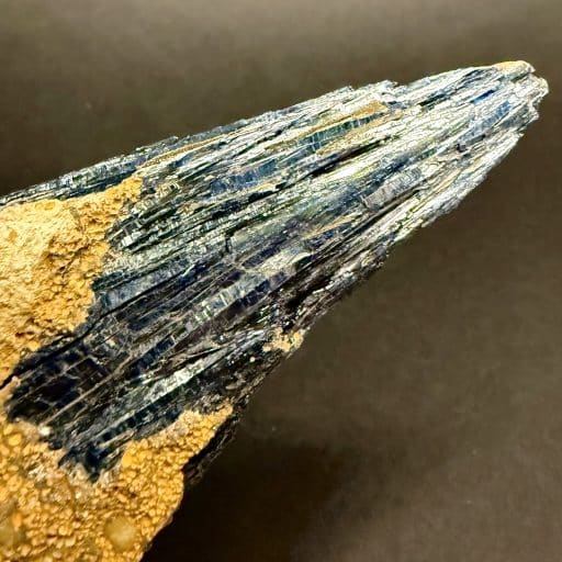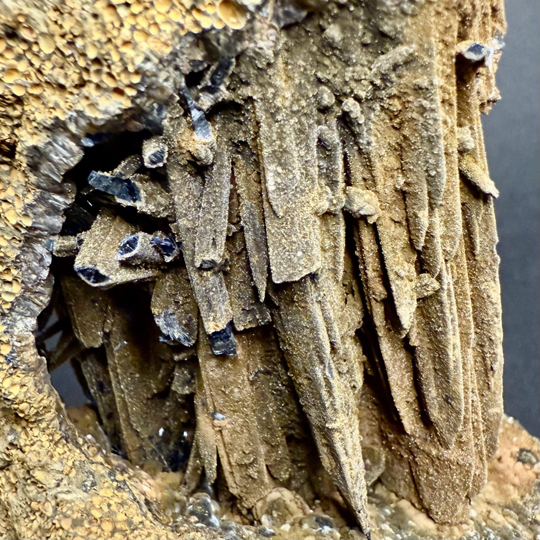 Vivianite is a hydrated iron phosphate mineral found in a number of geological environments. Small amounts of manganese, magnesium and calcium may substitute for iron in the structure. Colorless, very pale green, becoming dark blue, dark greenish blue, indigo-blue, then black with oxidation.