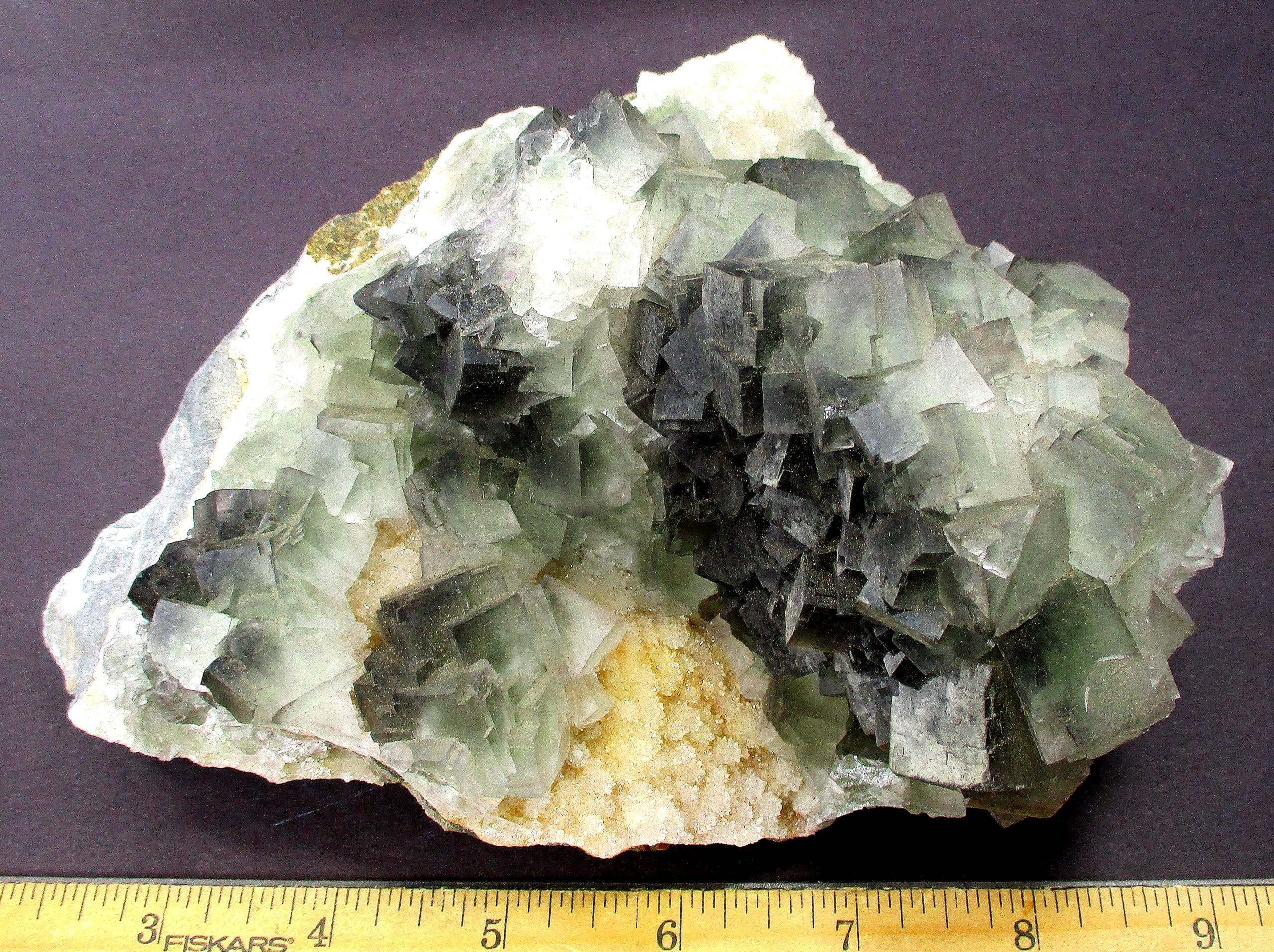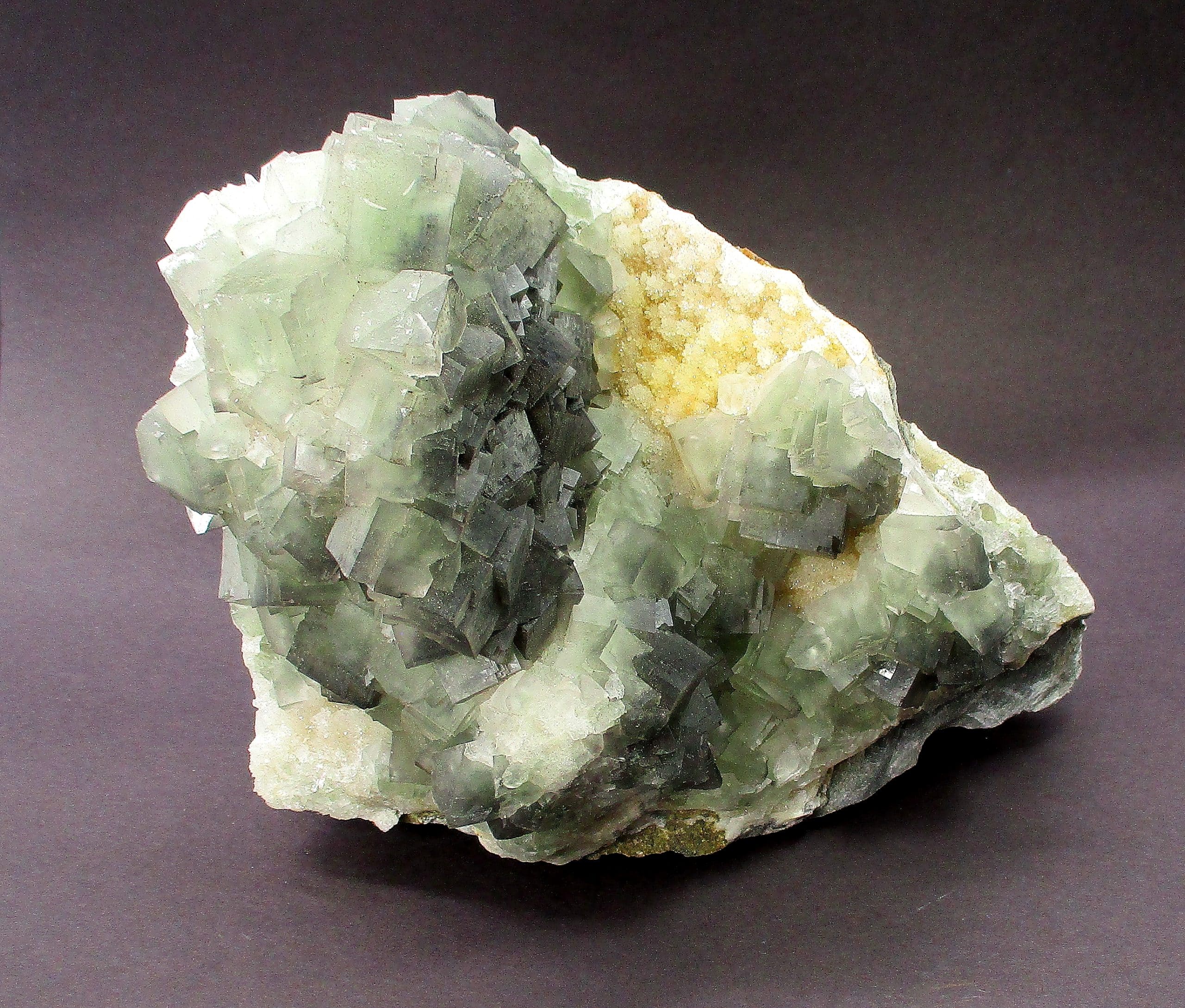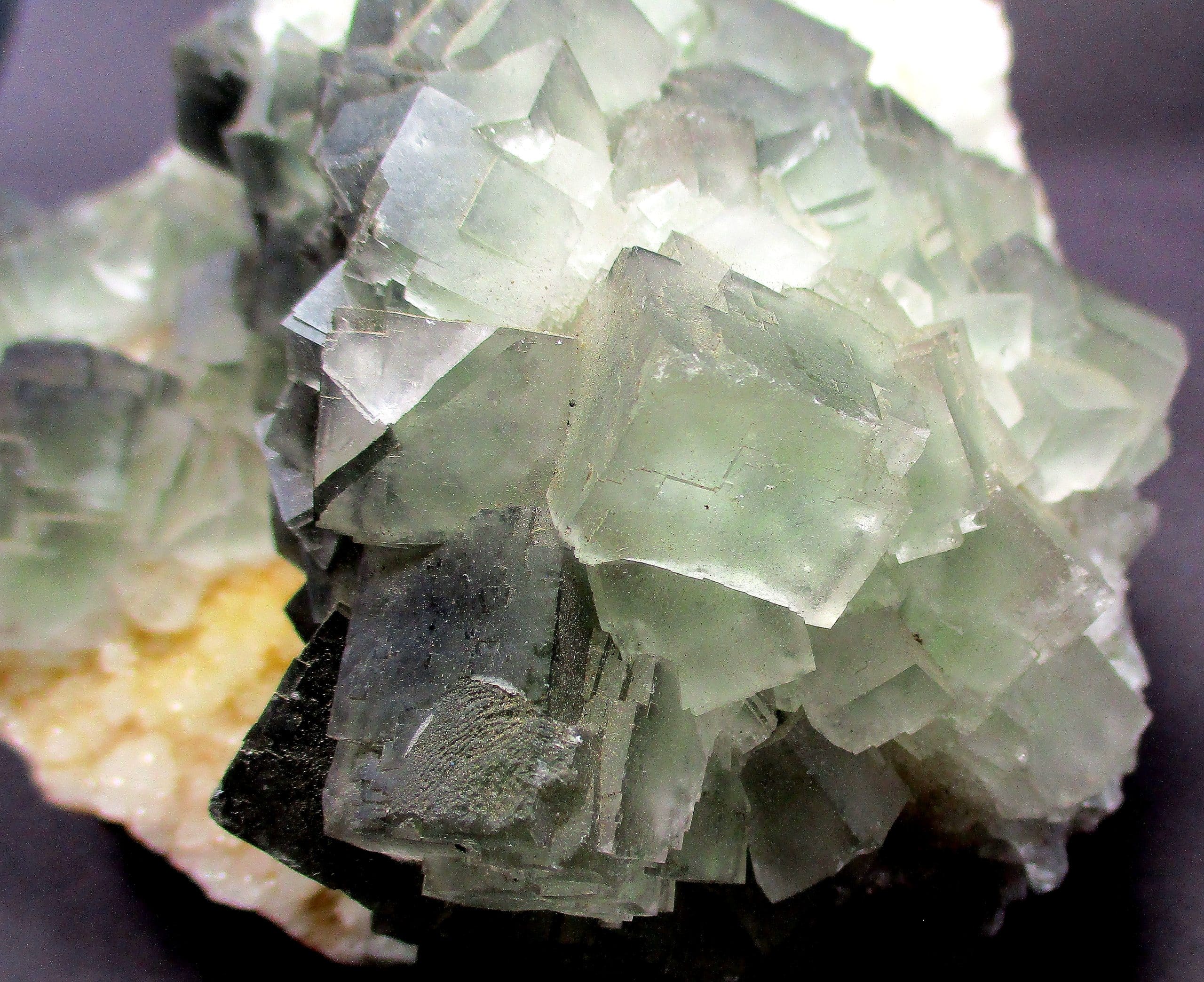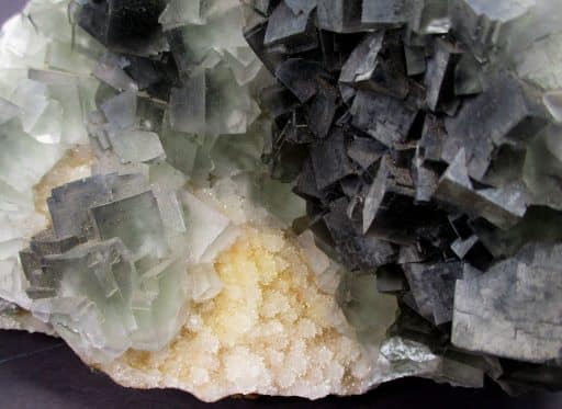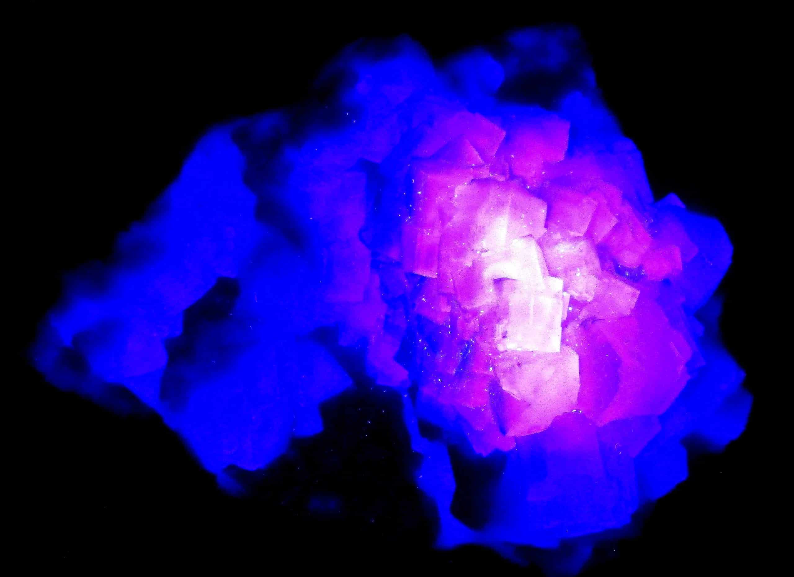 Fluorite, also known as fluor-spar, is a mineral composed of Calcium Fluoride. It is a widely occurring mineral and is often found with metallic minerals such as Galena and Sphalerite, but also with Barite, Quartz and Calcite. It may fluoresce strongly in ultraviolet light. Although green is the most common color, it can also be red, purple, blue, yellow and white.