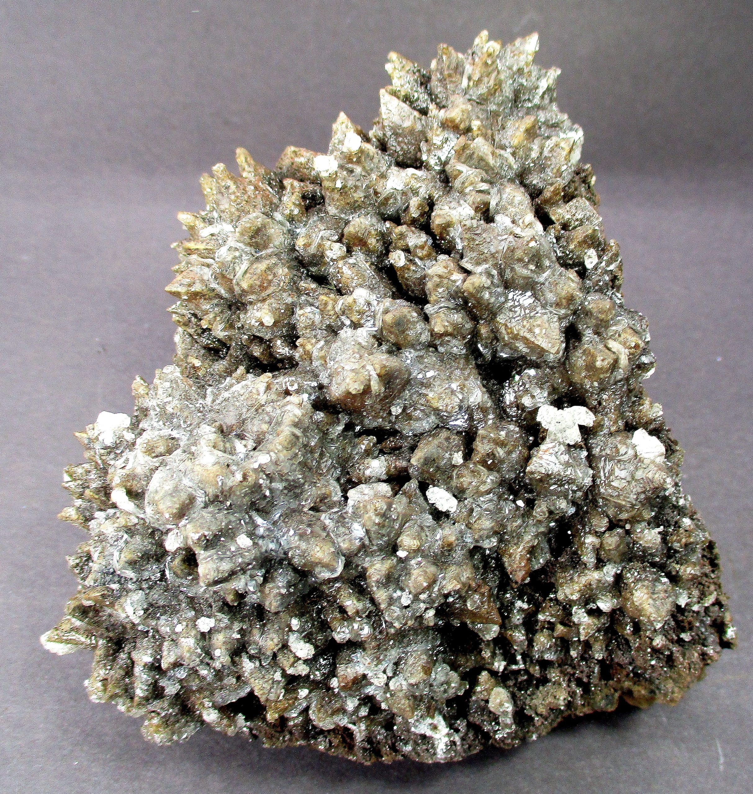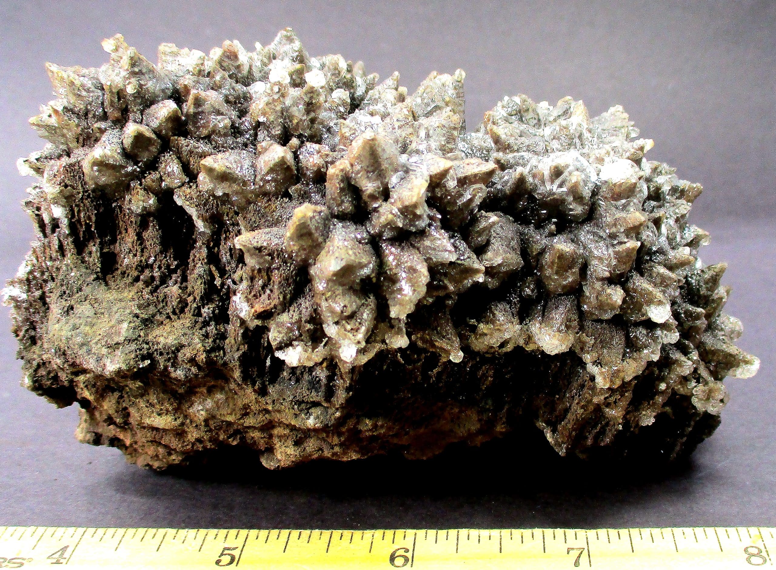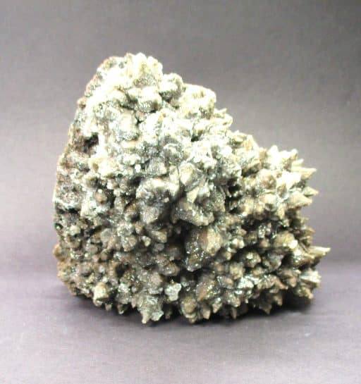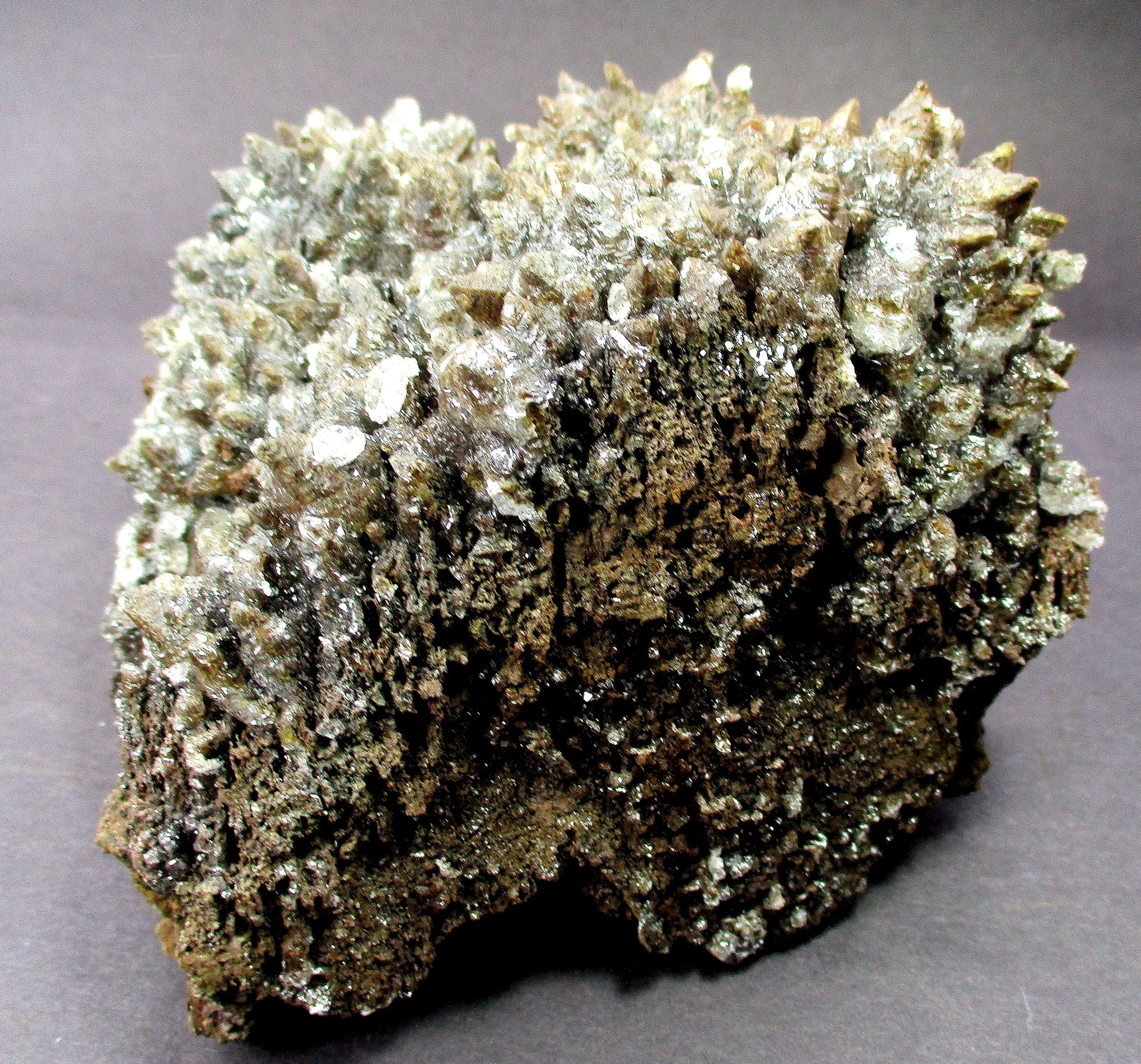 Appearance: With an all-natural exterior, this specimen has many sharply pointed Crystal tips and rust brown tinted pyramid-shaped centers with iridescent shine.  There are tiny clear crystals on much of it that provides a “frosted” look.