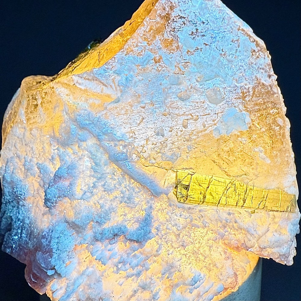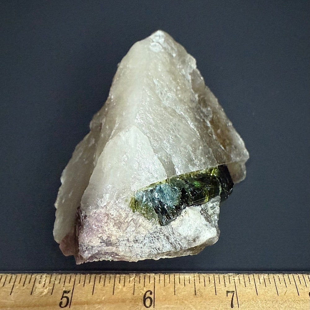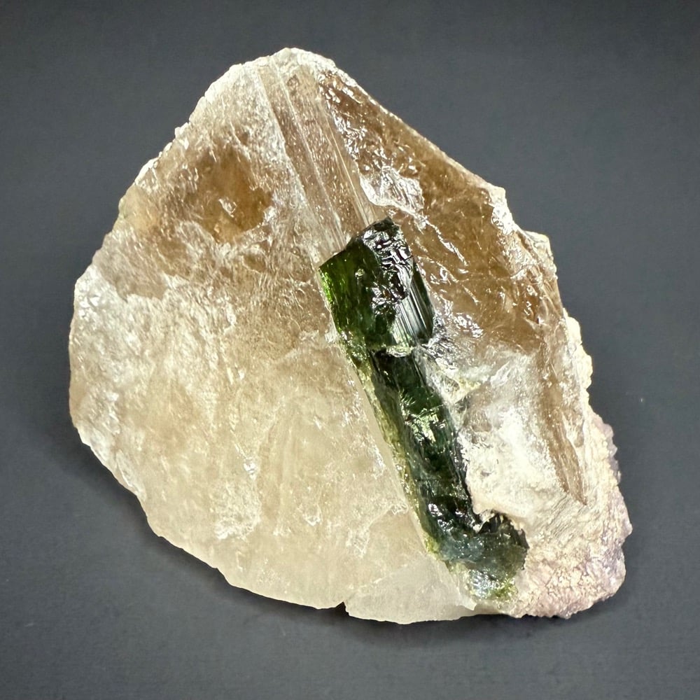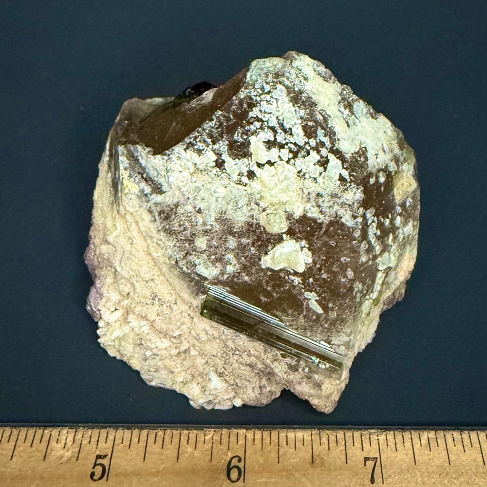 Tourmaline is one of the most chemically complicated of all Silicate minerals. It is a complex Silicate of Aluminum and Boron and the composition varies widely with Sodium, Calcium, Iron, Magnesium, Lithium and many other elements that enter into it’s structure. It can occur in a long, slender needle-like crystal to a thick prismatic and columnar crystal to a radial like daisy formation. It comes in many colors usually black and brown (iron rich); brown and yellow (magnesium rich); and blue, red, green, yellow, and pink (lithium rich). This mineral is found in igneous rocks, like Granite Pegmatite, and metamorphic rocks such as Schist and Marble.