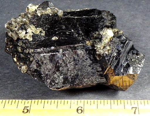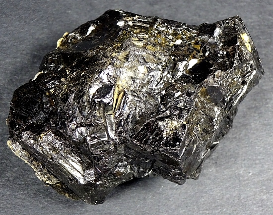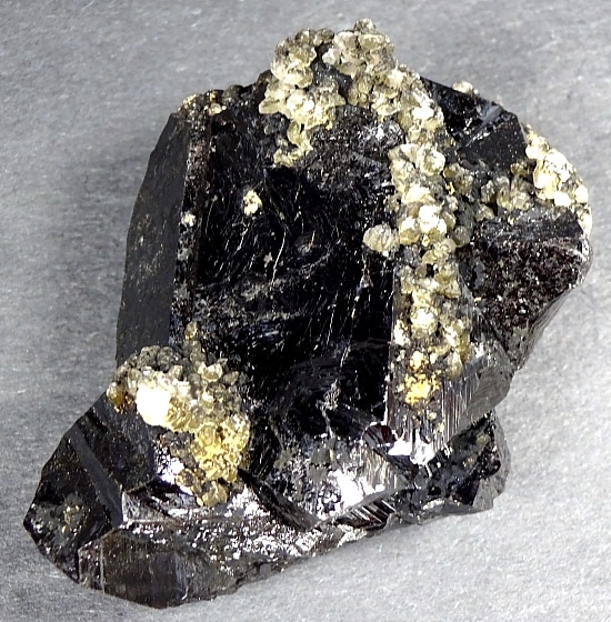Sphalerite is a mineral that is the chief ore of Zinc. It consists mainly of Zinc Sulfide in crystalline form but almost always contains valuable Iron. When the Iron content is high, it is an opaque black variety called Marmatite. It is usually found in association with Galena, Pyrite, Calcite, Dolomite and Fluorite. It is usually yellow, brown or gray to gray-black in color and may have a shiny or dull luster or sheen.