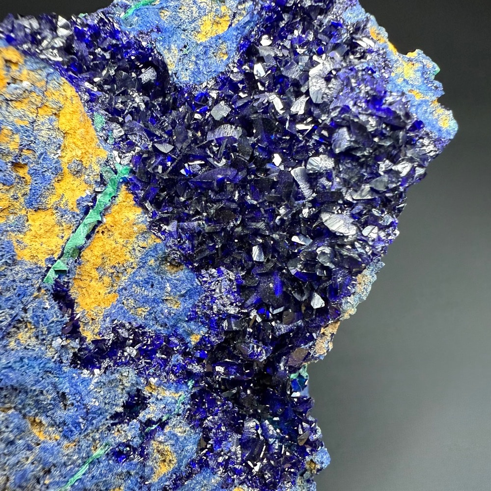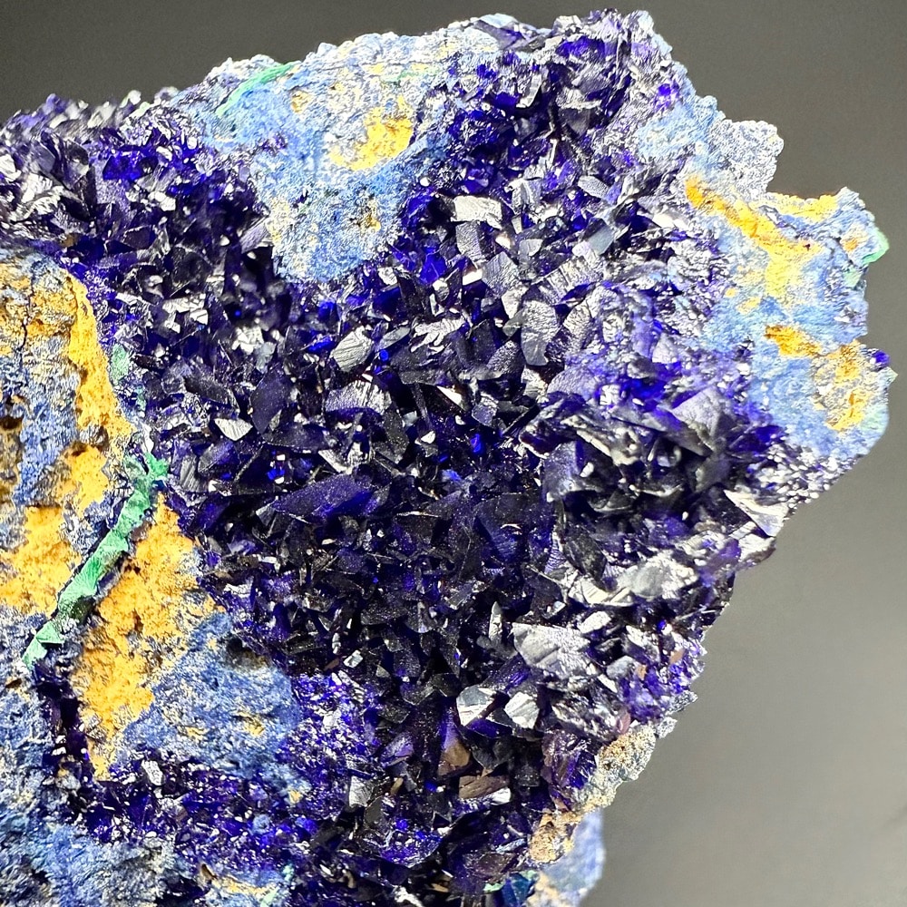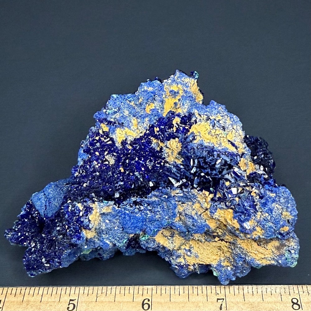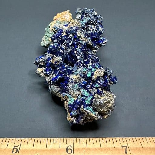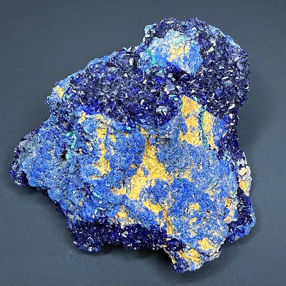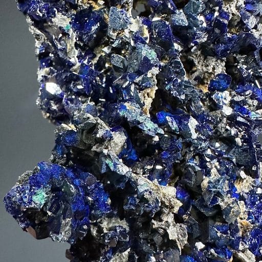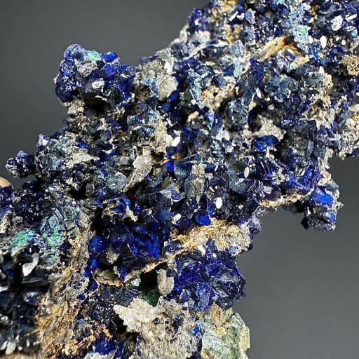 Azurite is a mineral belonging to the Carbonate group of minerals. It is commonly found with Malachite, Goethite and Calcite. It is typically associated with Copper deposits including Limestone which is the source of the Carbonate