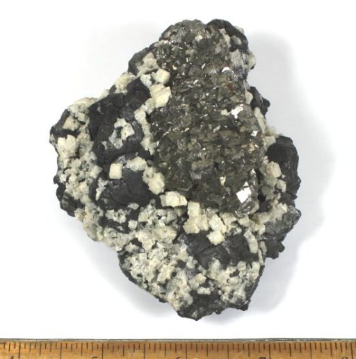 Here is something different for the mineral collector.  This is a very nice, bright Yellow Pyrite with some what appears to be Galena mixed with creamy colored crystals all on matrix.  It measures 3 7/8″ x 3″ x 1 3/4″ and does not have any polish.  A really neat, unique mineral to add to your collection.