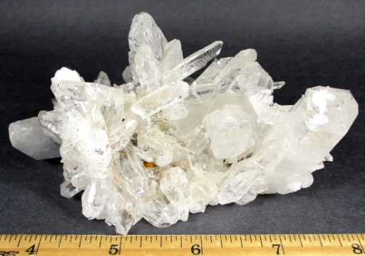 Here’s a stunning item, a gorgeous Crystal Quartz Cluster from Brazil.  It measures 4 1/8″ x 2 7/8″ x 3″ and has several crystals in various sizes pointing in all direction giving it a spectacular design! It has a double terminated crystal, exceptional clarity, “rainbow” reflections and what looks like a chip seems to be more crystal growth.  Very unique and very cool!