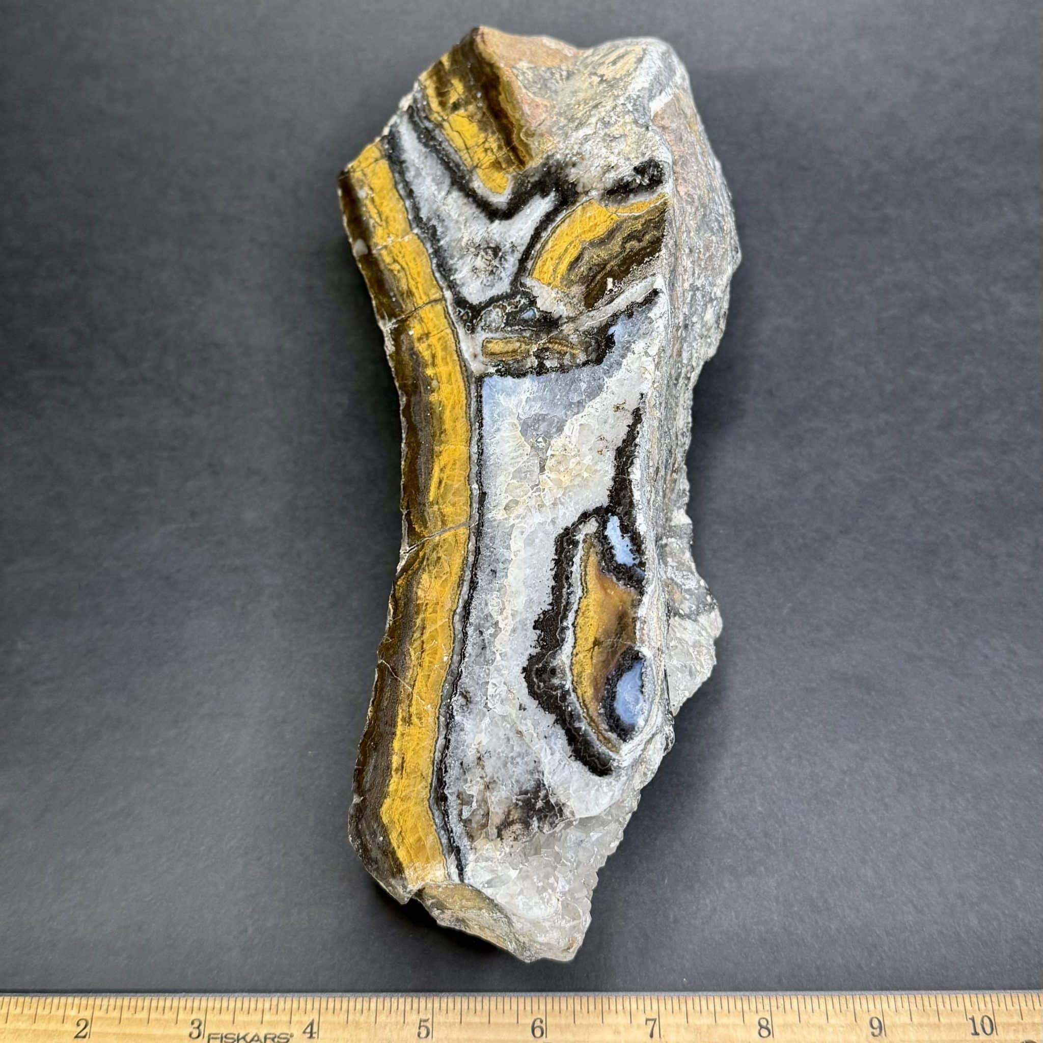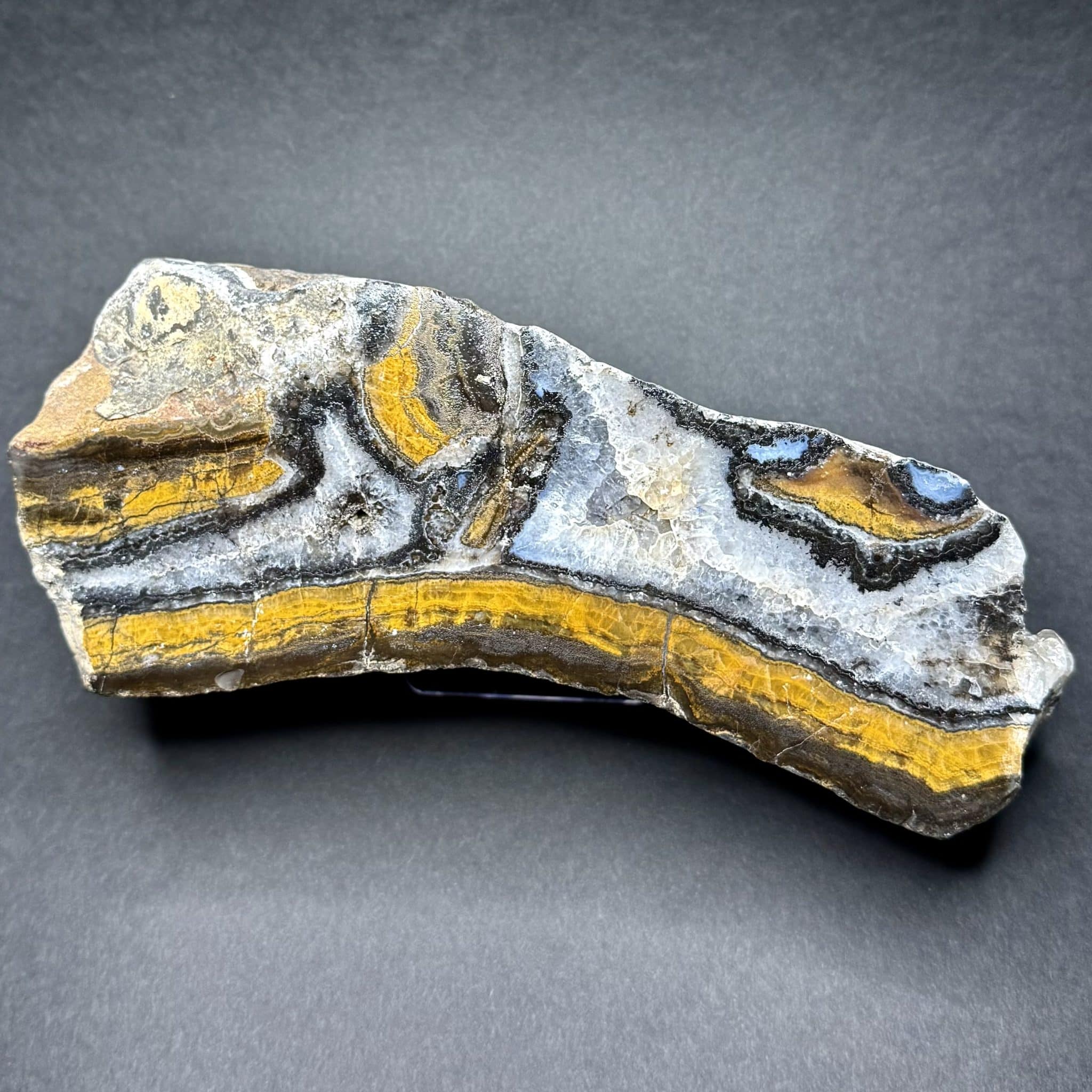Appearance: Cut and polished in our Lapidary Department. Earth tone colors, great banding and contrasting accents. UV fluorescent.