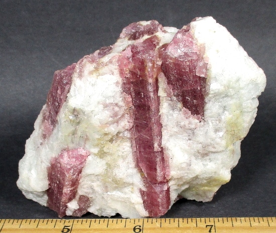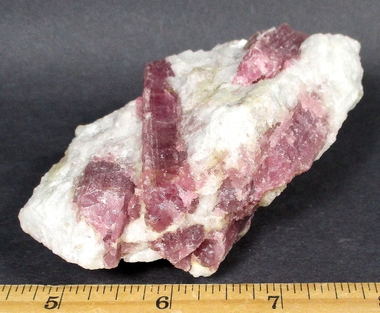 Rubellite is a particularly beautiful and colorful gemstone from Tourmaline family. The Tourmaline mineral group is chemically one of the most complicated groups of Silicate minerals. Its composition varies widely with Sodium, Calcium, Iron, Magnesium, Lithium, Aluminum, Boron and other elements. It has a wide variety of colors including black, blue-black, brown, yellow, red, green, pink and is rarely colorless. This mineral is found in igneous rocks, like Granite Pegmatite, and metamorphic rocks such as Schist and Marble.