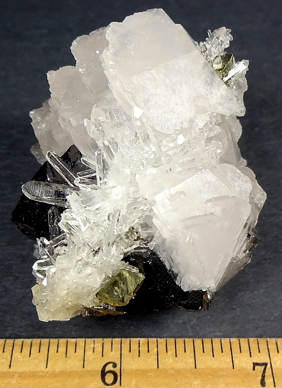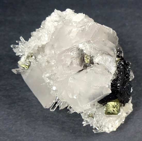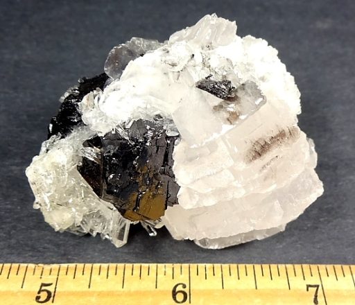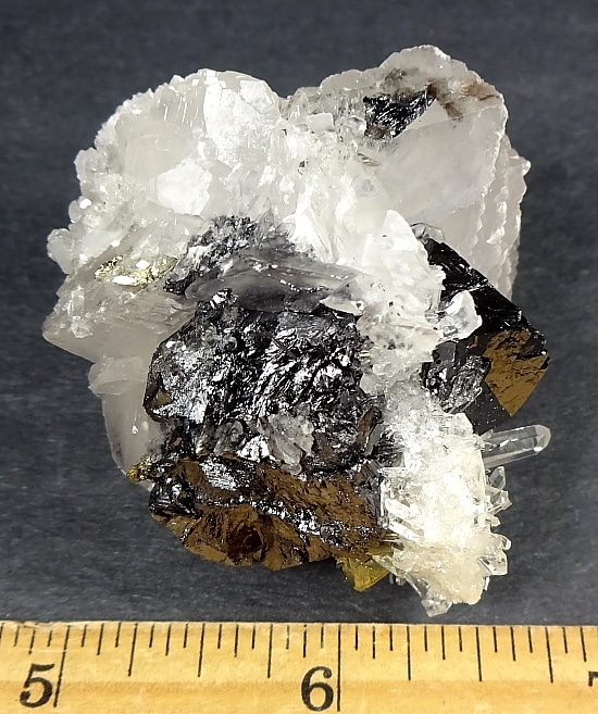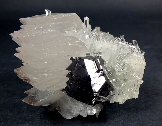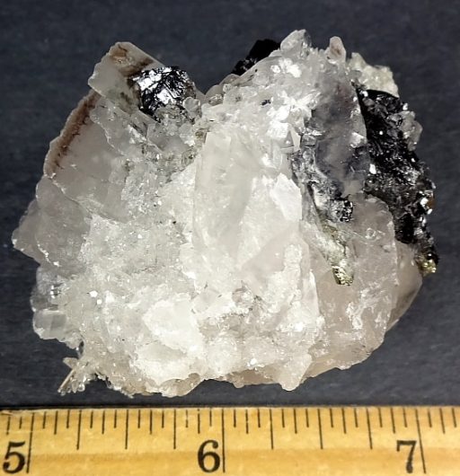 Galena is the natural mineral form of Lead Sulfide. It is the most important Lead ore mineral and is one of the most abundant and widely distributed sulfide minerals. It is often associated with Sphalerite, Calcite and Fluorite. Galena deposits often contain significant amounts of Silver, Zinc, Cadmium, Antimony Arsenic and Bismuth. It is used as a semiconductor in early wireless communication systems. It is usually dark grey to black in color with a shiny iridescence.