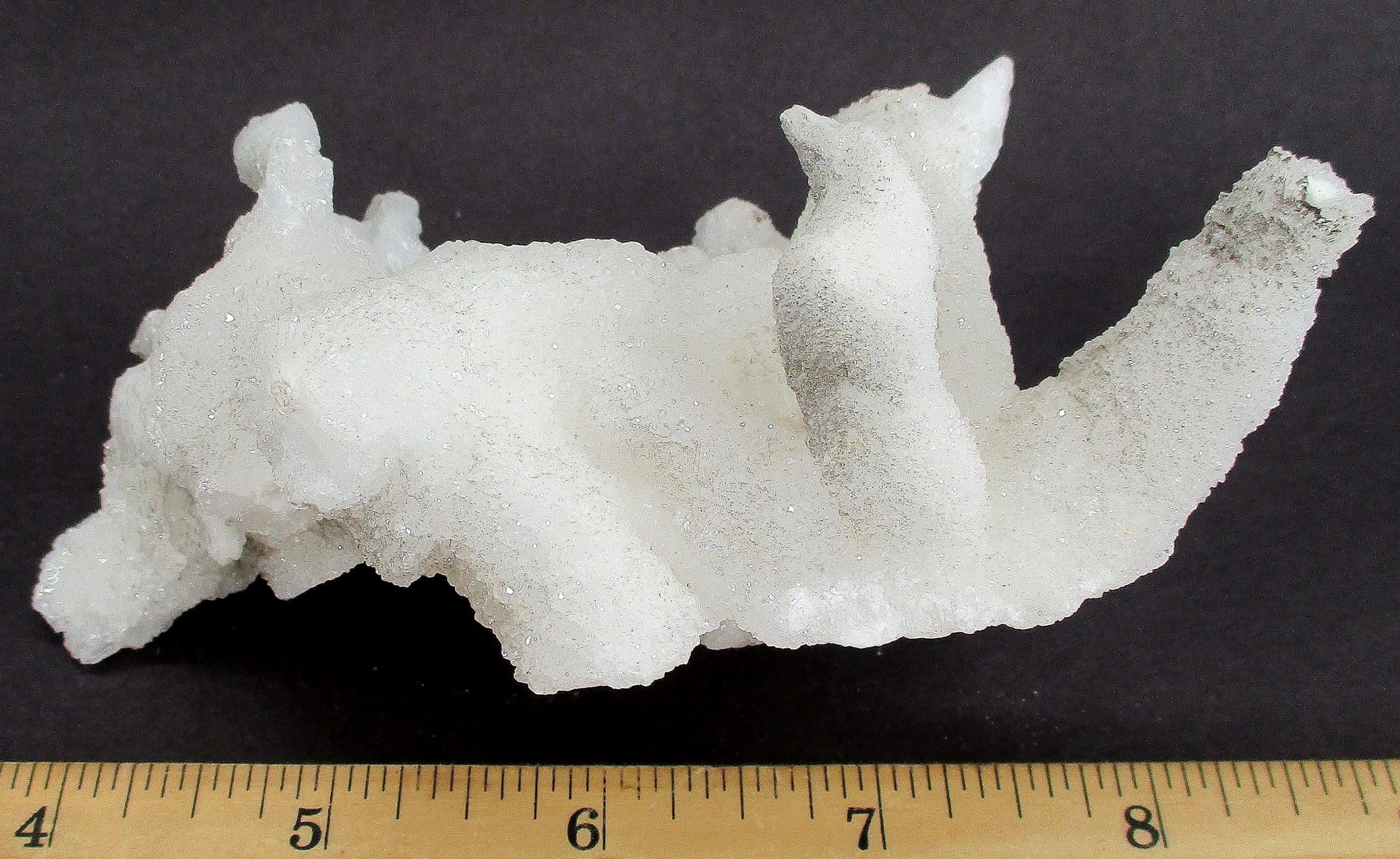 This is an amazing specimen of Aragonite.  It has great sugar white color in a cool design.  It measures 4 3/4″ x 2 7/8″ x 1 7/8″.  This is a beautiful work of nature.