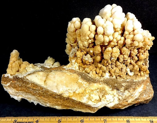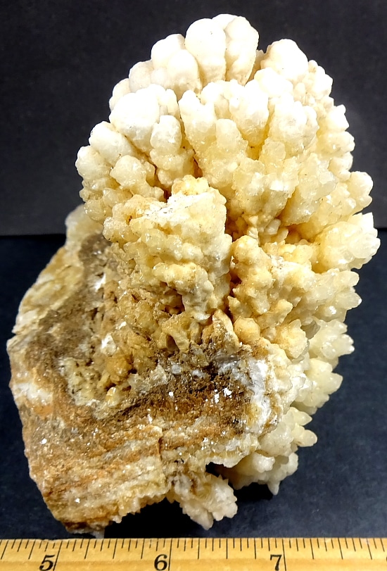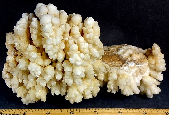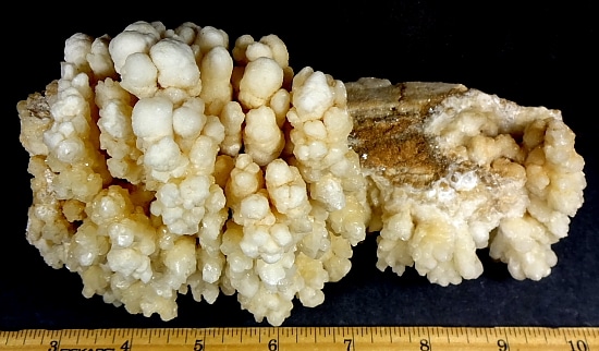 Aragonite is a Carbonate mineral that can occur in conjunction with Calcium Carbonates. Aragonite differs from Calcite in the formation of the Crystal shapes which can be in lattice, crystal, columnar or fibrous in many different designs, shapes and sizes. Aragonite will form in mollusk shells, oceans and salt water caves as inorganic precipitates called marine cements and speleotherms. Ammolite is a form of Aragonite with impurities that make it iridescent and valuable as a gemstone.