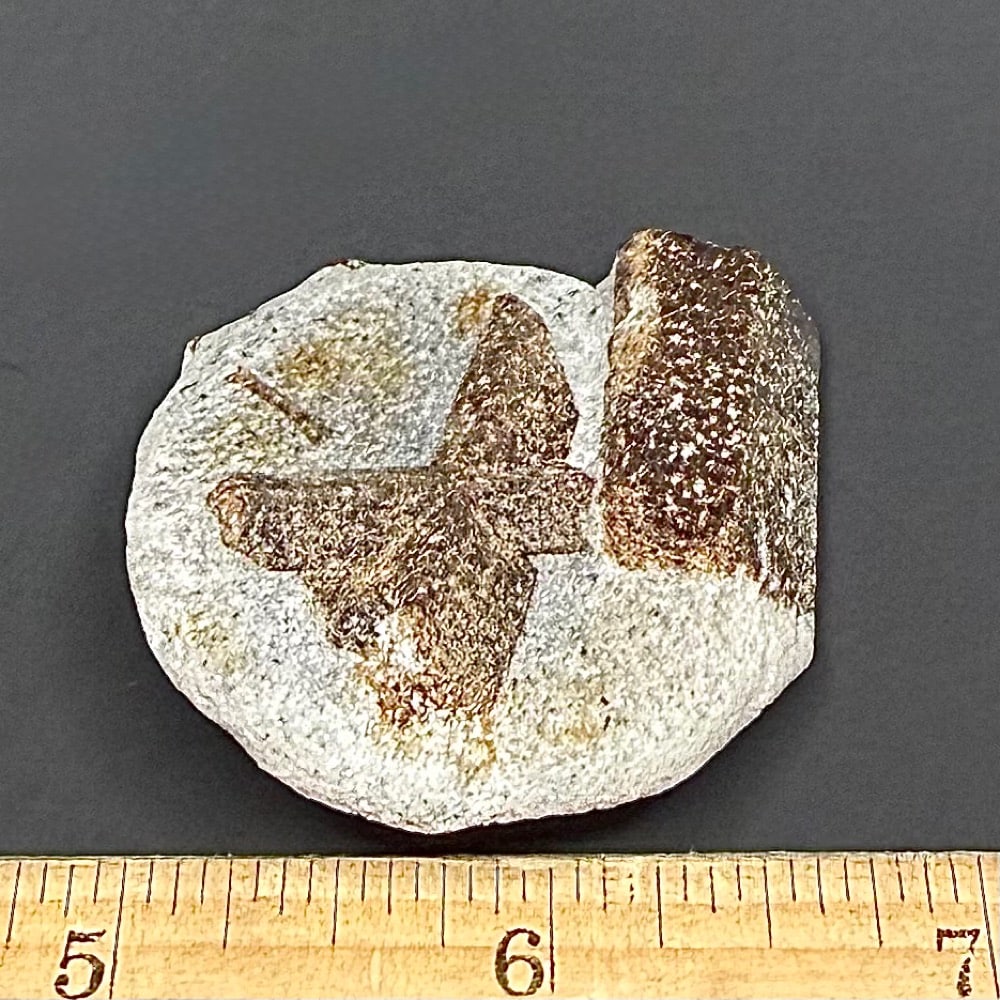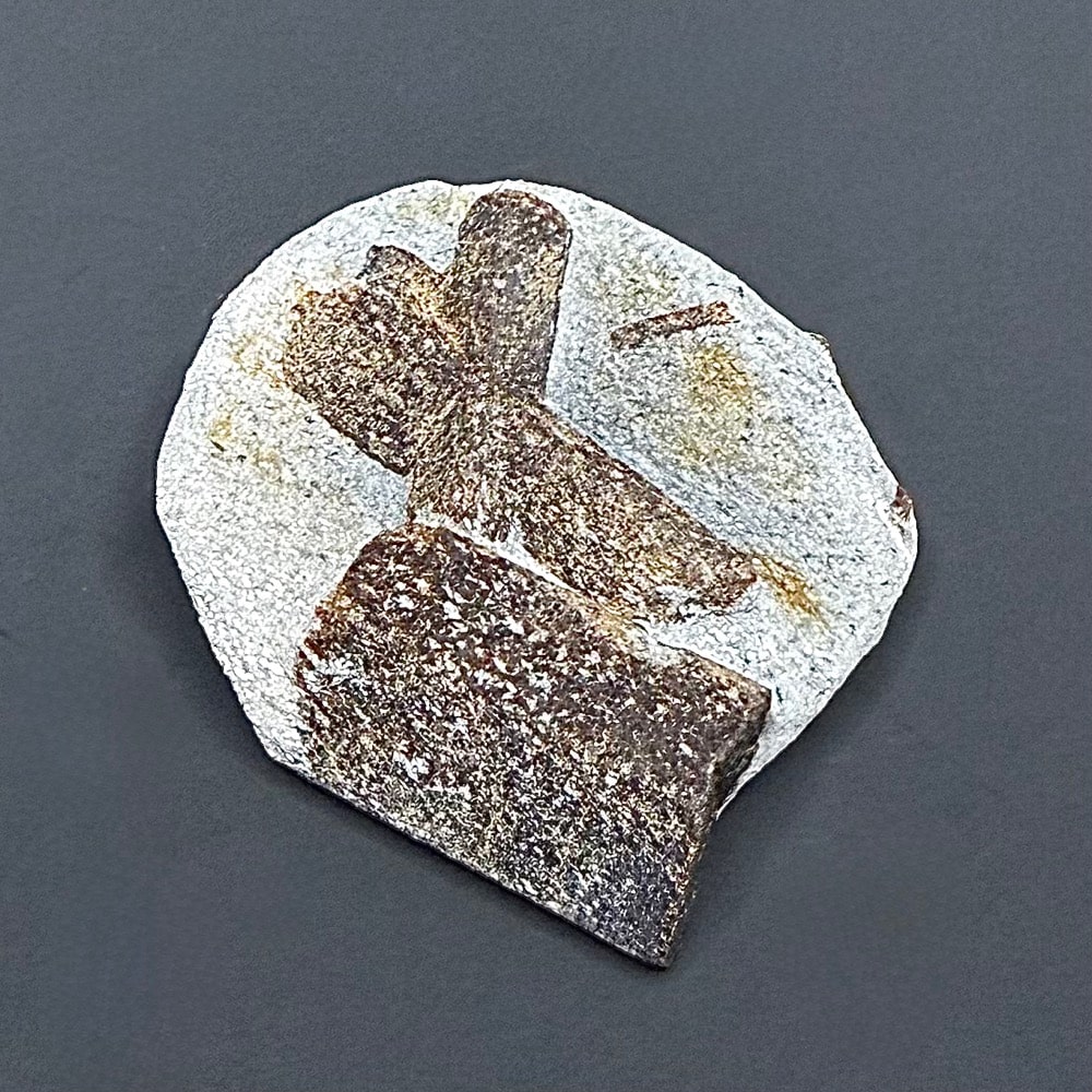 Staurolite is the official state mineral of Georgia and is also found in Fairy Stone State Park in Virginia, US. Staurolite often appears as two pieces which join together as a cross. They can appear as 90-degree angle cross called a Maltese cross, or as 60-degree angle crosses, which are called St. Andrew’s Cross and look like an “X.” Much rarer, there are staurolite which have both the 90 and the 60-degree crosses, and they resemble more a six-pointed star.