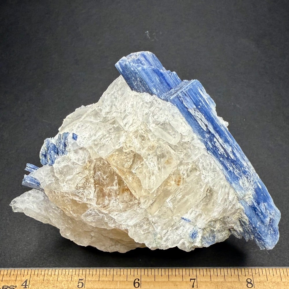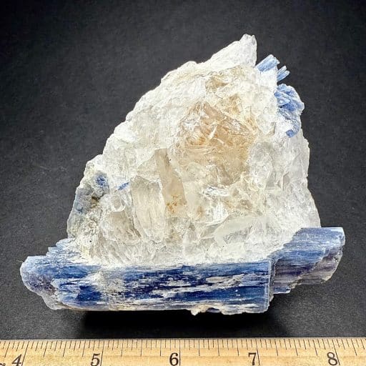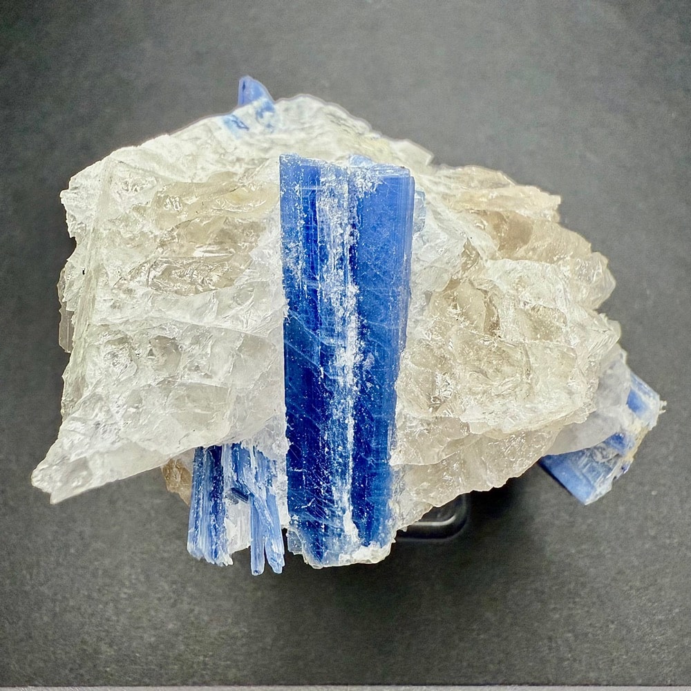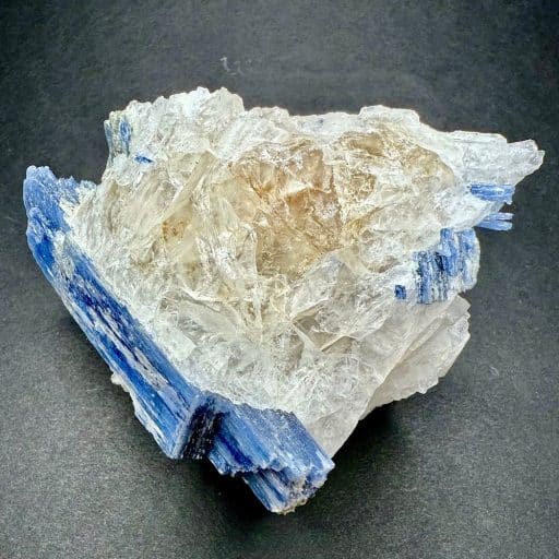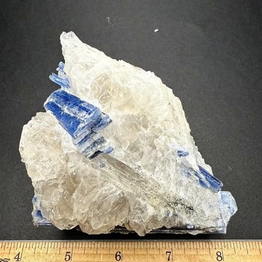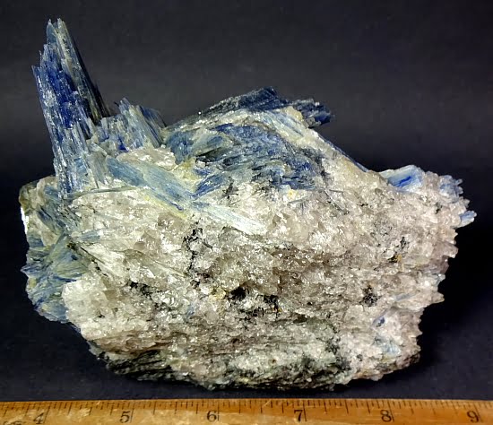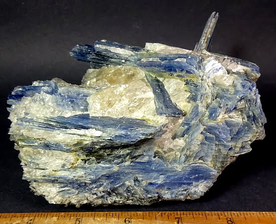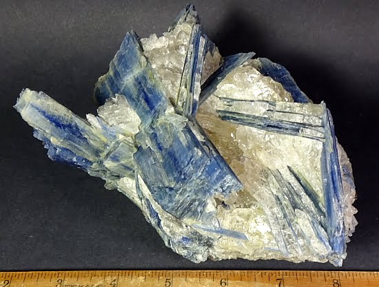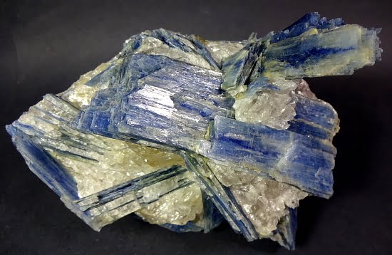 Kyanite is a typically blue Silicate mineral that is commonly found in Aluminum rich metamorphic pegmatites and/or sedimentary rock. It is used primarily in refractory and ceramic products including porcelain plumbing fixtures and dinnerware. It is also used in electrical insulators and abrasives. It is definitely a collector’s mineral.