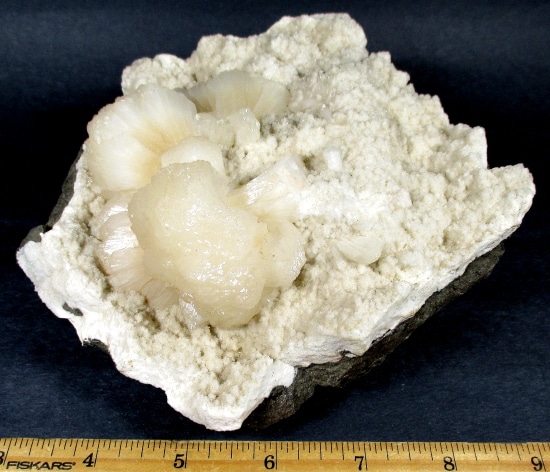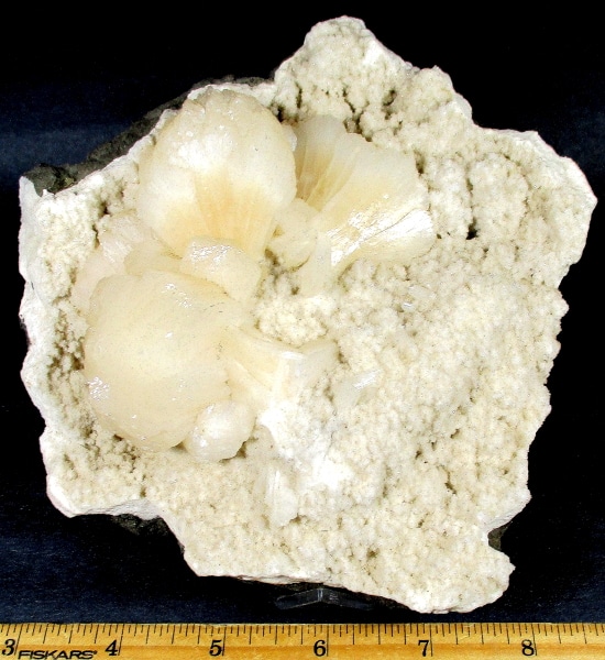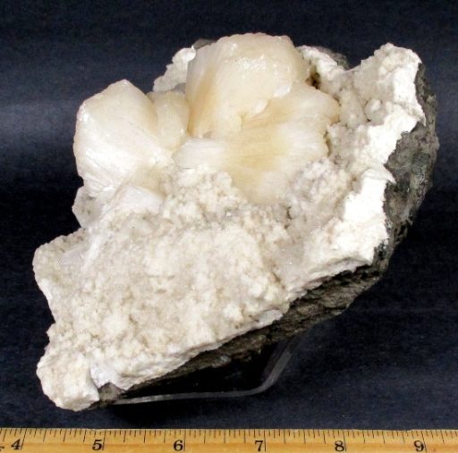 Here is a beautiful mineral specimen of Stilbite from Aurangabad, India. This lovely mineral has a pretty light peach colored Stilbite. It measures 5 3/4″ x 5 3/8 x 3″ and has an interesting multi-textured appearance. Very Cool!