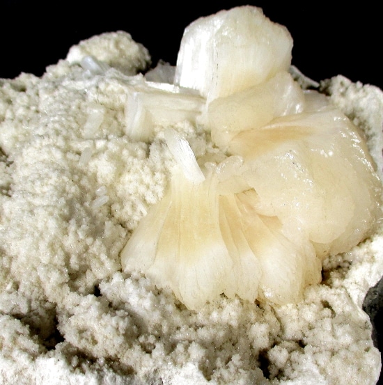 Stilbite is another Silicate mineral from the Zeolite family. It is often characterized by its sheaf like aggregates. The color is usually white or pink and when the cleavage is perfect, will have a distinct pearly luster.