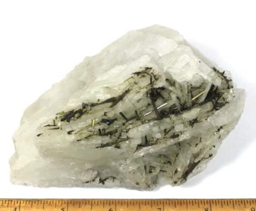 The Tourmaline mineral group is chemically one of the most complicated groups of Silicate minerals.  Its composition varies widely with Sodium, Calcium, Iron, Magnesium, Lithium, Aluminum, Boron and other elements.  It has a wide variety of colors including black, blue-black, brown, yellow, red, green, pink and is rarely colorless.  This mineral is found in igneous rocks, like Granite Pegmatite, and metamorphic rocks such as Schist and Marble.