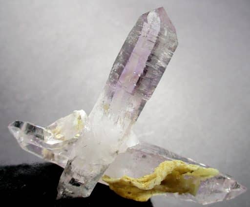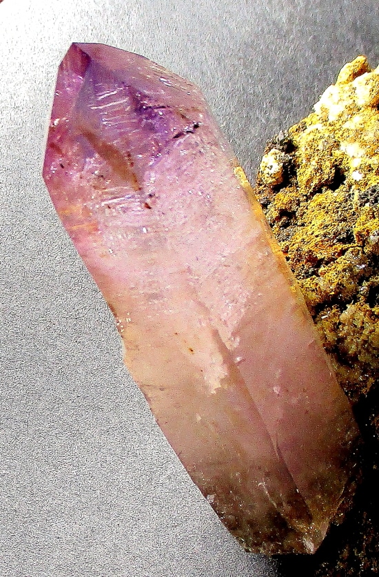 Amethyst is a purple variety of Quartz often used as an ornament. Upon exposure to heat, Amethyst generally becomes yellow, which some refer to as Citrine or “burnt” Amethyst. It occurs in color from a light, slightly pinkish violet to a deep grape purple. It is widely distributed as a mineral.