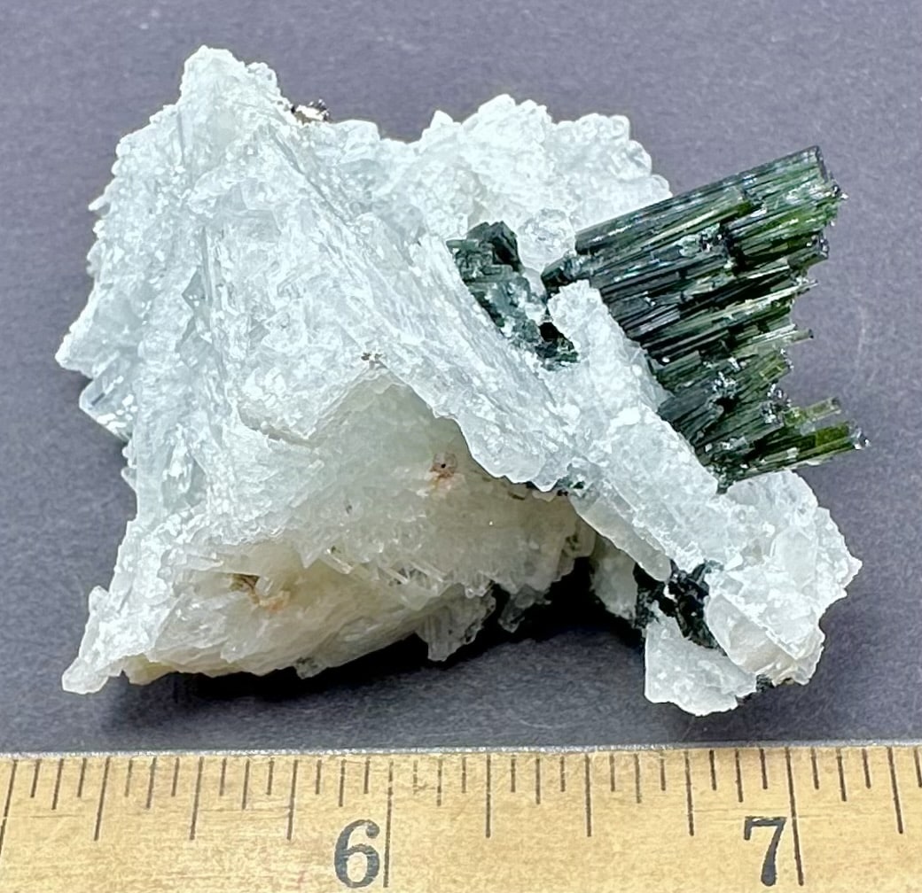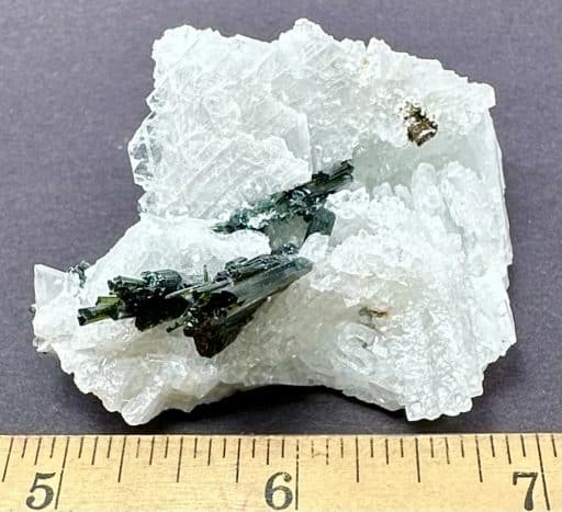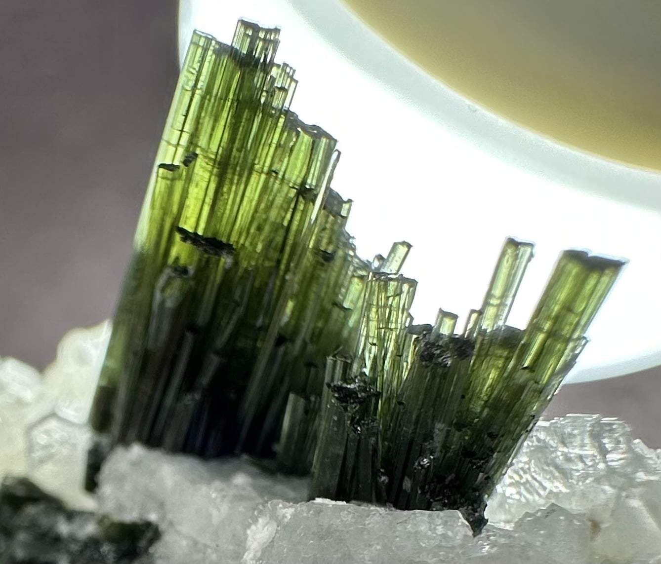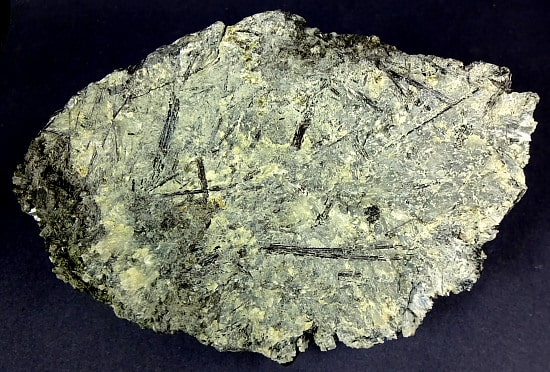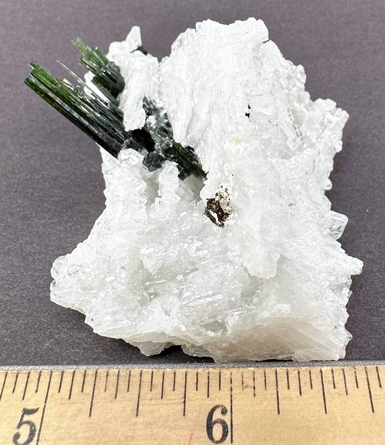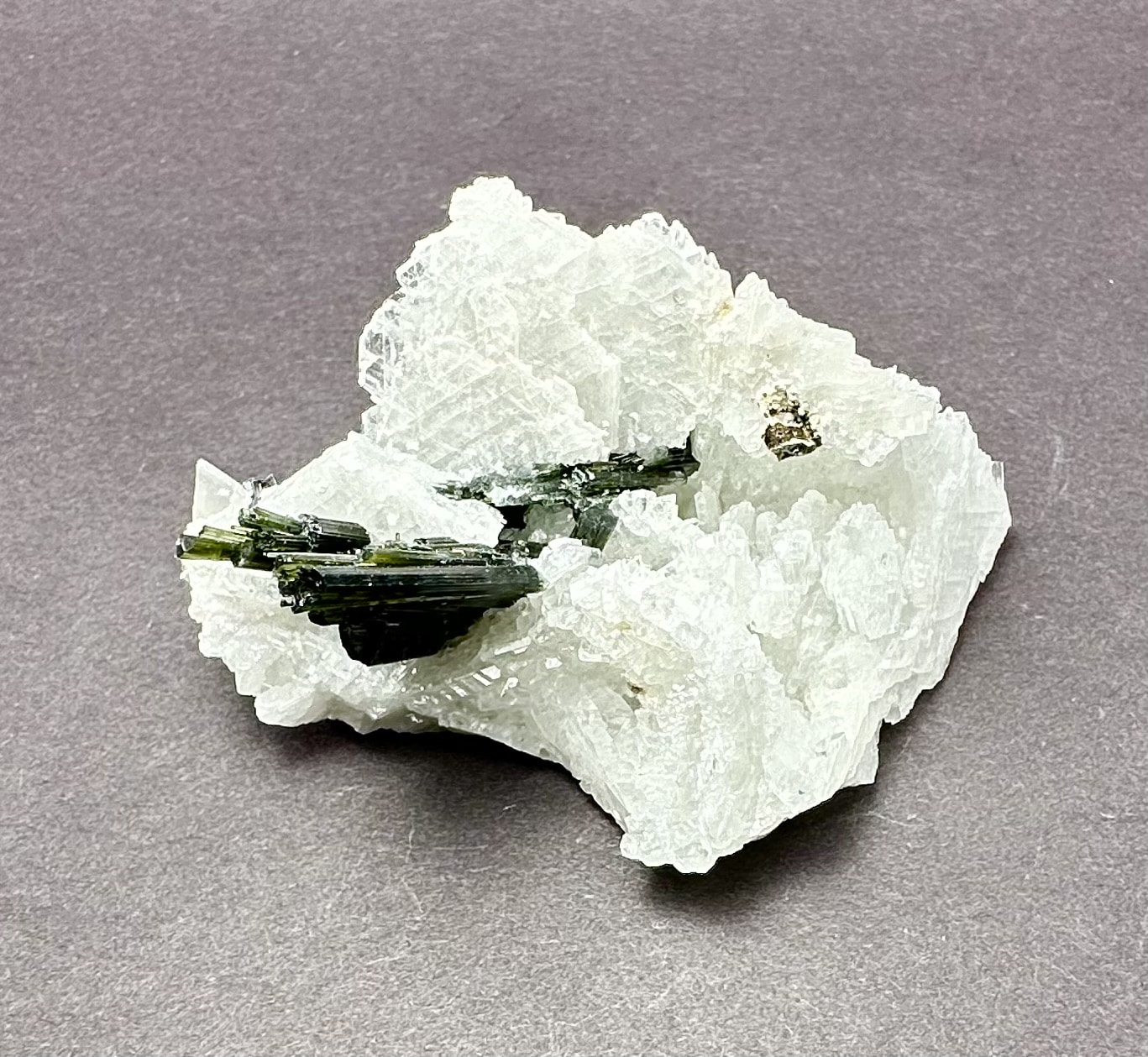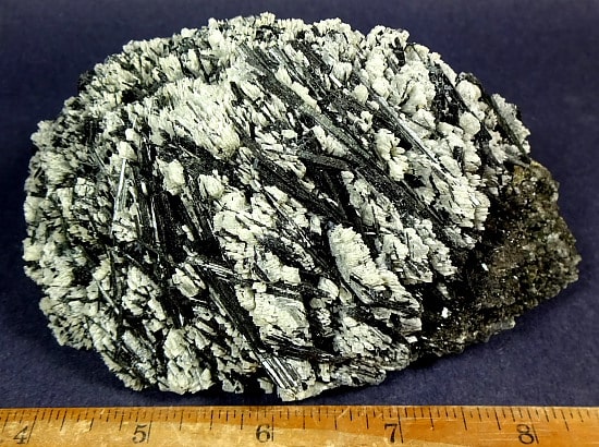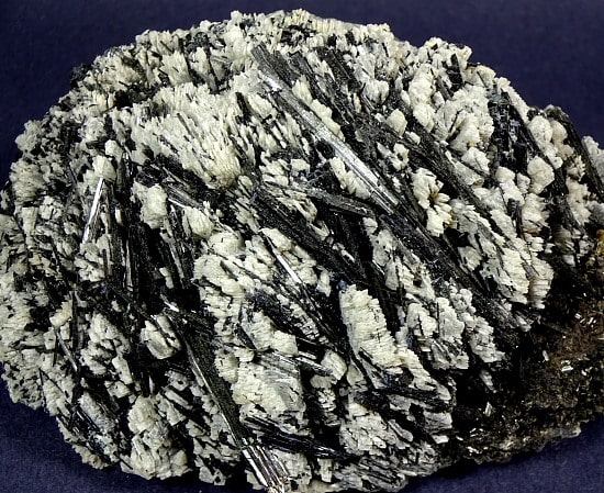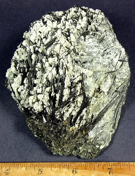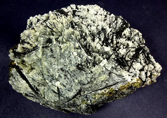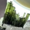 Tourmaline is one of the most chemically complicated of all Silicate minerals. It is a complex Silicate of Aluminum and Boron and the composition varies widely with Sodium, Calcium, Iron, Magnesium, Lithium and many other elements that enter into it’s structure. It can occur in a long, slender needle-like crystal to a thick prismatic and columnar crystal to a radial like daisy formation. It comes in many colors usually black and brown (iron rich); brown and yellow (magnesium rich); and blue, red, green, yellow, and pink (lithium rich). This mineral is found in igneous rocks, like Granite Pegmatite, and metamorphic rocks such as Schist and Marble.