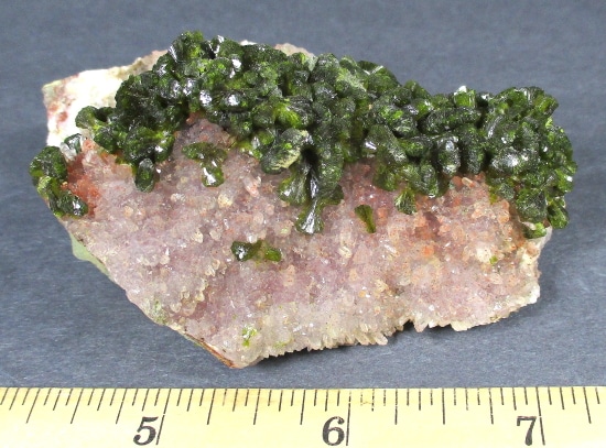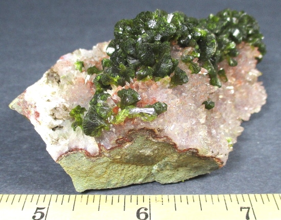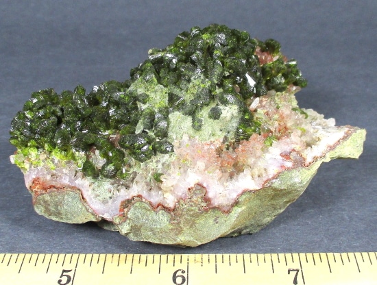 Here is a different and very nice specimen of Epidote from Morocco. It has a pretty green color  with unmatched character. It measures 4″ x 3″ x  1 1/2″ and makes a unique addition to any collection.
