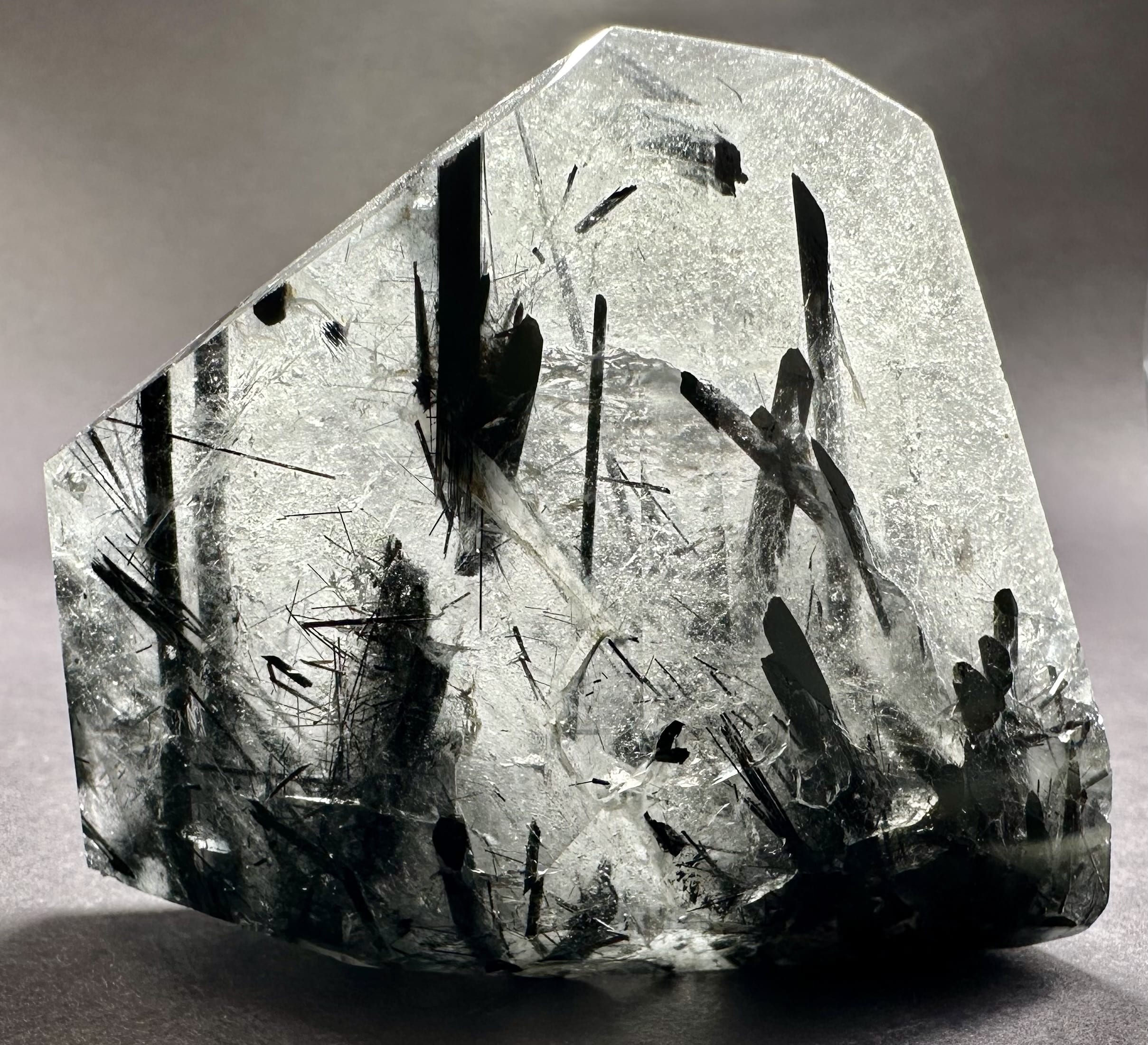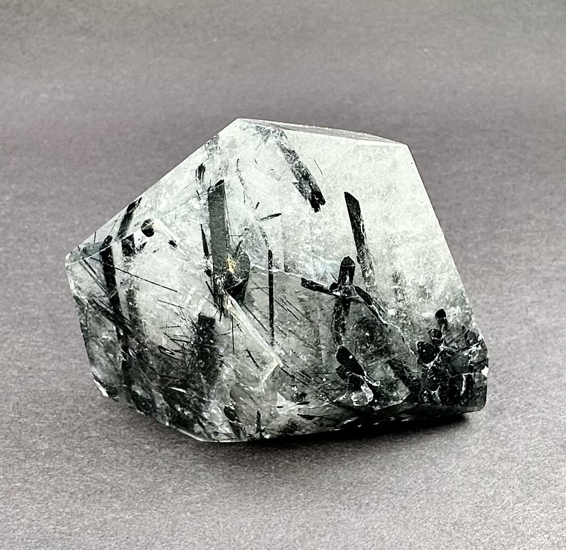 Tourmaline is one of the most chemically complicated of all Silicate minerals. It is a complex Silicate of Aluminum and Boron and the composition varies widely with Sodium, Calcium, Iron, Magnesium, Lithium and many other elements that enter into it’s structure. It can occur in a long, slender needle-like crystal to a thick prismatic and columnar crystal to a radial like daisy formation. It comes in many colors usually black and brown (iron rich); brown and yellow (magnesium rich); and blue, red, green, yellow, and pink (lithium rich). This mineral is found in igneous rocks, like Granite Pegmatite, and metamorphic rocks such as Schist and Marble.