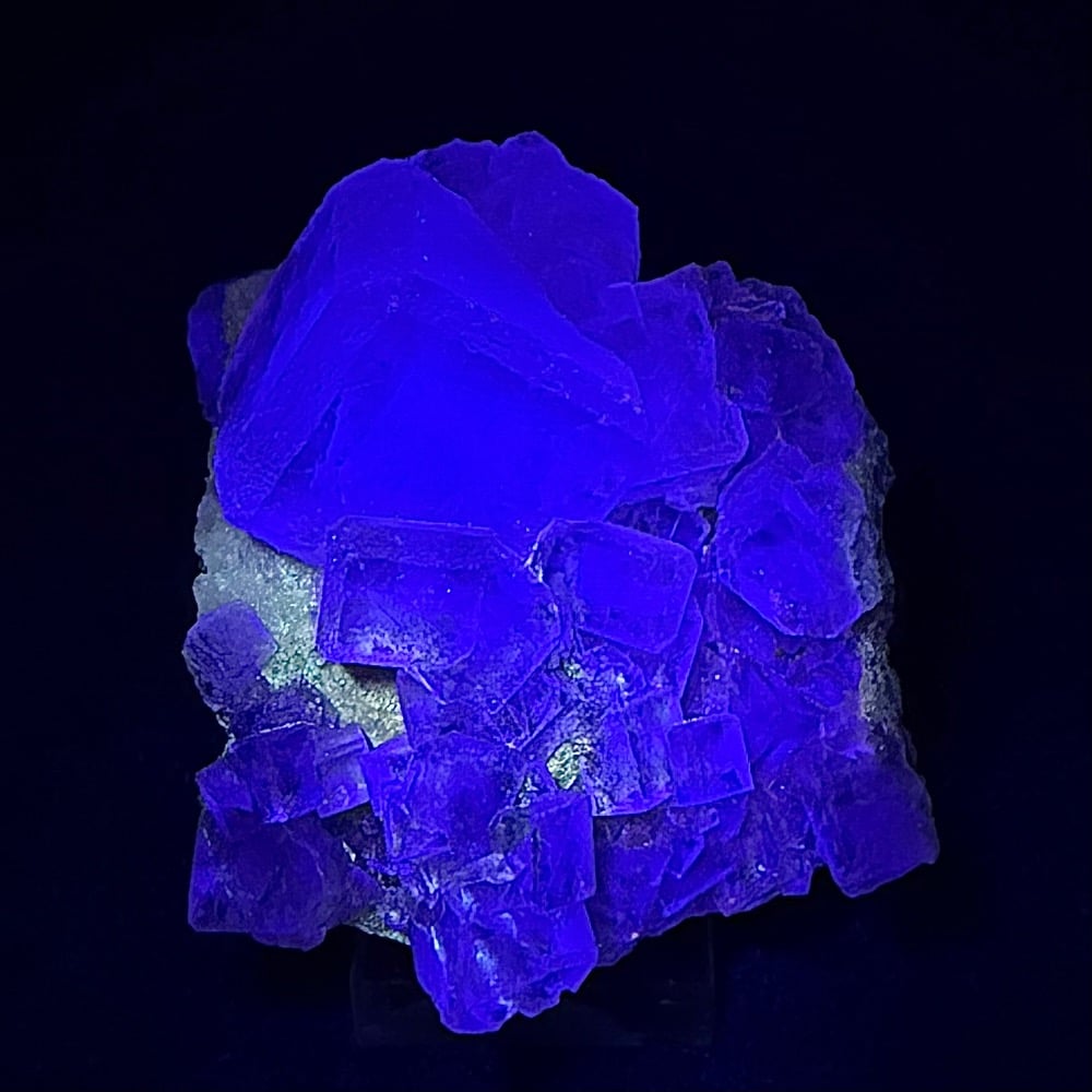 Fluorite, also referred to as fluor-spar, is a mineral composed of Calcium Fluoride. It is a widely occurring mineral found worldwide and is often found with metallic minerals such as Galena, Sphalerite, Barite, Quartz and Calcite. Fluorite may fluoresce strongly in ultraviolet light which may be due to the presence of some impurities such as Yttrium. Blue is the most common color but red, purple, green, yellow and white are also frequent. It can be used in high performance telescopes, camera lens, enamels and in the making of opalescent glass.