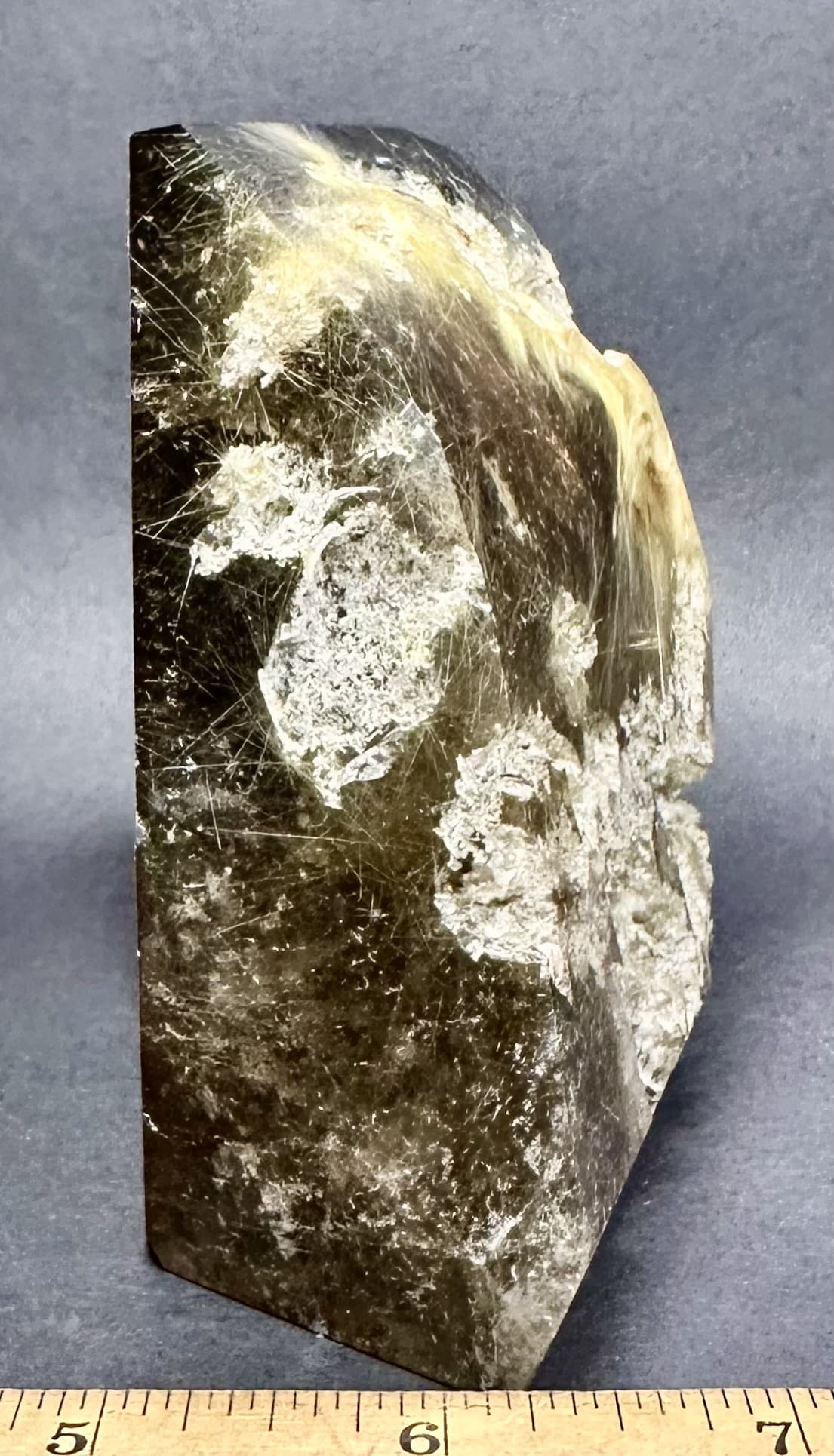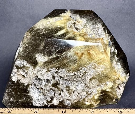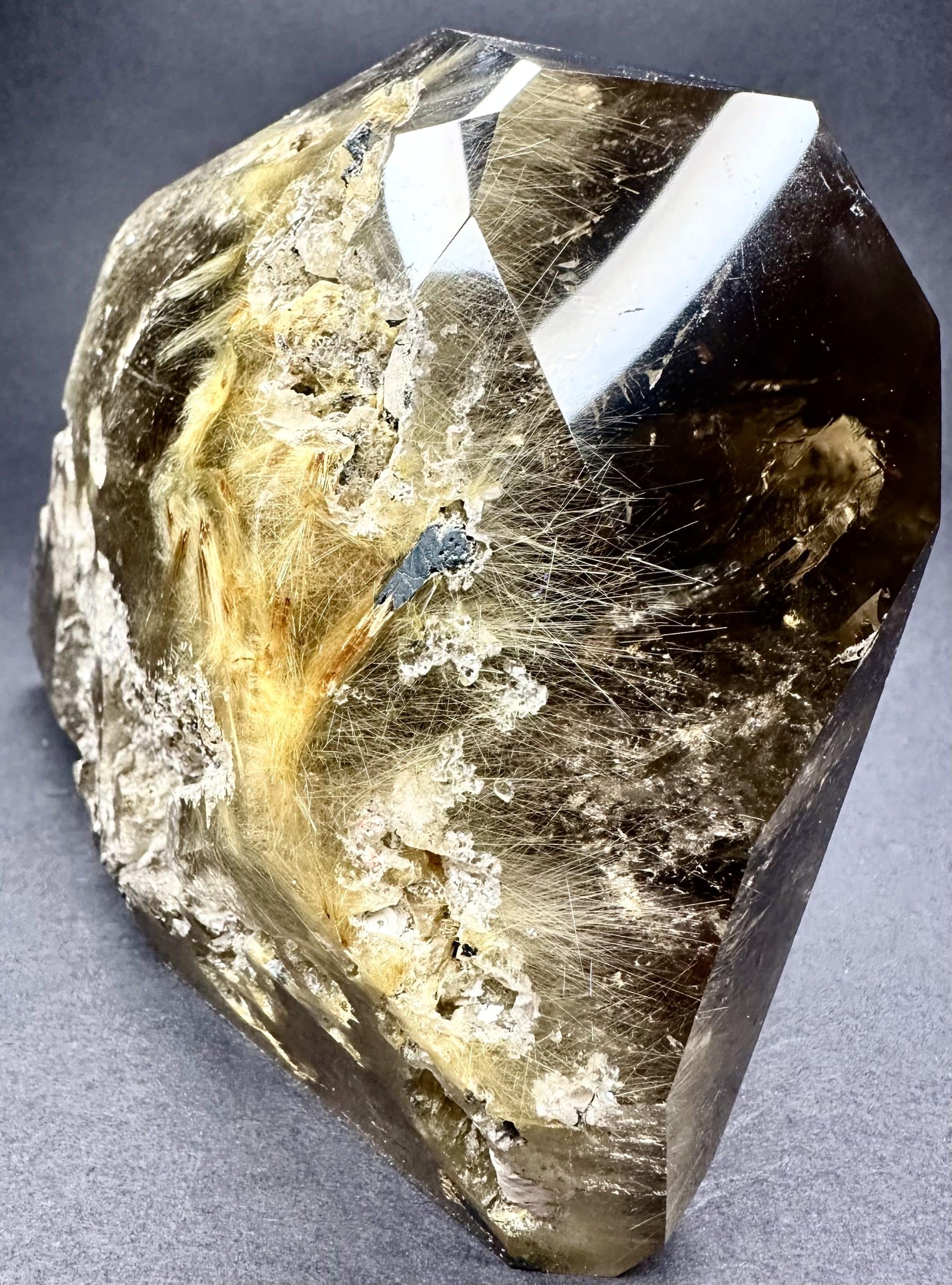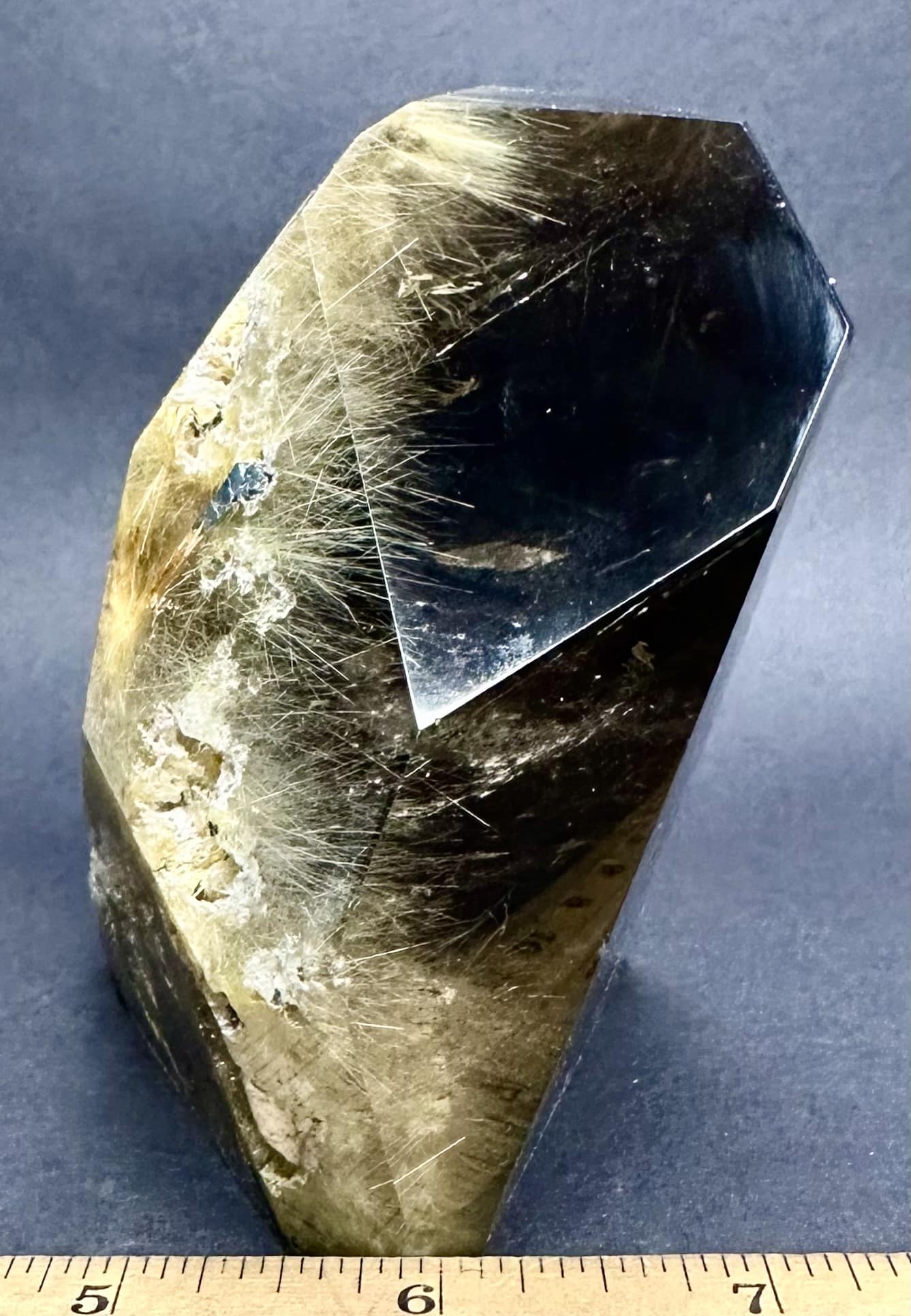 M700: Smoky Rutilated Quartz Crystal Locality:  Brazil   Selection: Rough and polished specimen.