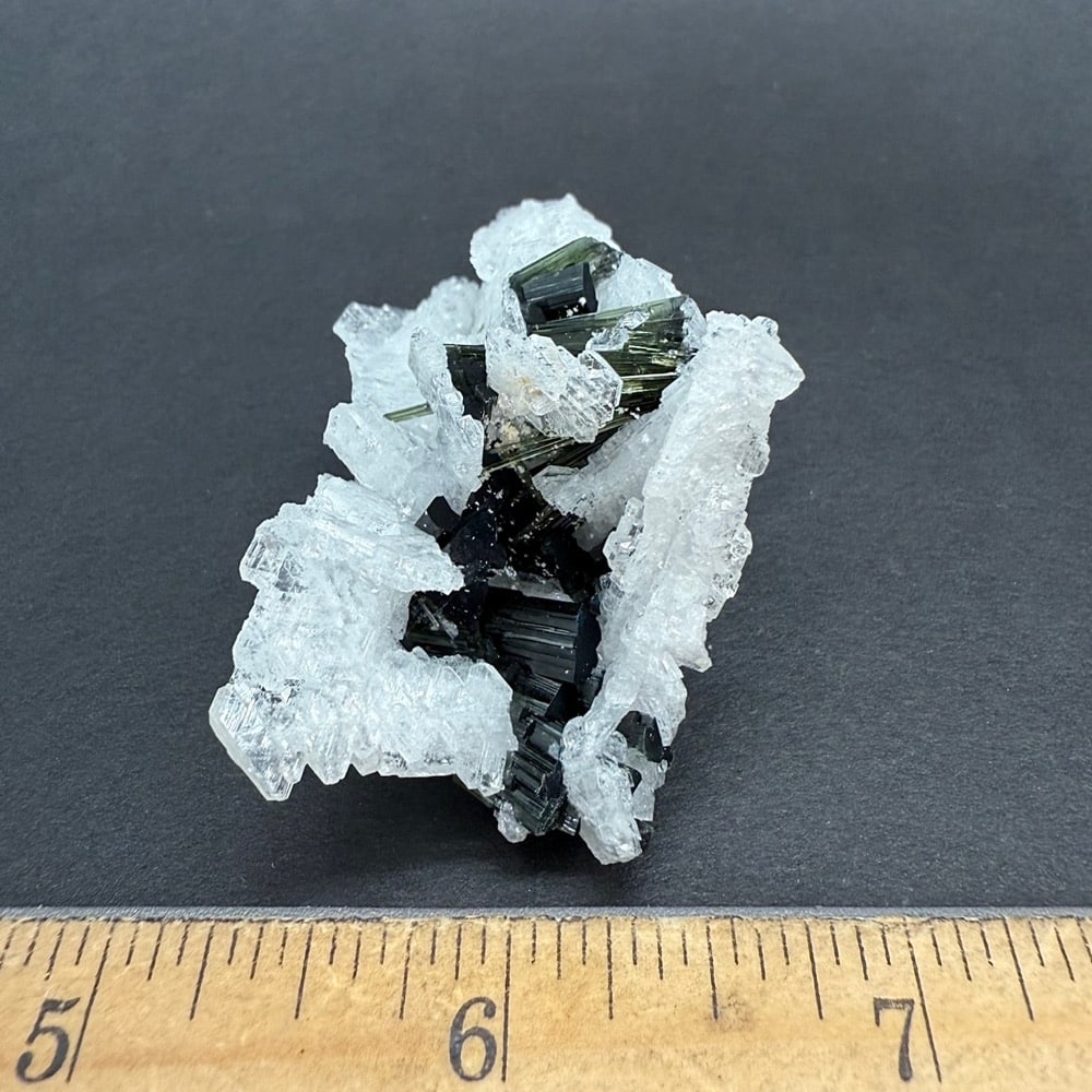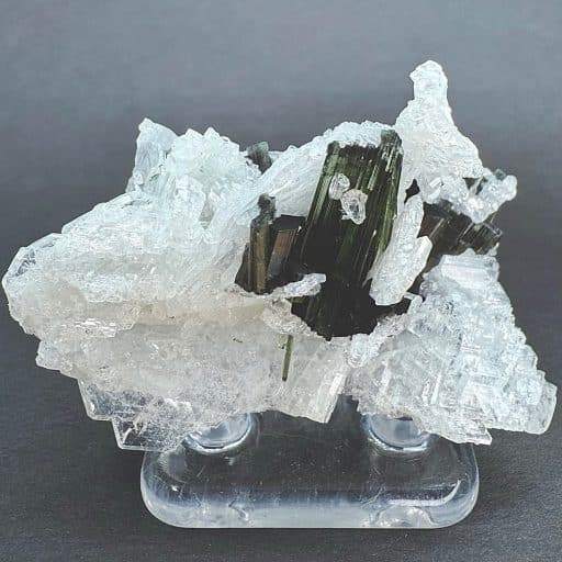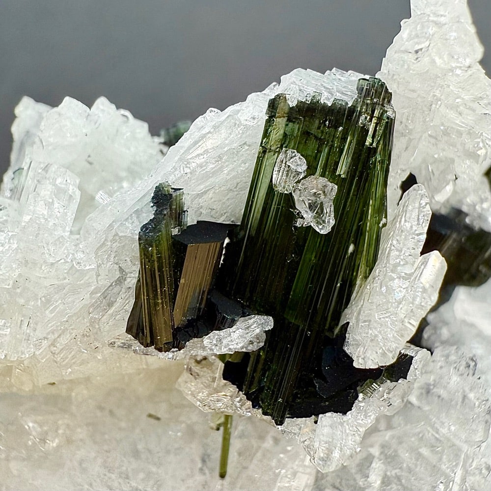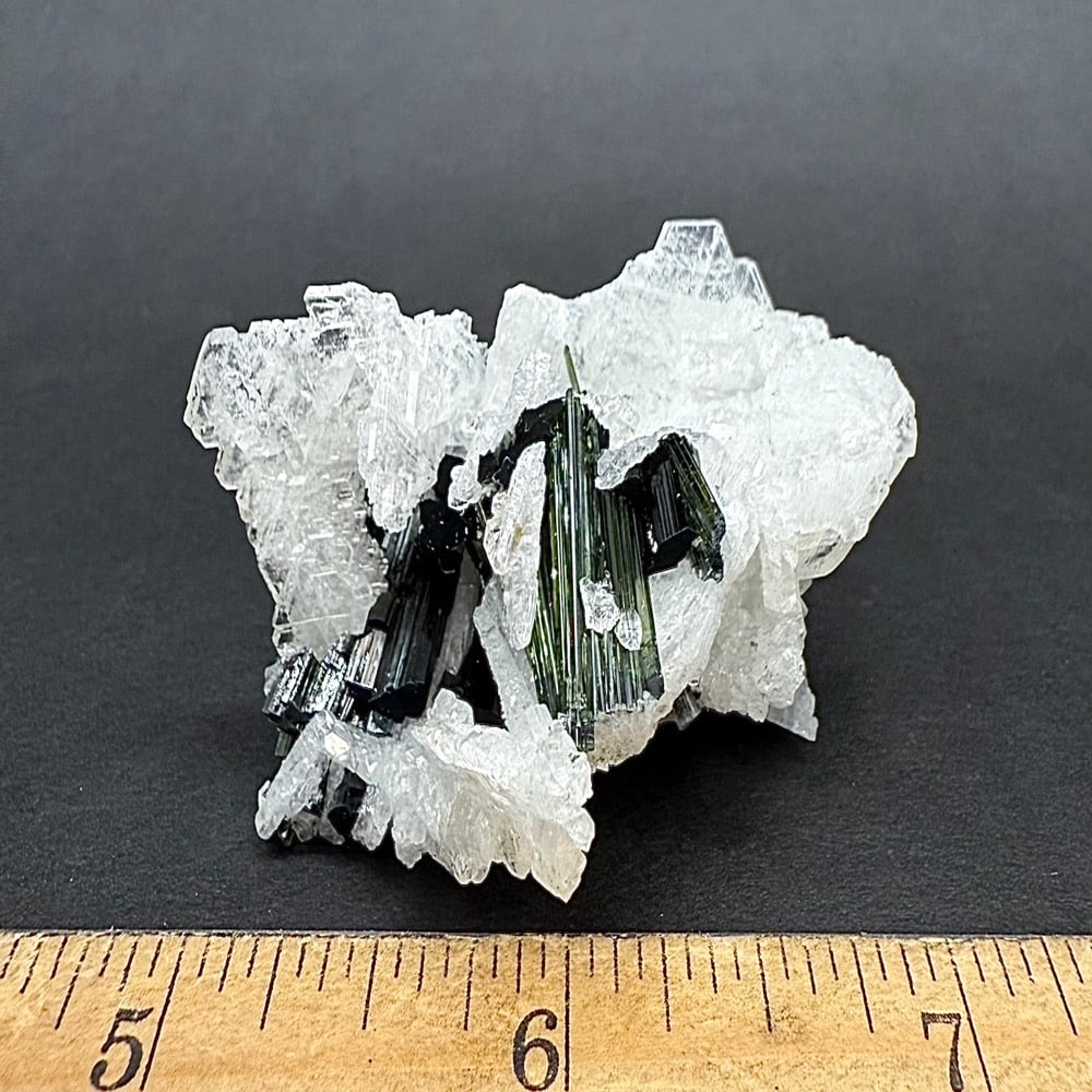 The Tourmaline mineral group is chemically one of the most complicated groups of Silicate minerals. Its composition varies widely with Sodium, Calcium, Iron, Magnesium, Lithium, Aluminum, Boron and other elements. It has a wide variety of colors including black, blue-black, brown, yellow, red, green, pink and is rarely colorless. This mineral is found in igneous rocks, like Granite Pegmatite, and metamorphic rocks such as Schist and Marble.