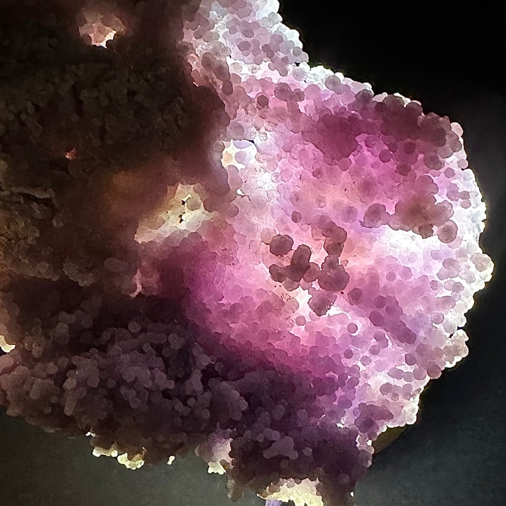 Appearance: Botryoidal cluster of tiny purple “grapes” with a druzy top layer.