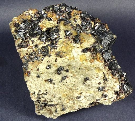 Sphalerite is a mineral that is the chief ore of Zinc. It consists mainly of Zinc Sulfide in crystalline form but almost always contains valuable Iron. When the Iron content is high, it is an opaque black variety called Marmatite. It is usually found in association with Galena, Pyrite, Calcite, Dolomite and Fluorite. It is usually yellow, brown or gray to gray-black in color and may have a shiny or dull luster or sheen.